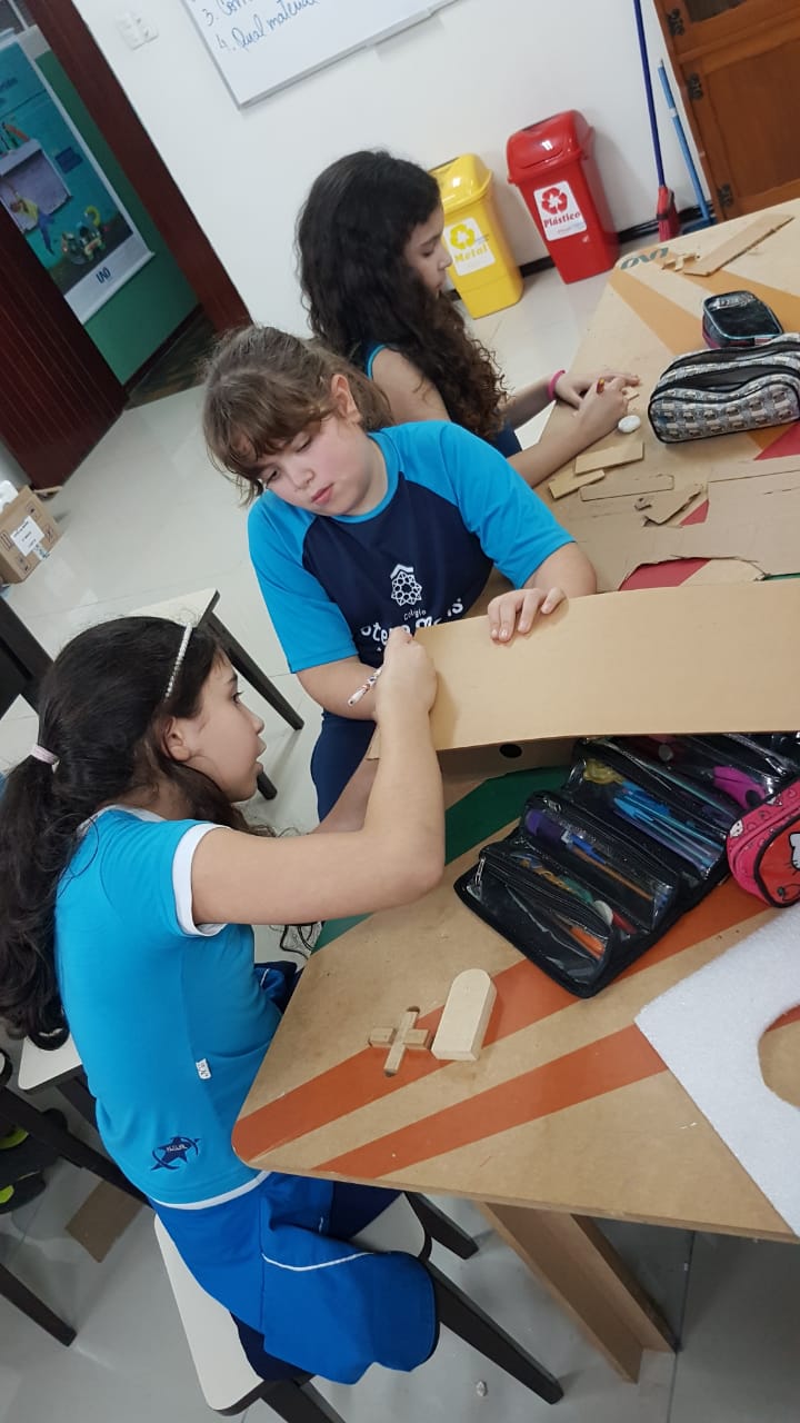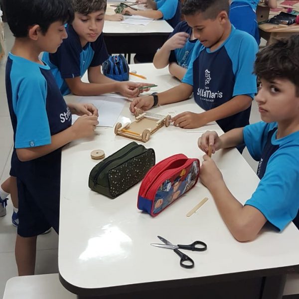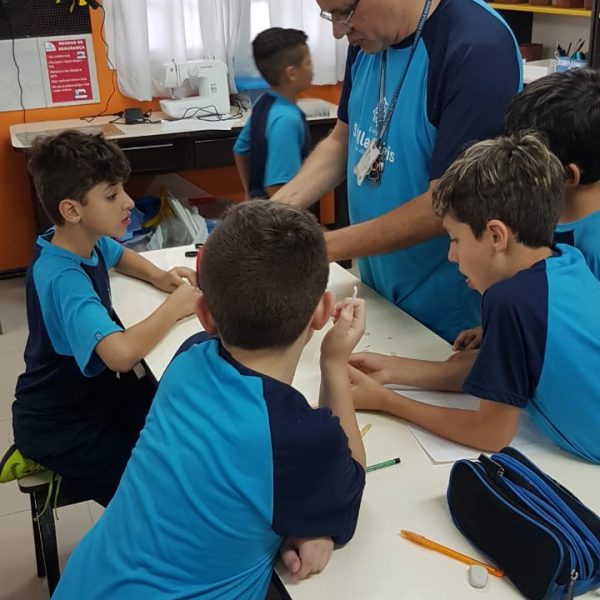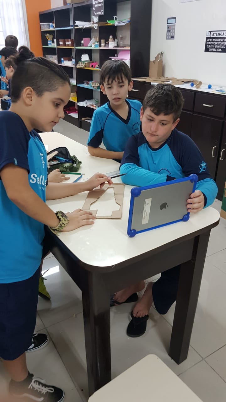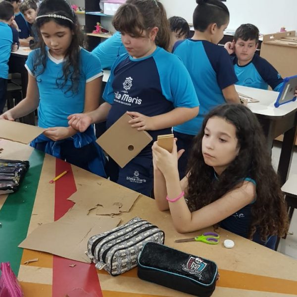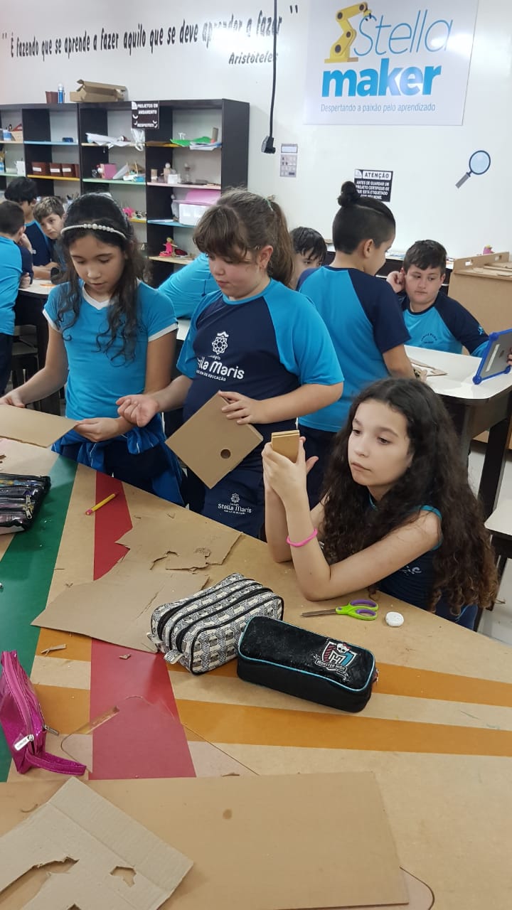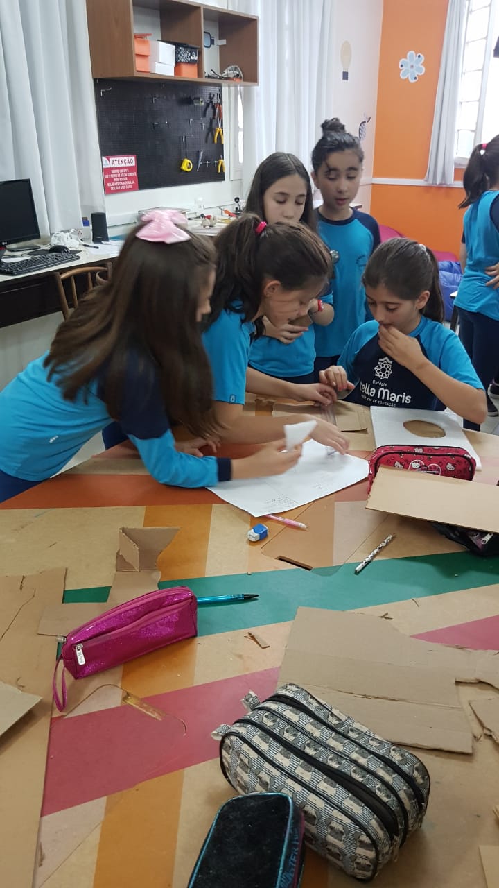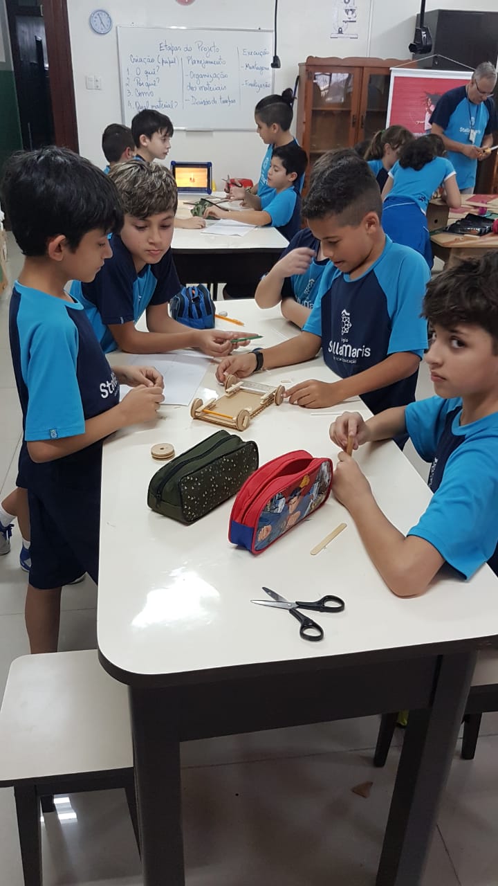 Alunos da turma 44, trabalhando em seus projetos na sala Maker.