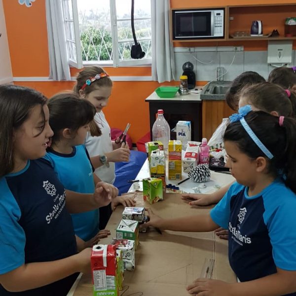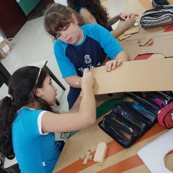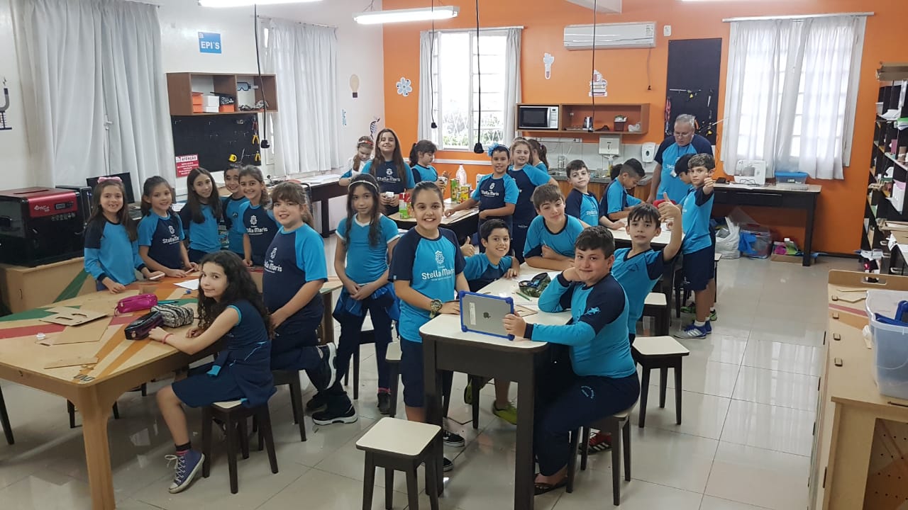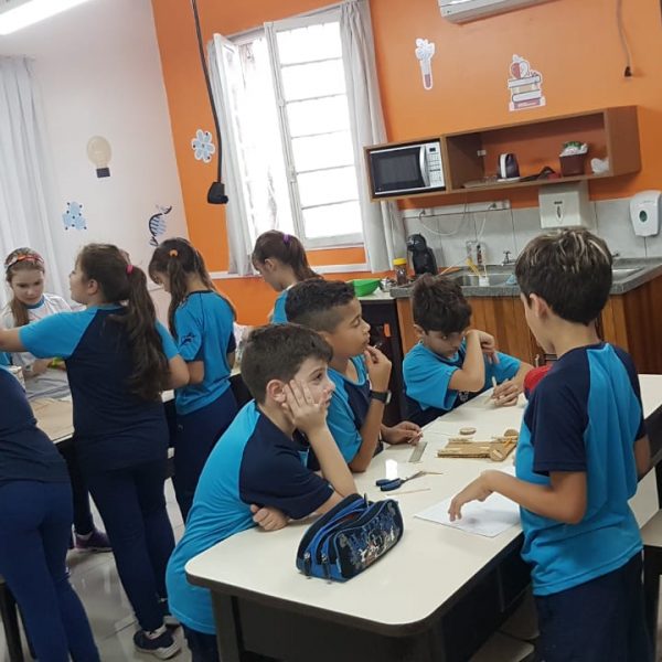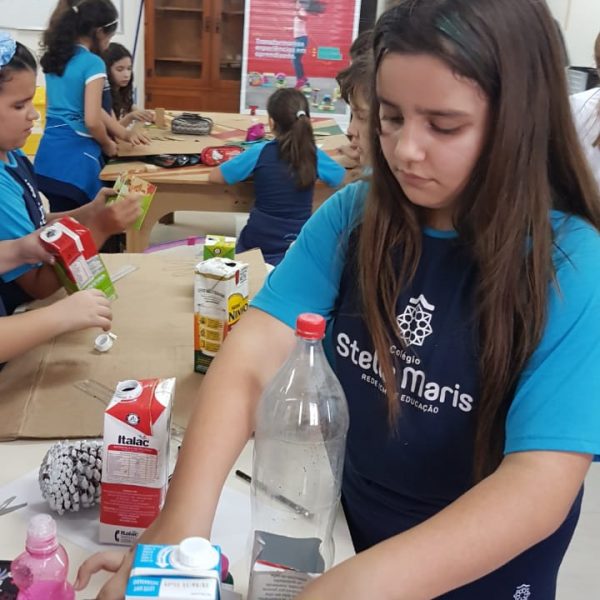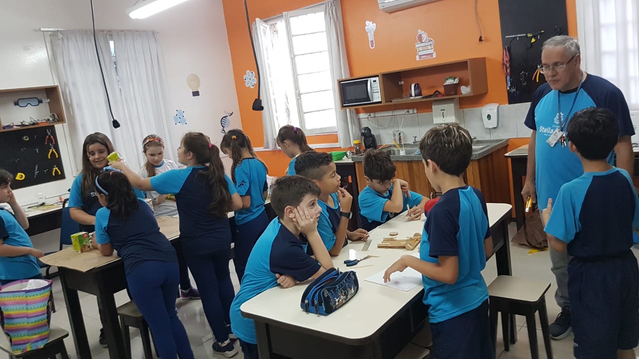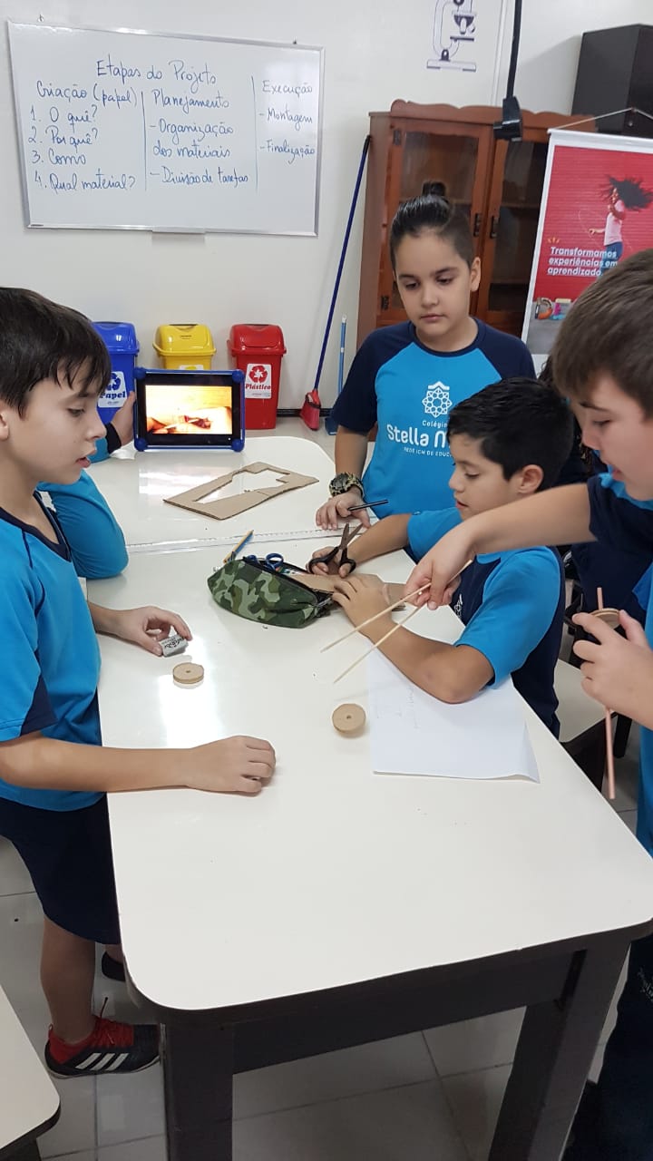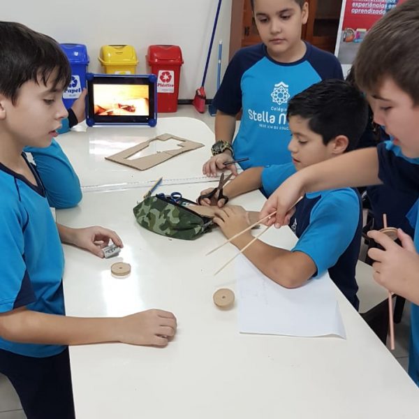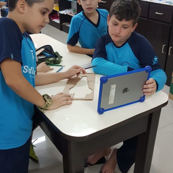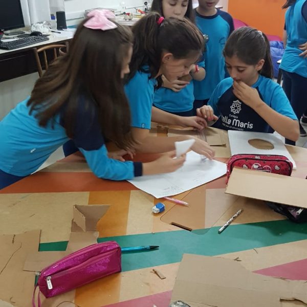 Alunos da turma 44, trabalhando em seus projetos na sala Maker.