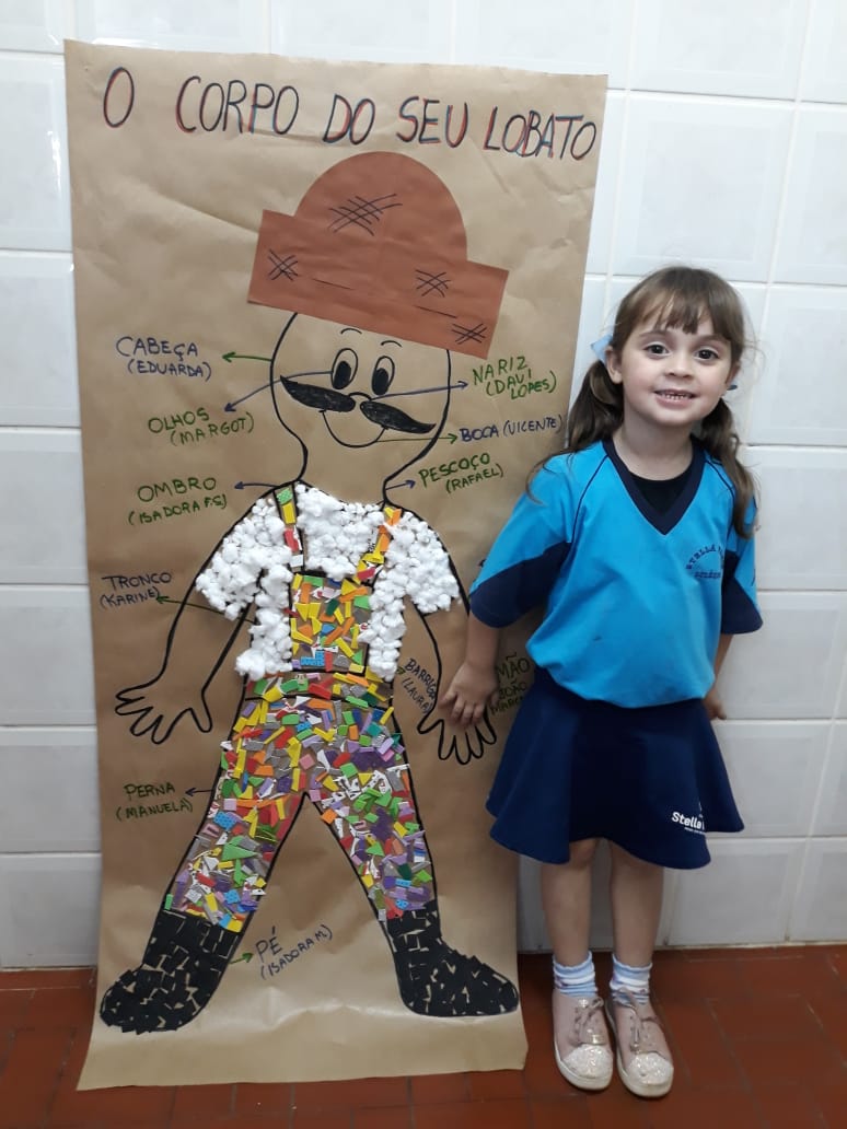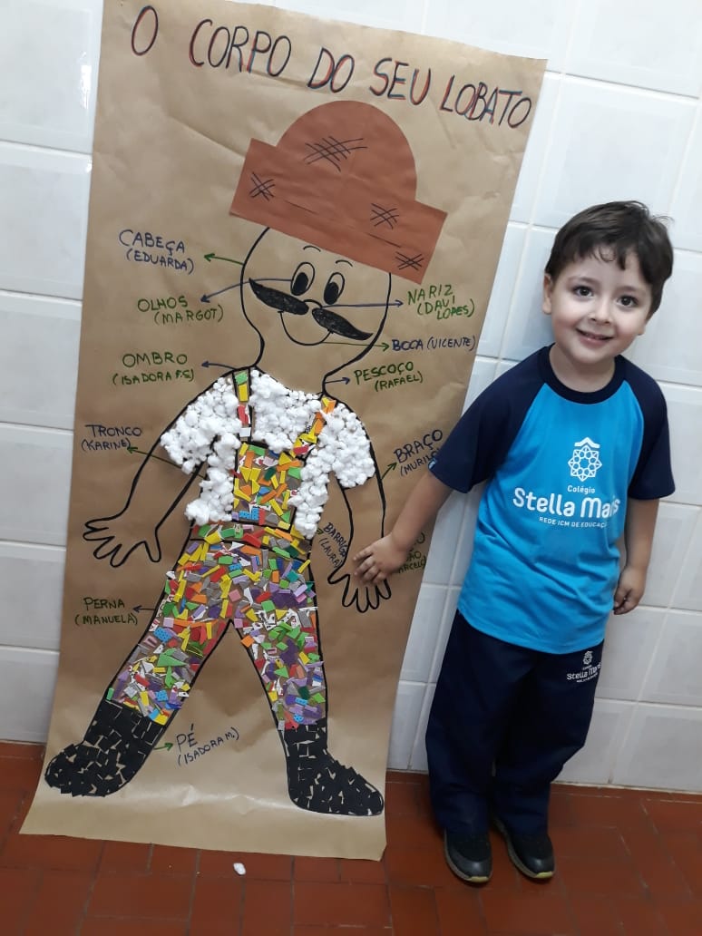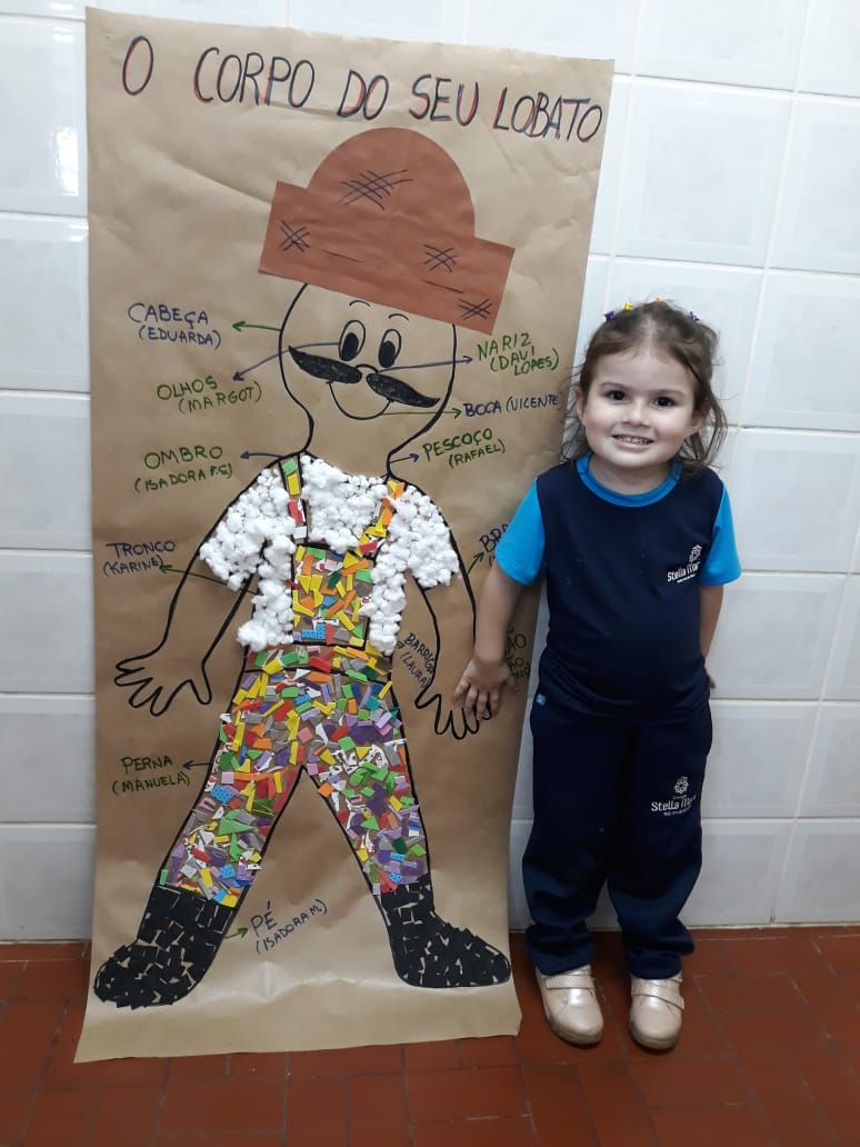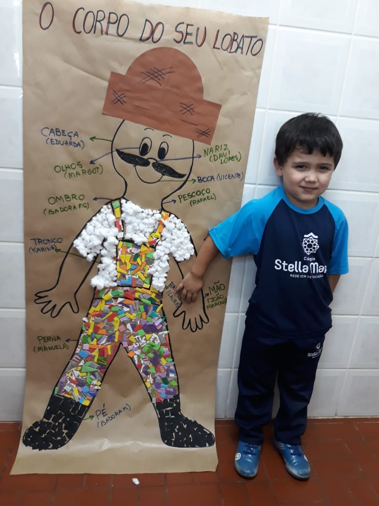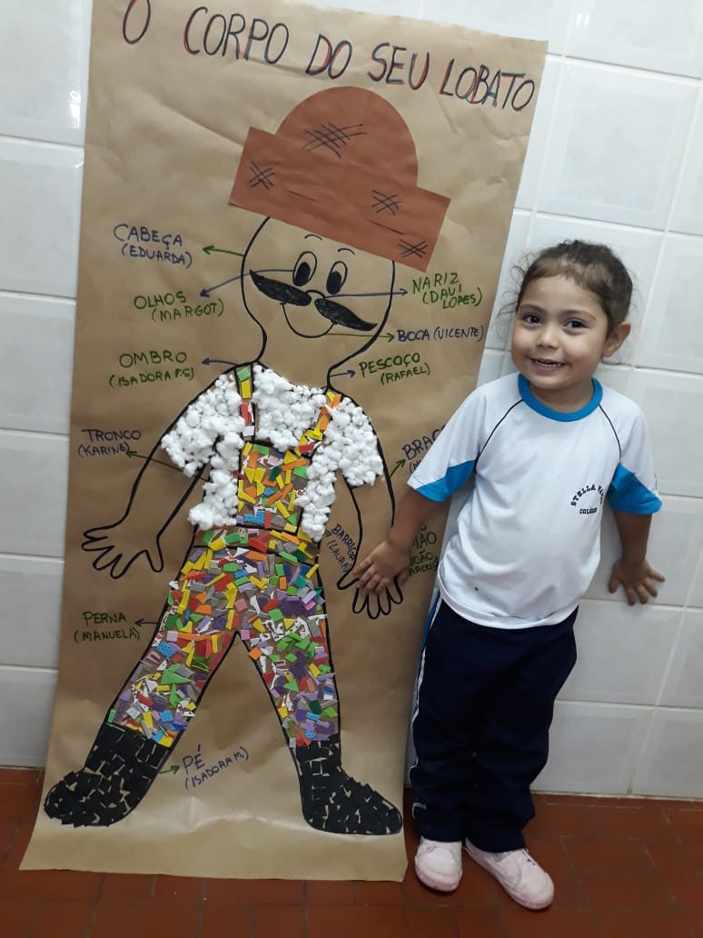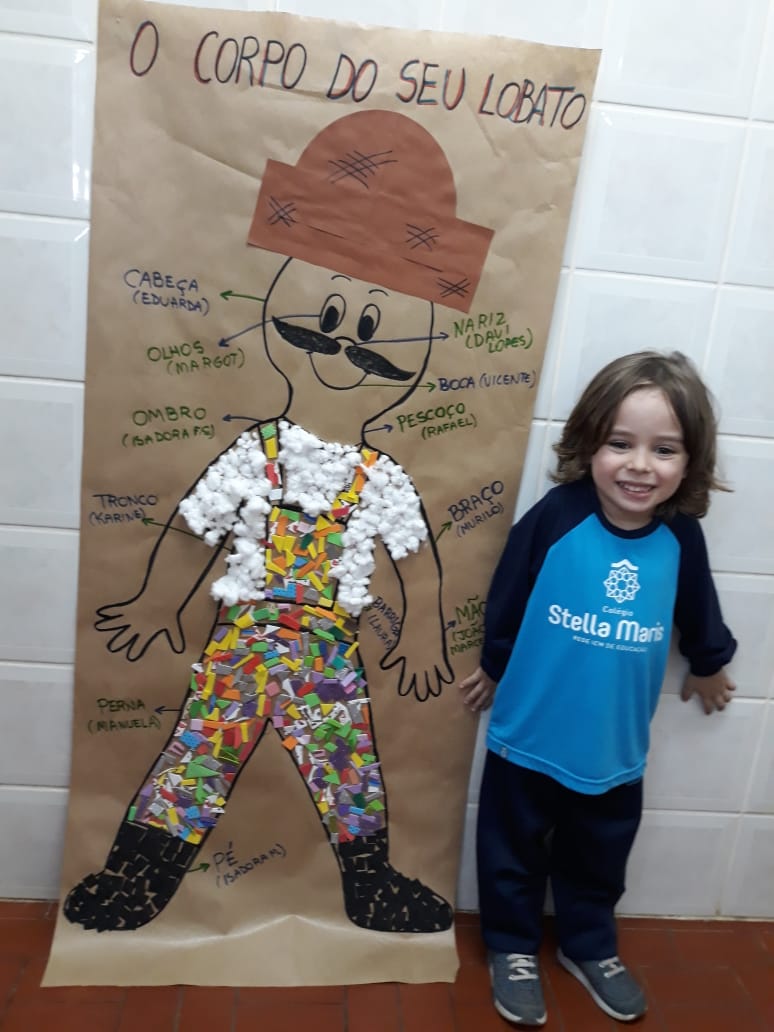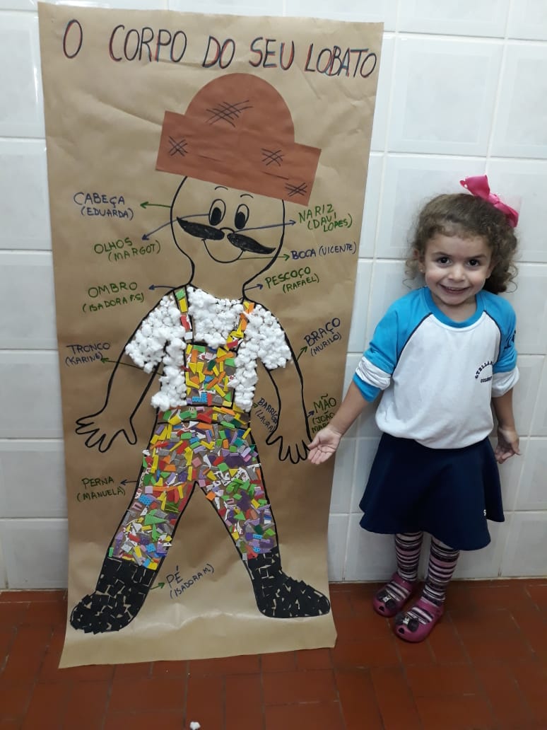 A turma de Maternal 2 está estudando sobre o corpo. Então, pensamos assim: quais partes do corpo que o Seu Lobato tem e que nós também temos? Falamos até no bigode, mas chegamos a conclusão que nem todas as pessoas tem bigodes. Foi muito divertido!