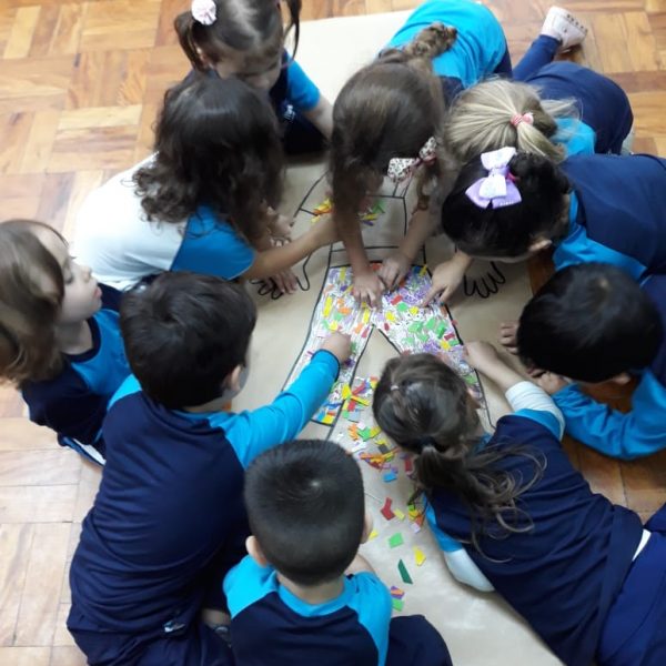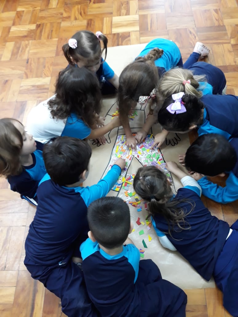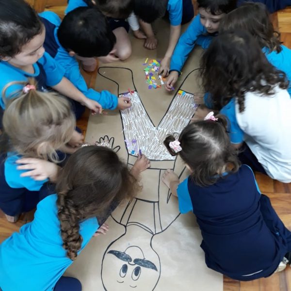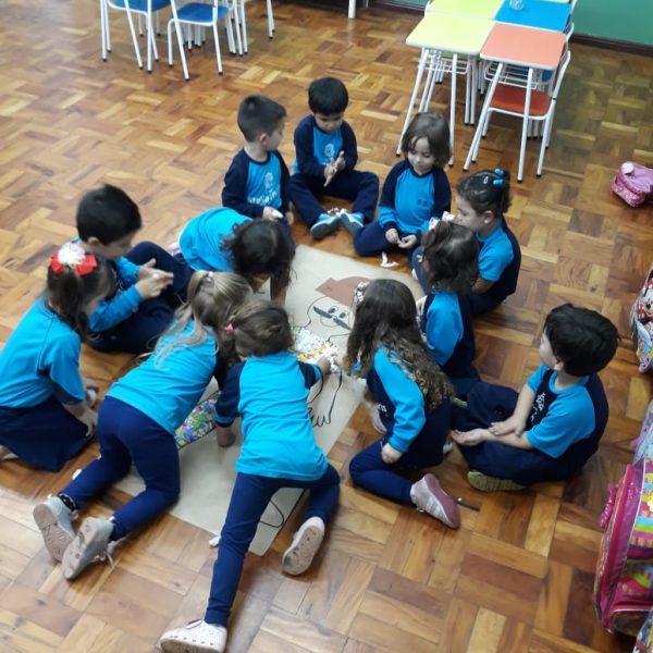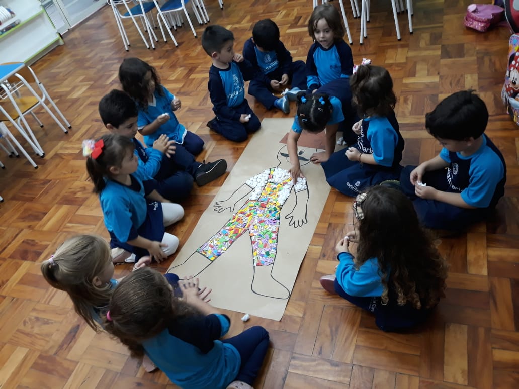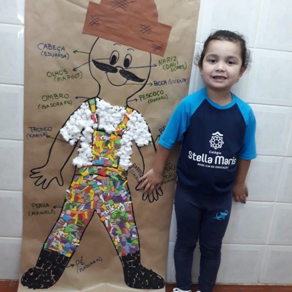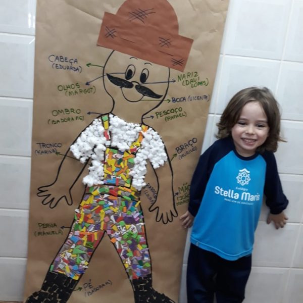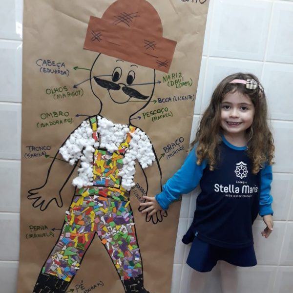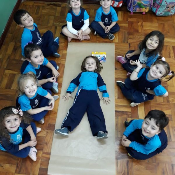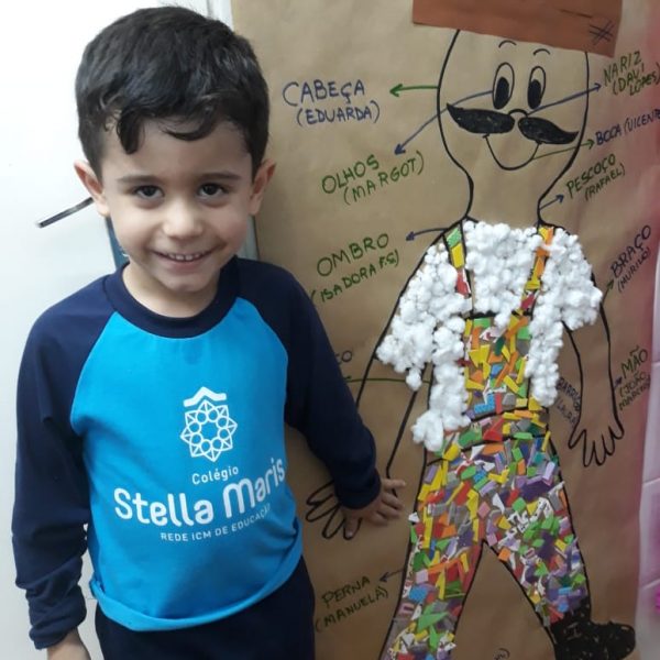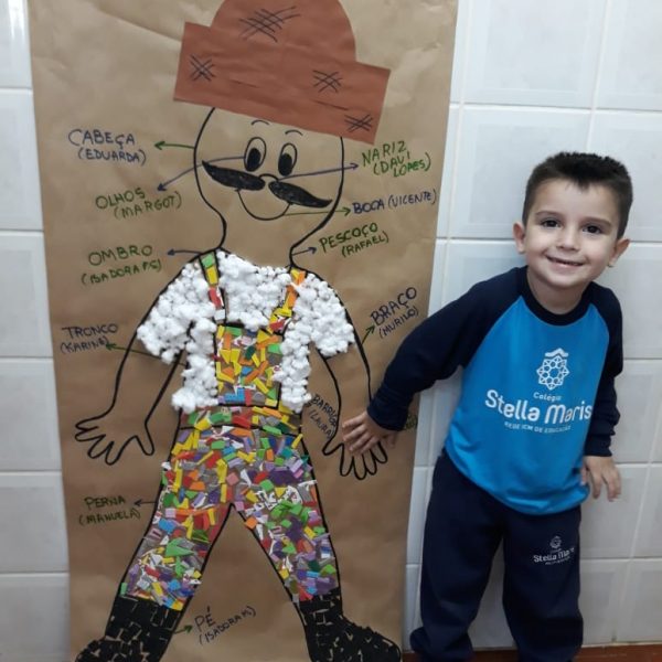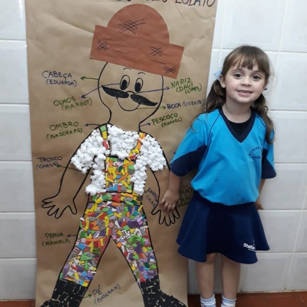 A turma de Maternal 2 está estudando sobre o corpo. Então, pensamos assim: quais partes do corpo que o Seu Lobato tem e que nós também temos? Falamos até no bigode, mas chegamos a conclusão que nem todas as pessoas tem bigodes. Foi muito divertido!