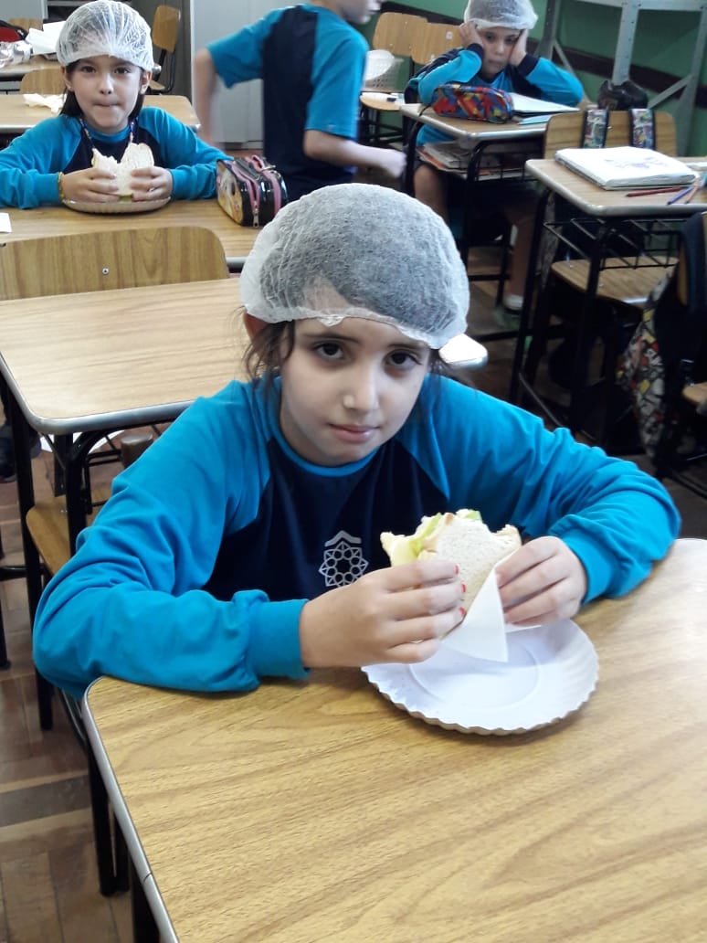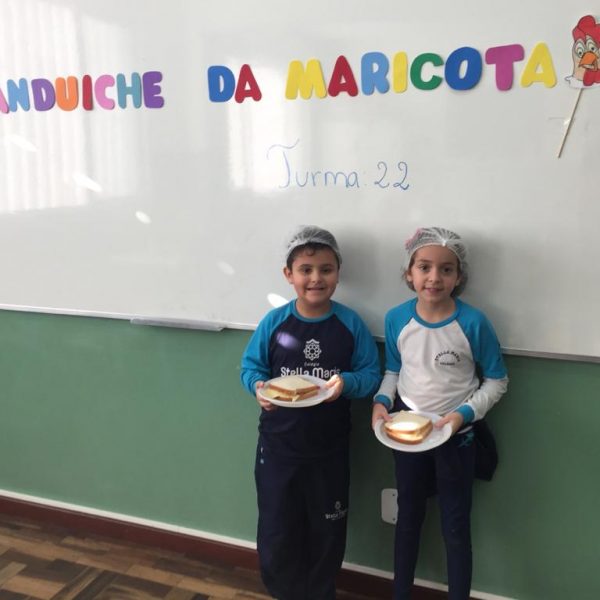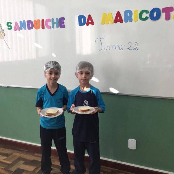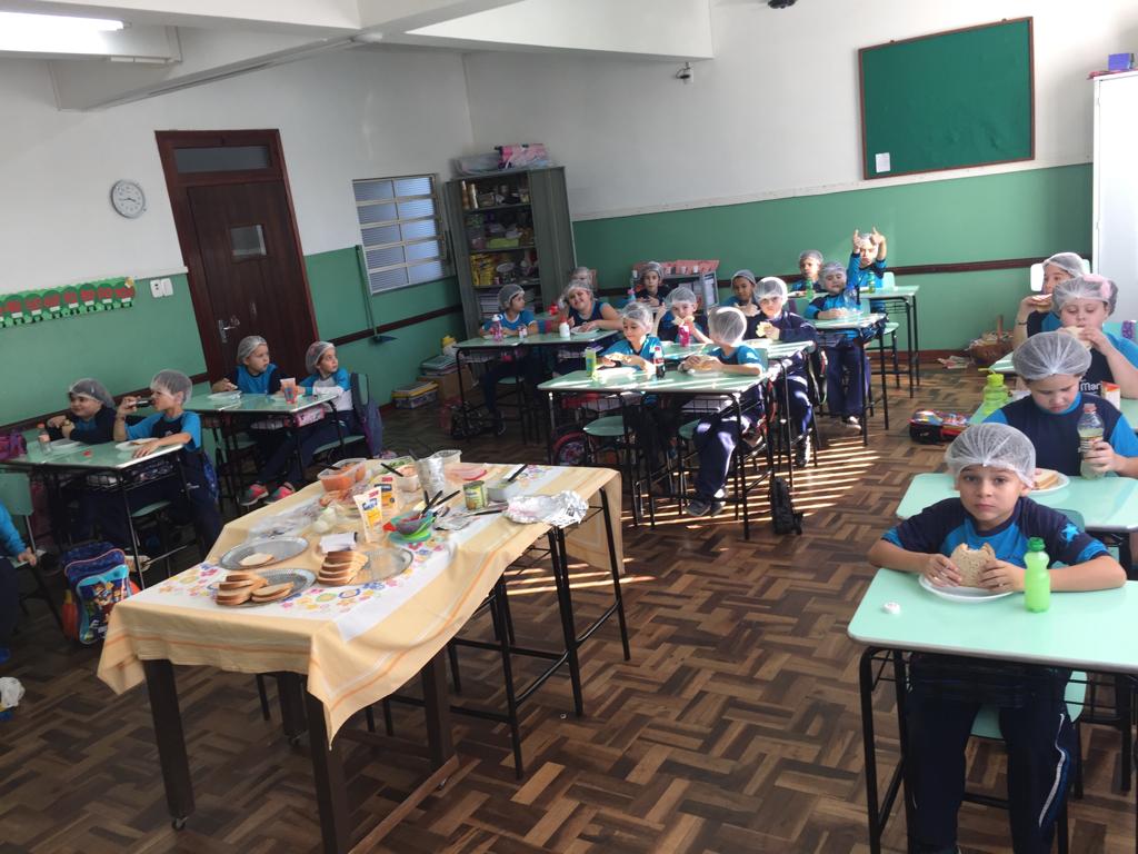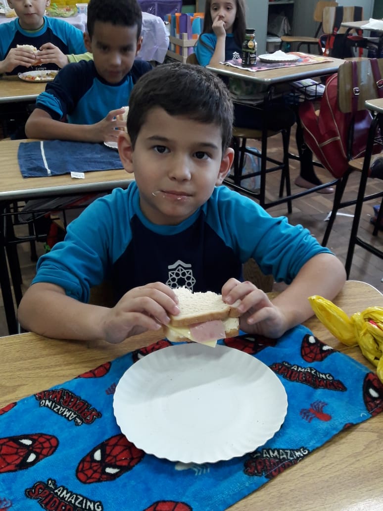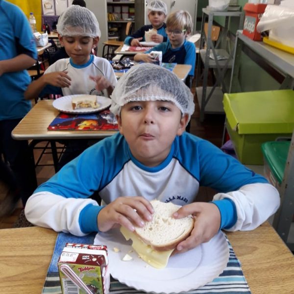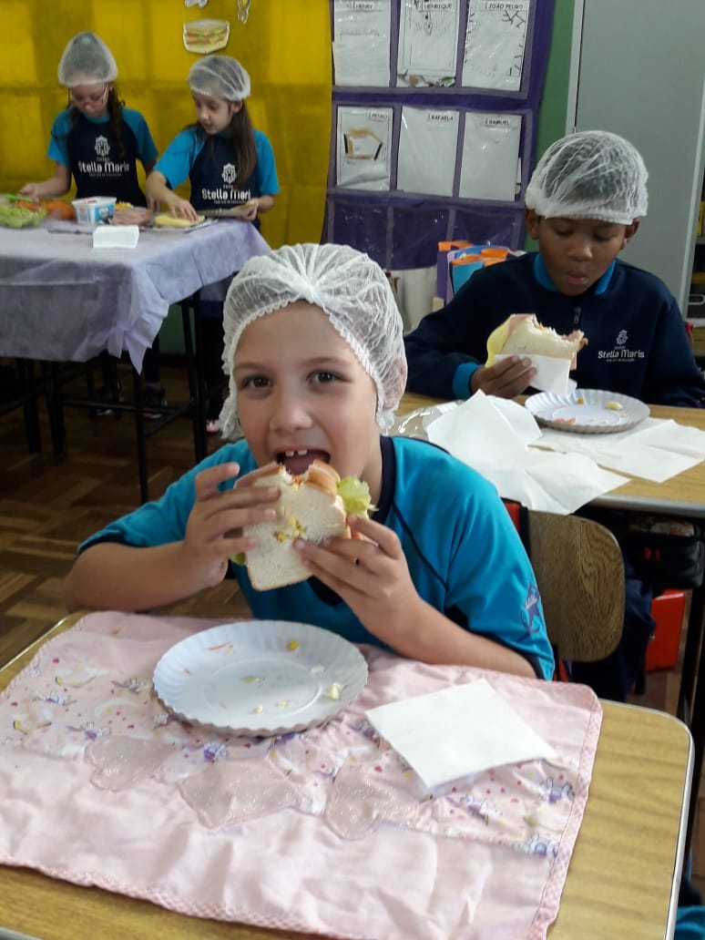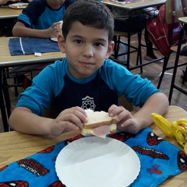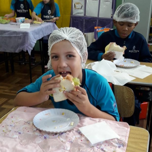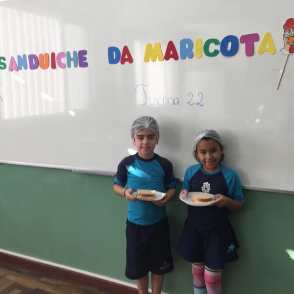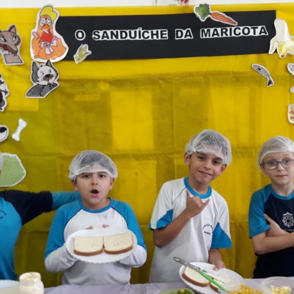 As turmas do 2° ano trabalharam sobre alimentação saudável, através da história “O sanduíche da Maricota”. Realizaram atividades e como culminância fizeram um lanche diferente: cada aluno trouxe um ingrediente para juntos montarem seu sanduíche. Foi muito divertido e saboroso.