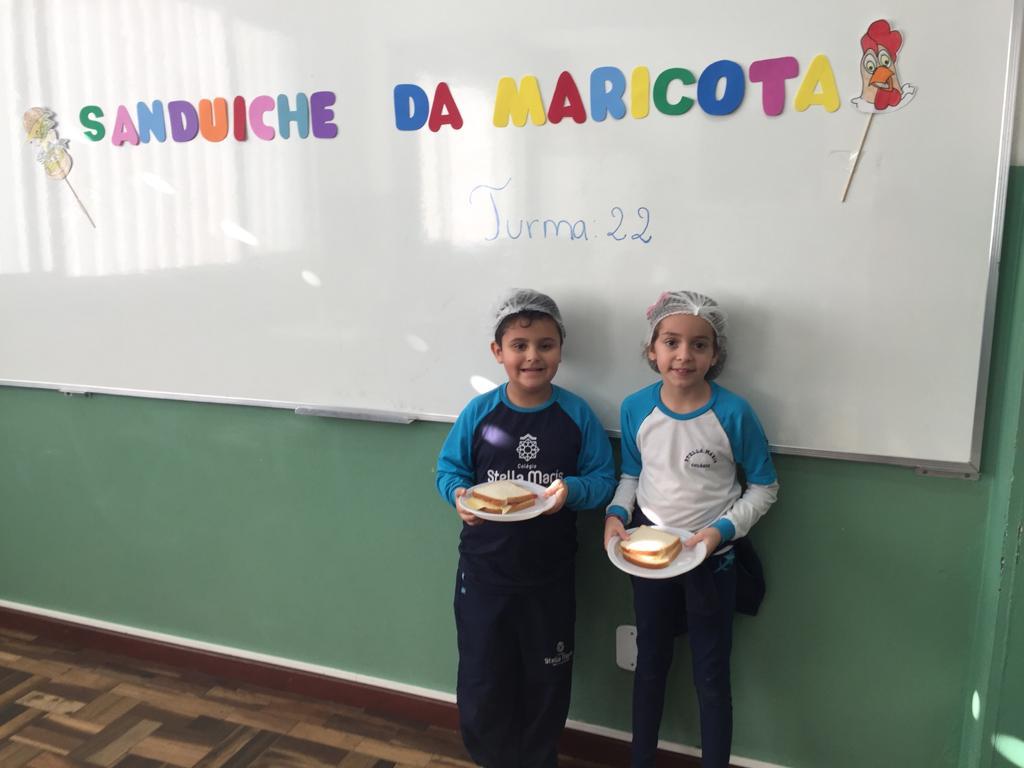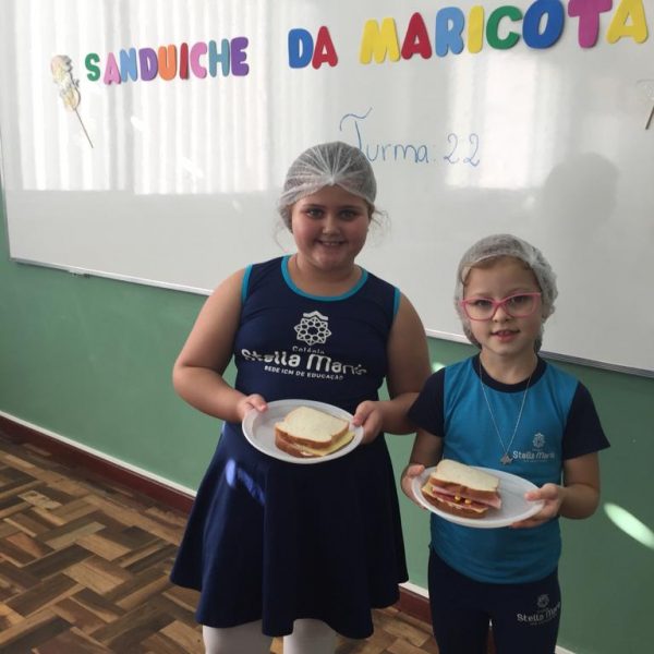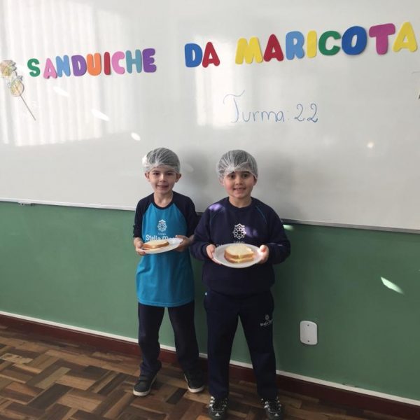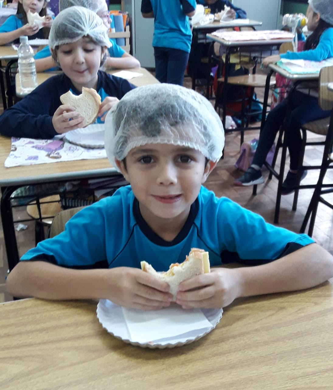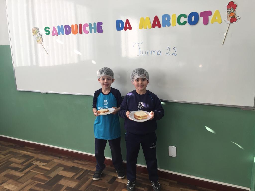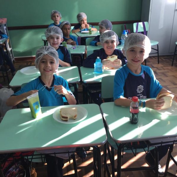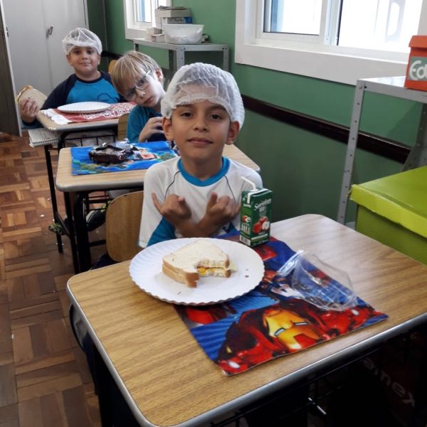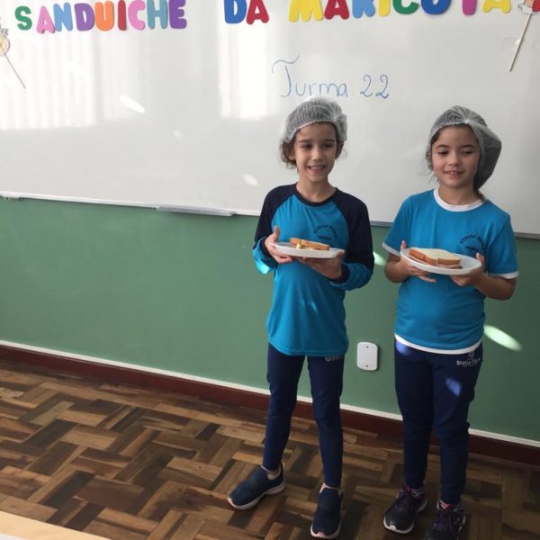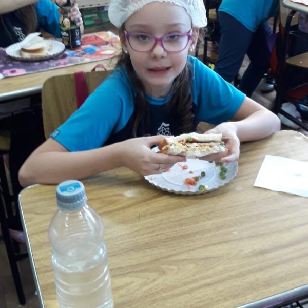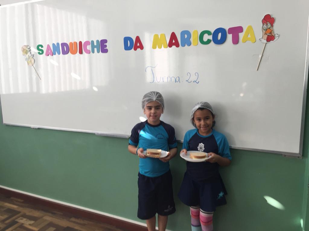 As turmas do 2° ano trabalharam sobre alimentação saudável, através da história “O sanduíche da Maricota”. Realizaram atividades e como culminância fizeram um lanche diferente: cada aluno trouxe um ingrediente para juntos montarem seu sanduíche. Foi muito divertido e saboroso.