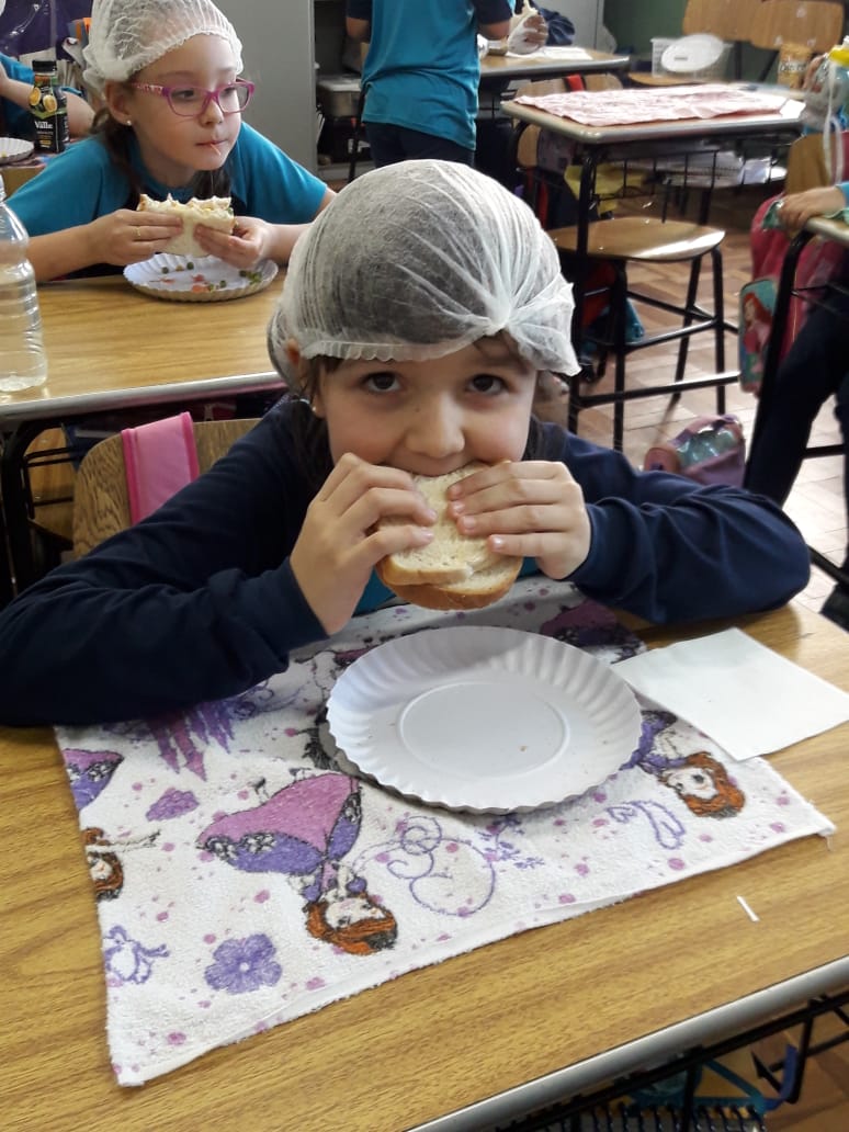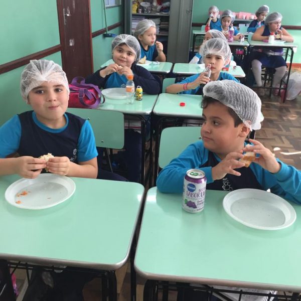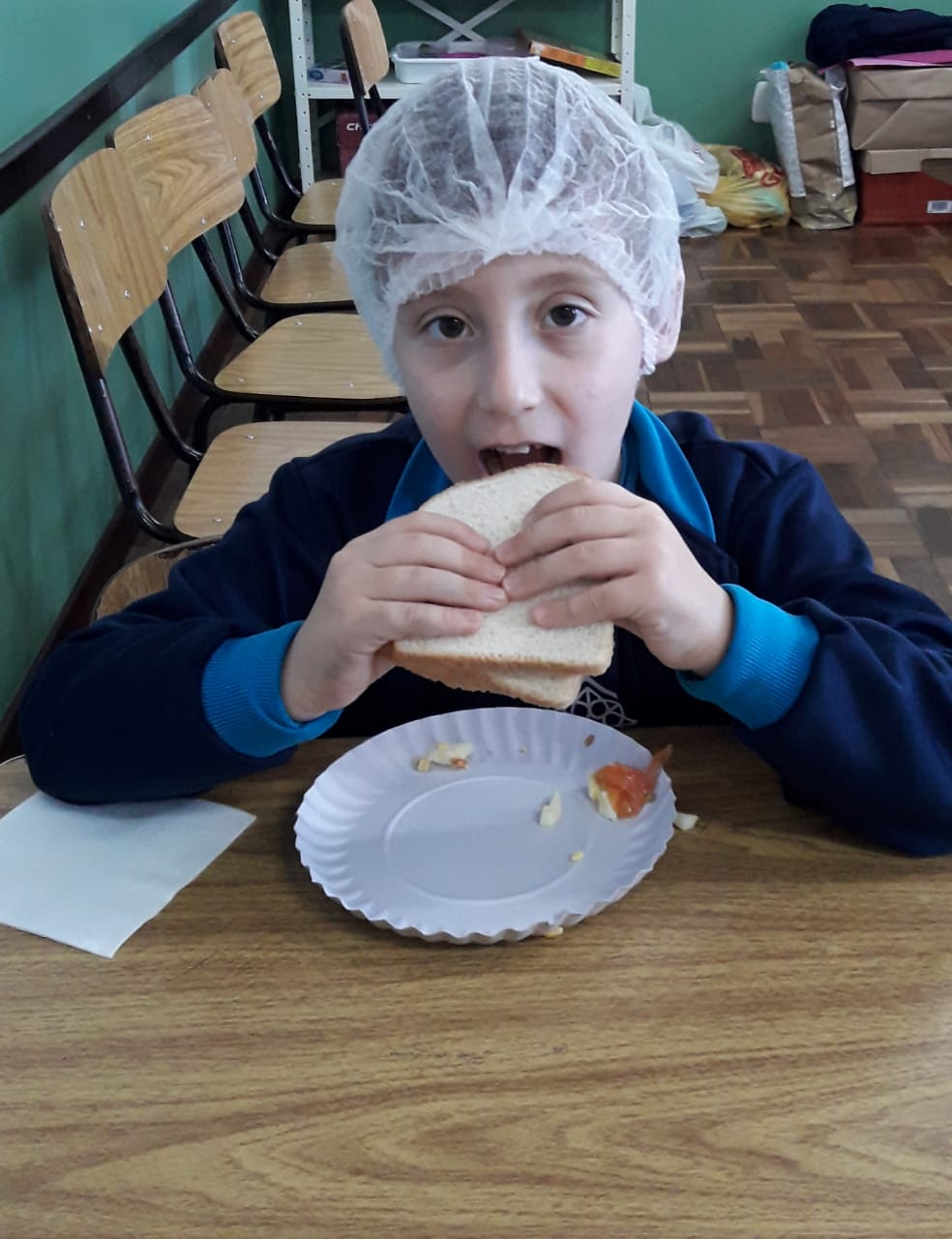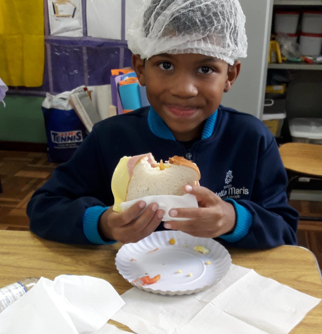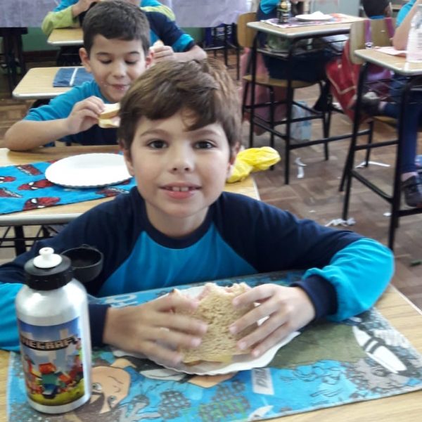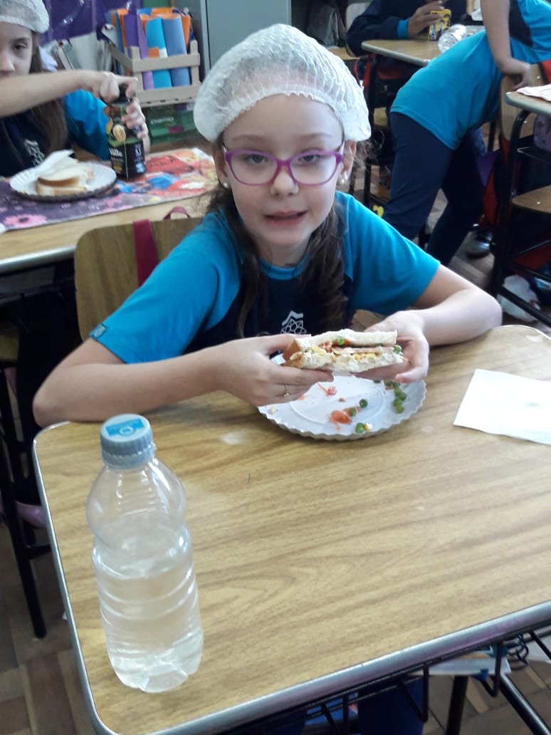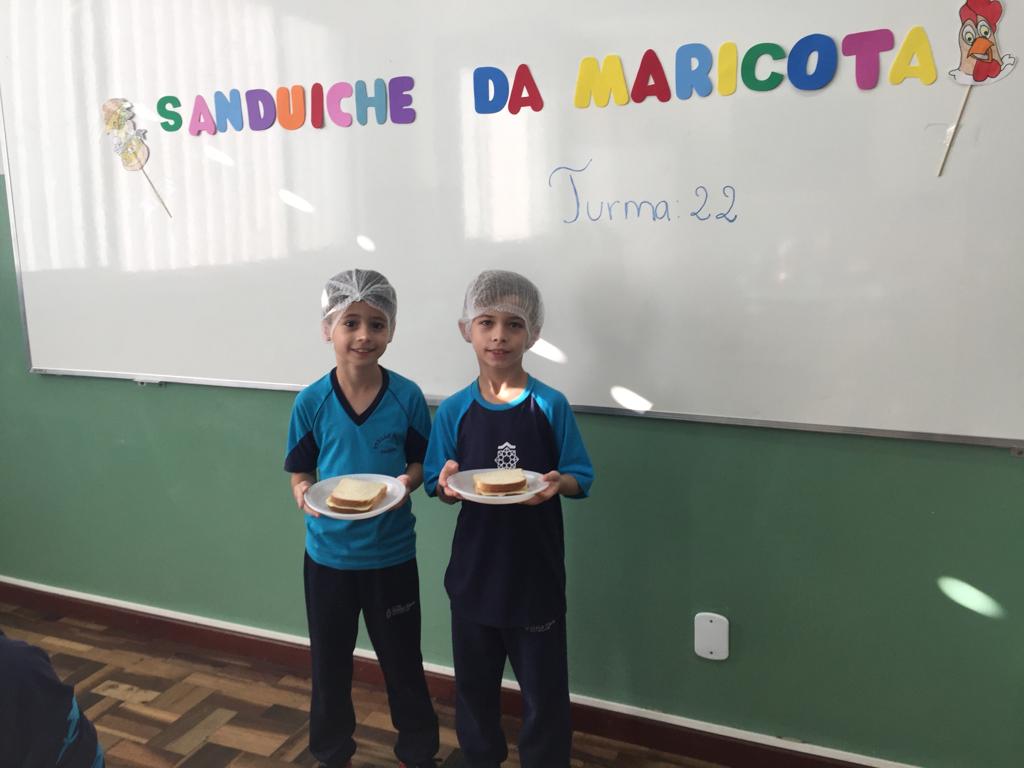 As turmas do 2° ano trabalharam sobre alimentação saudável, através da história “O sanduíche da Maricota”. Realizaram atividades e como culminância fizeram um lanche diferente: cada aluno trouxe um ingrediente para juntos montarem seu sanduíche. Foi muito divertido e saboroso.