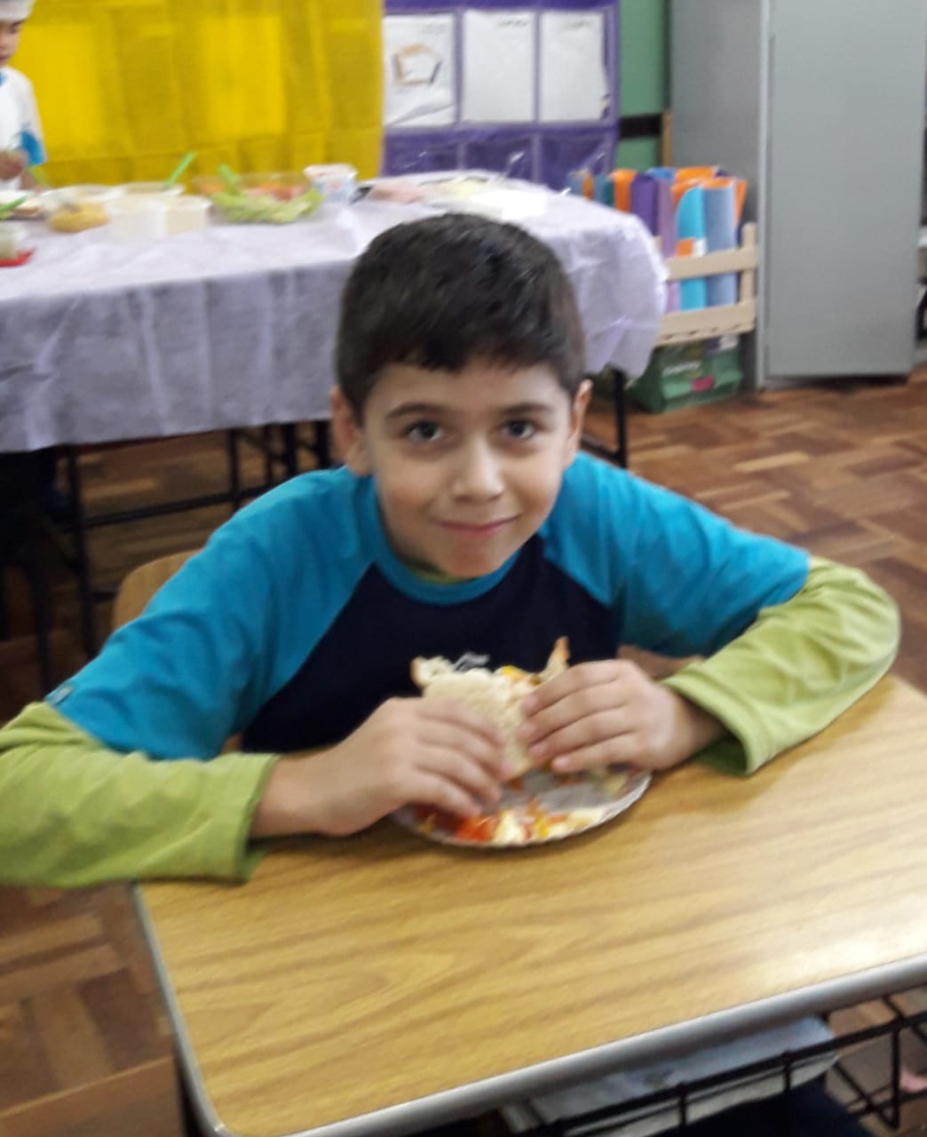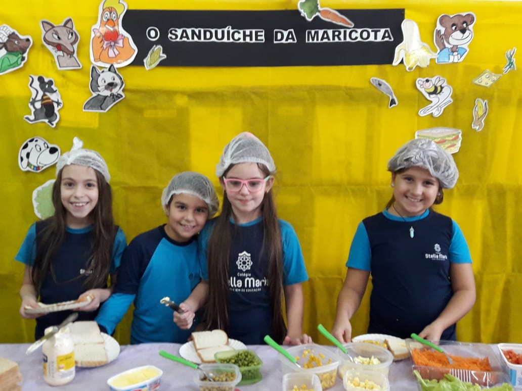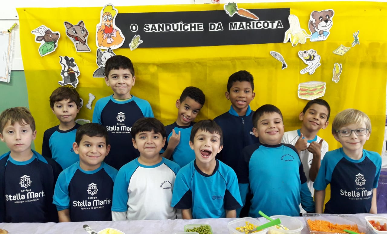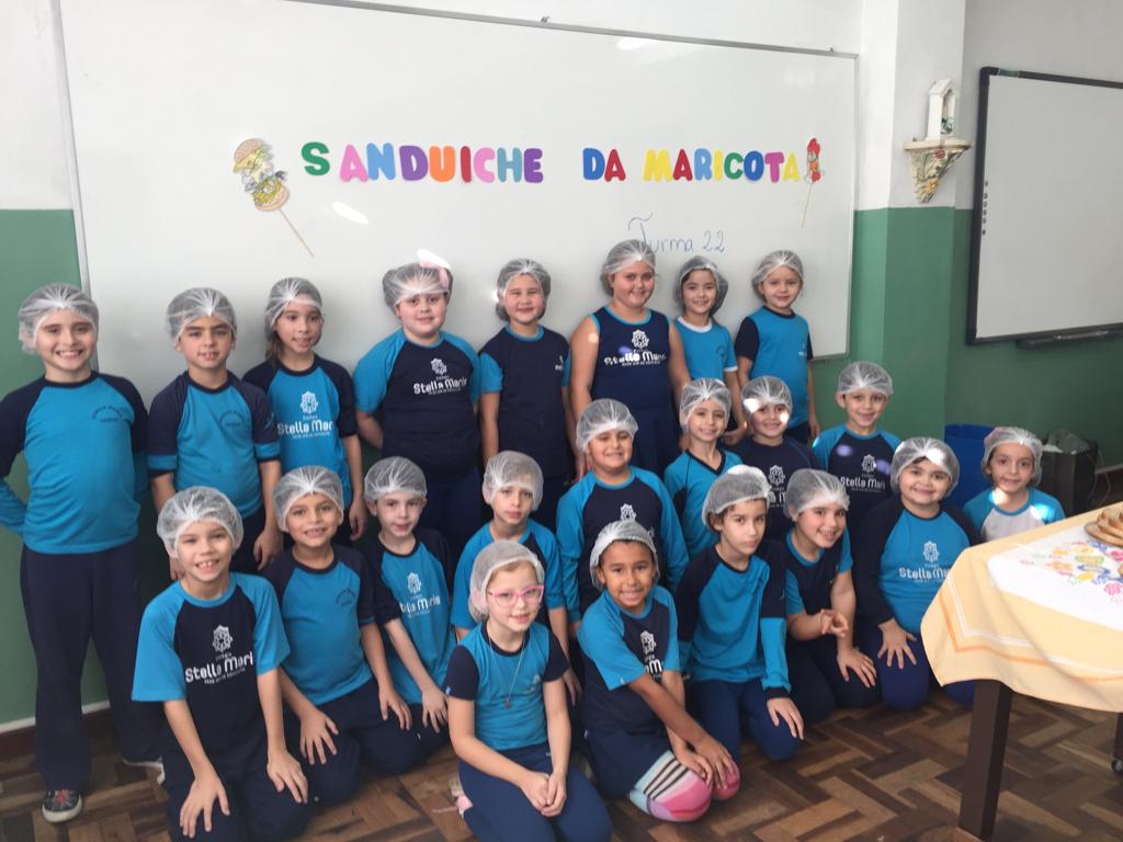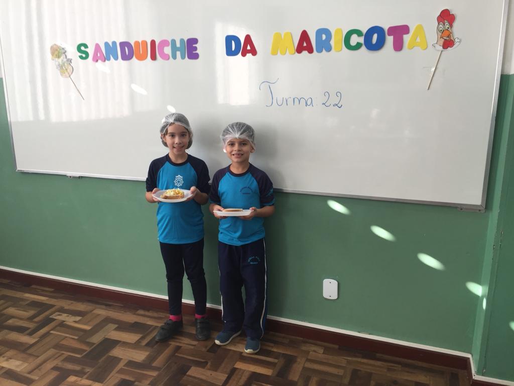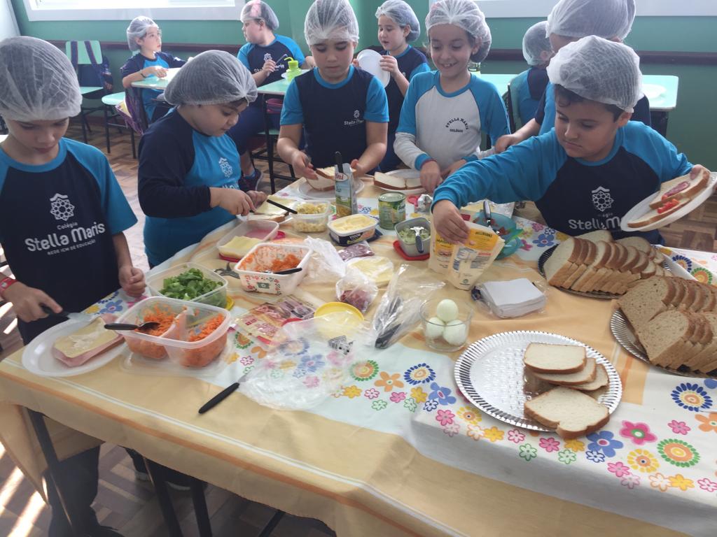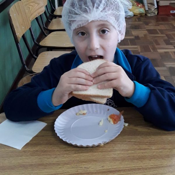 As turmas do 2° ano trabalharam sobre alimentação saudável, através da história “O sanduíche da Maricota”. Realizaram atividades e como culminância fizeram um lanche diferente: cada aluno trouxe um ingrediente para juntos montarem seu sanduíche. Foi muito divertido e saboroso.