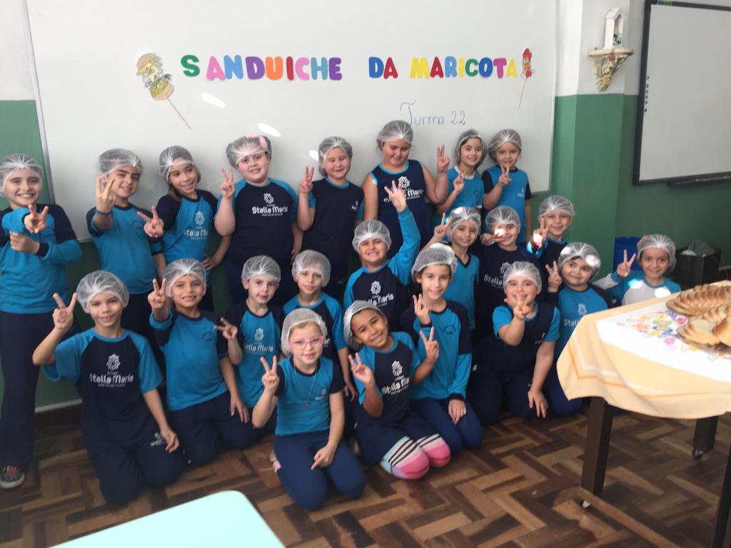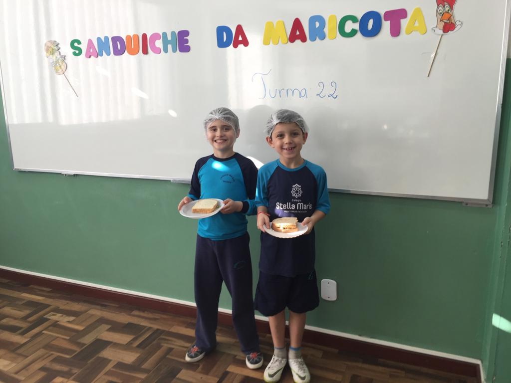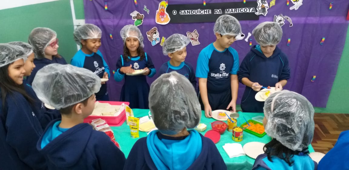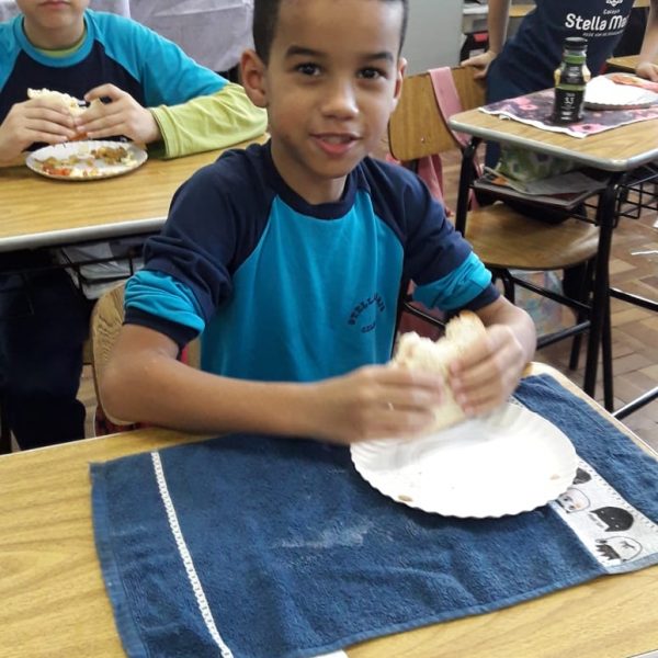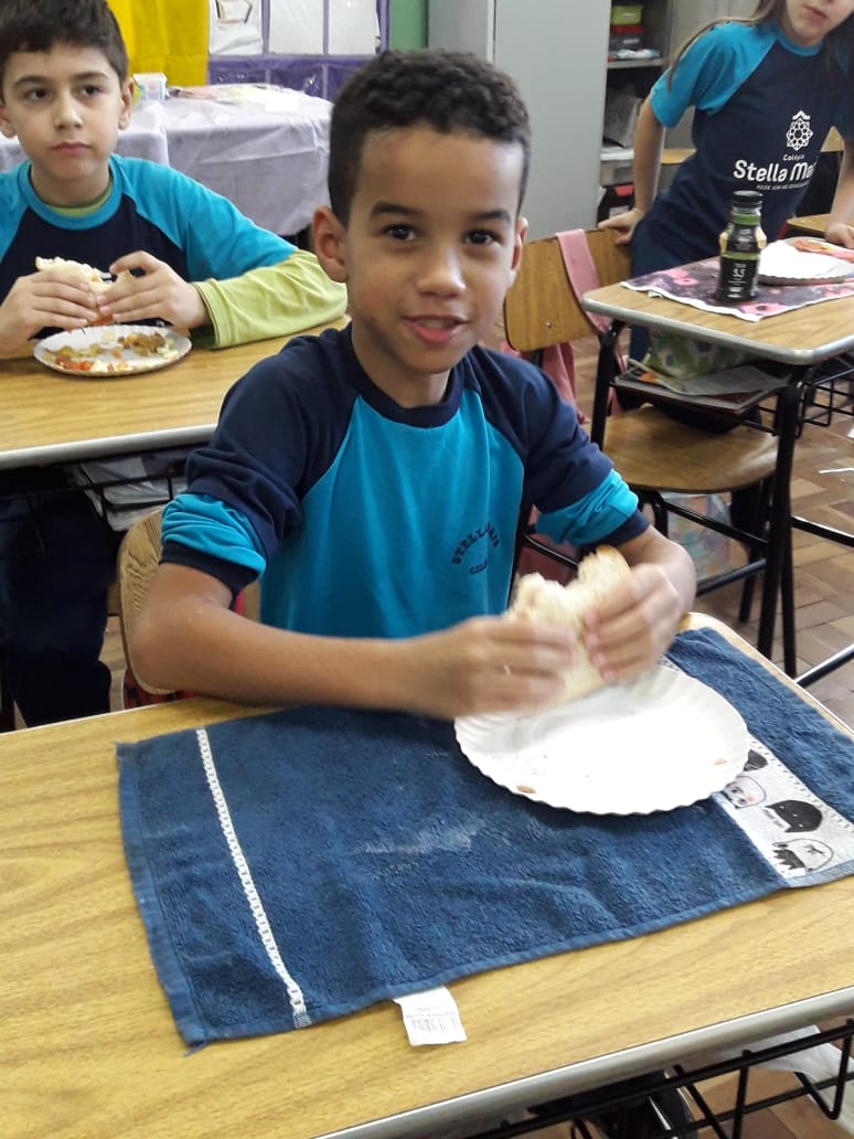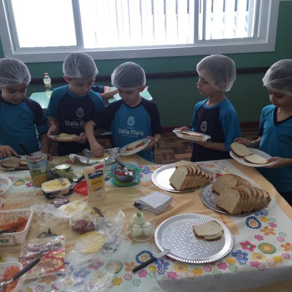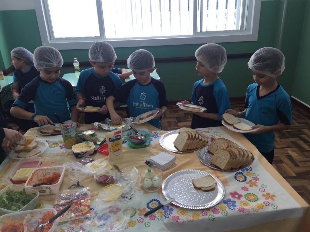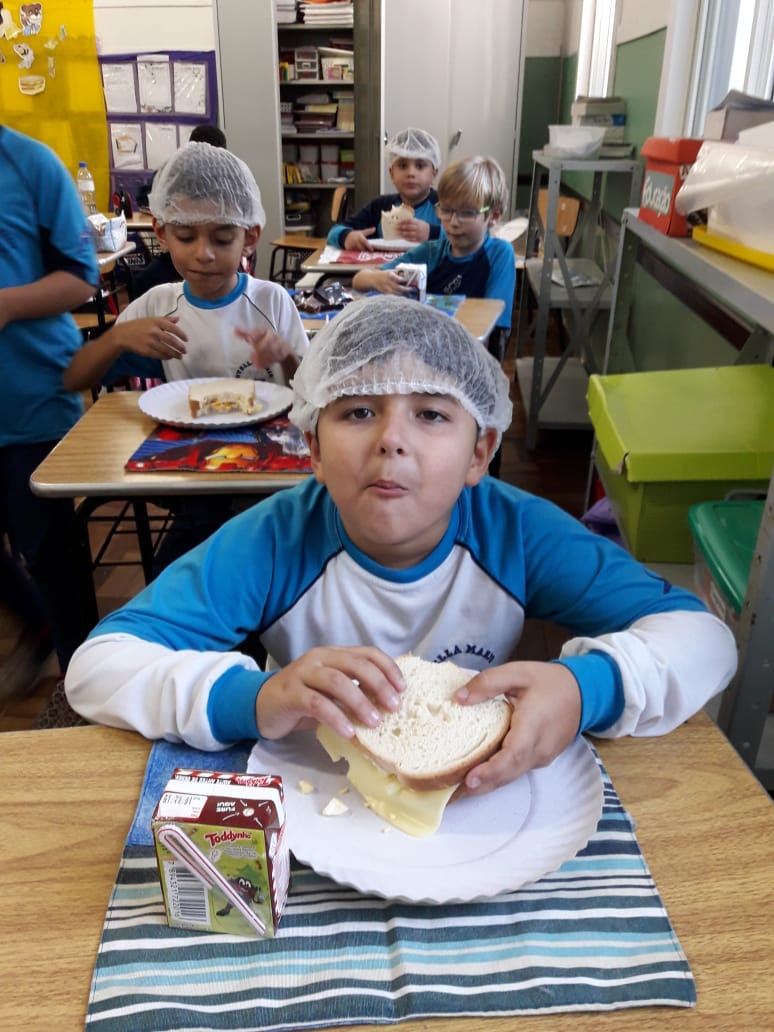 As turmas do 2° ano trabalharam sobre alimentação saudável, através da história “O sanduíche da Maricota”. Realizaram atividades e como culminância fizeram um lanche diferente: cada aluno trouxe um ingrediente para juntos montarem seu sanduíche. Foi muito divertido e saboroso.