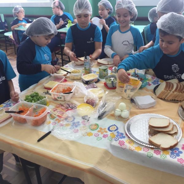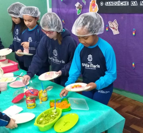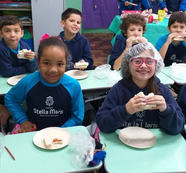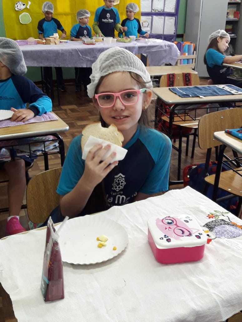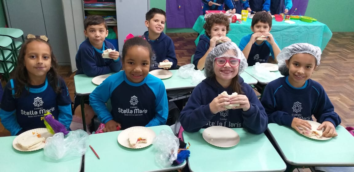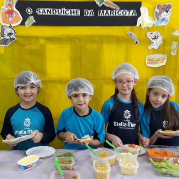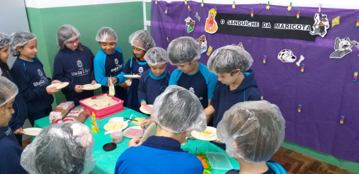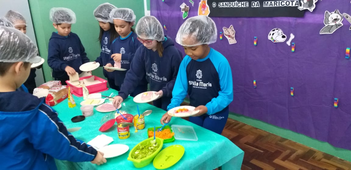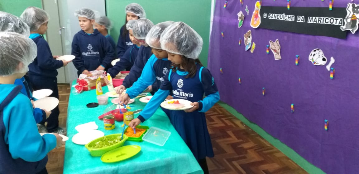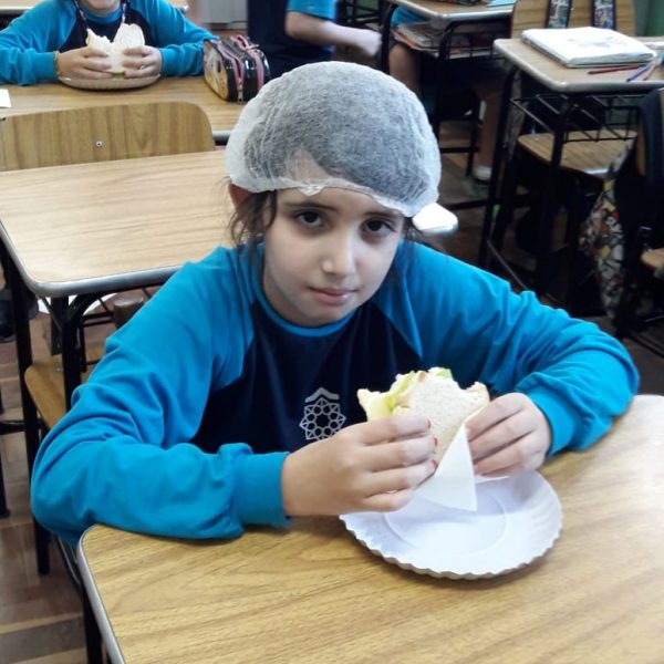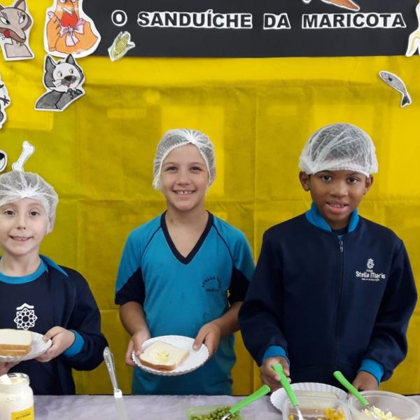 As turmas do 2° ano trabalharam sobre alimentação saudável, através da história “O sanduíche da Maricota”. Realizaram atividades e como culminância fizeram um lanche diferente: cada aluno trouxe um ingrediente para juntos montarem seu sanduíche. Foi muito divertido e saboroso.