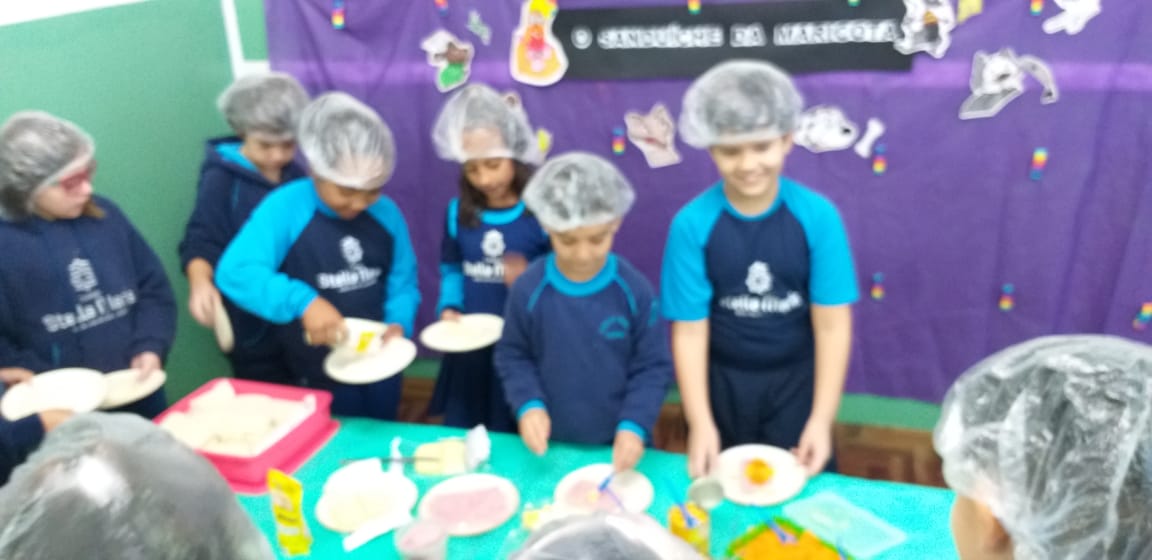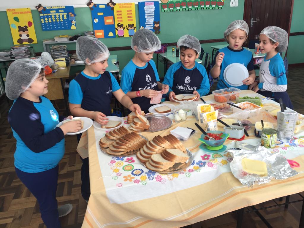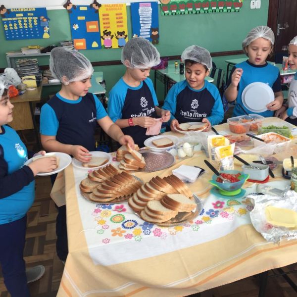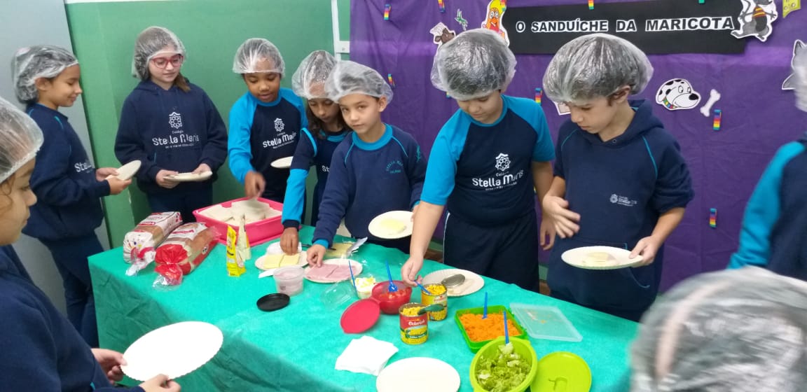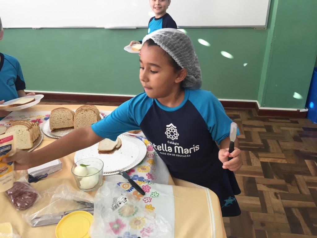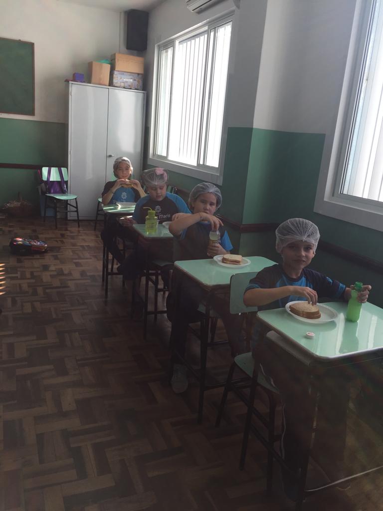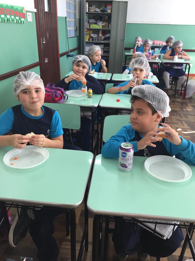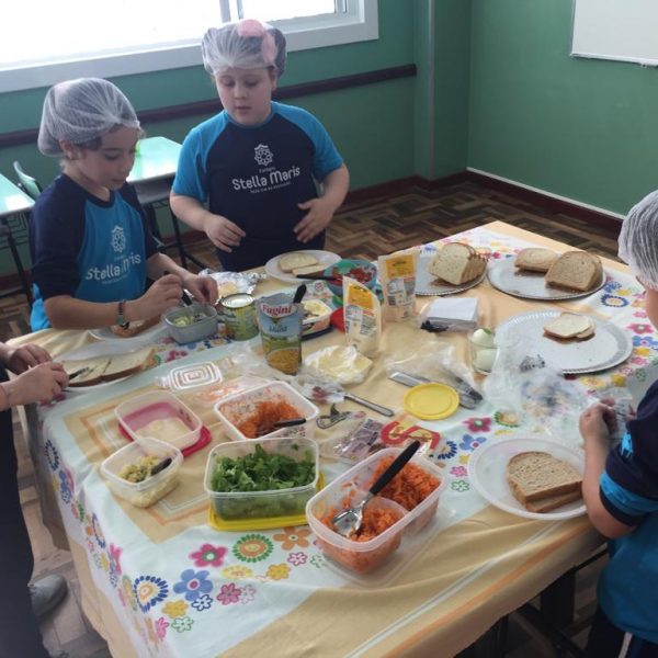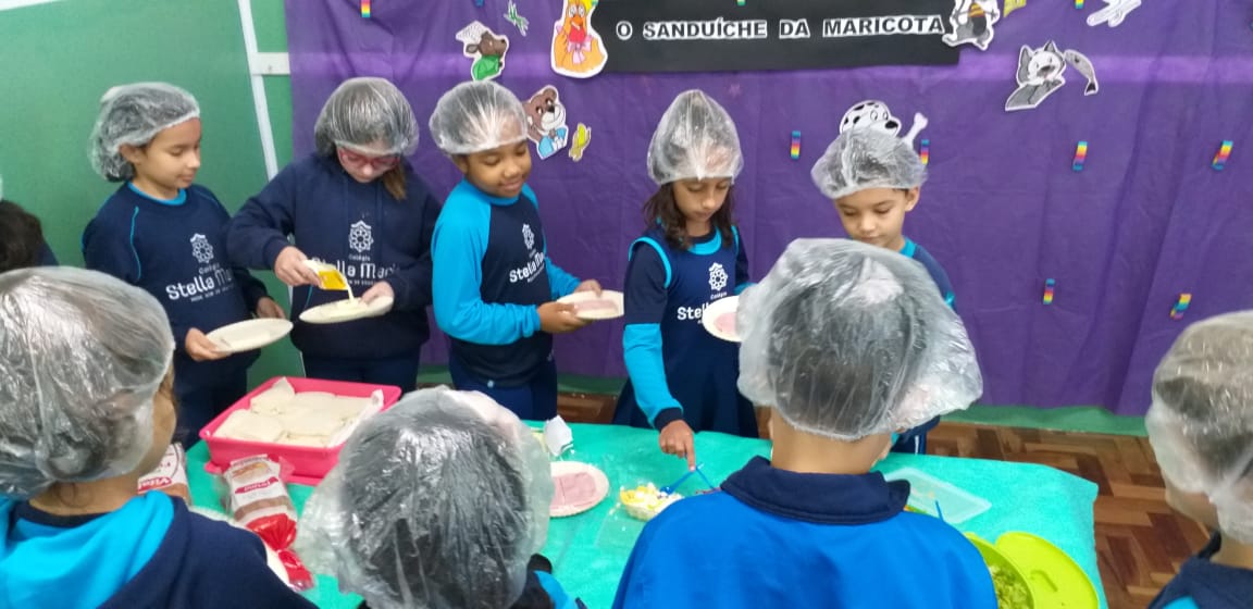 As turmas do 2° ano trabalharam sobre alimentação saudável, através da história “O sanduíche da Maricota”. Realizaram atividades e como culminância fizeram um lanche diferente: cada aluno trouxe um ingrediente para juntos montarem seu sanduíche. Foi muito divertido e saboroso.