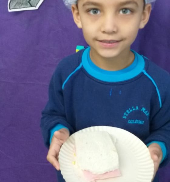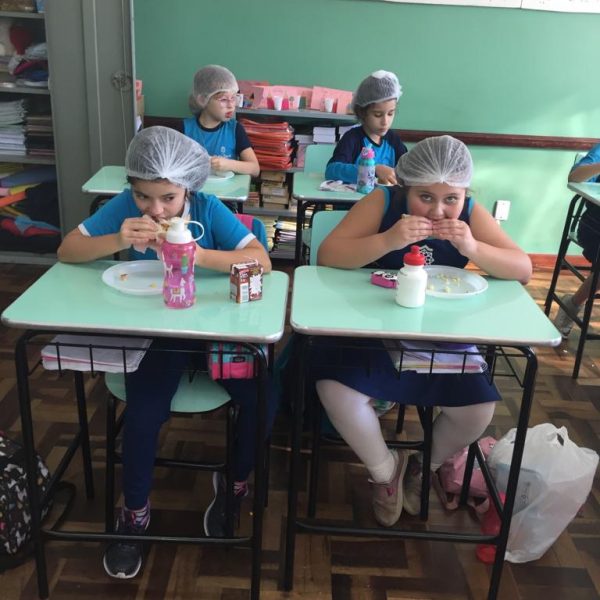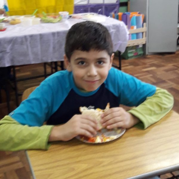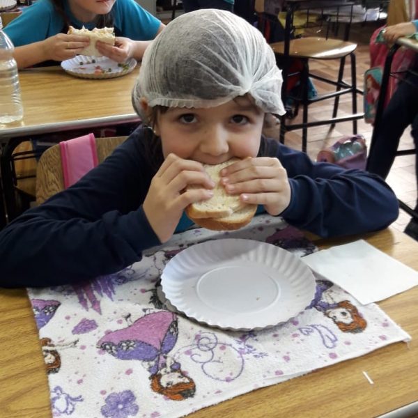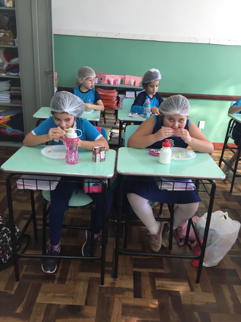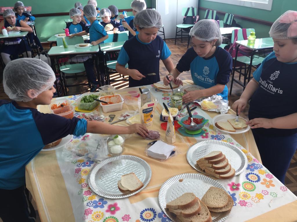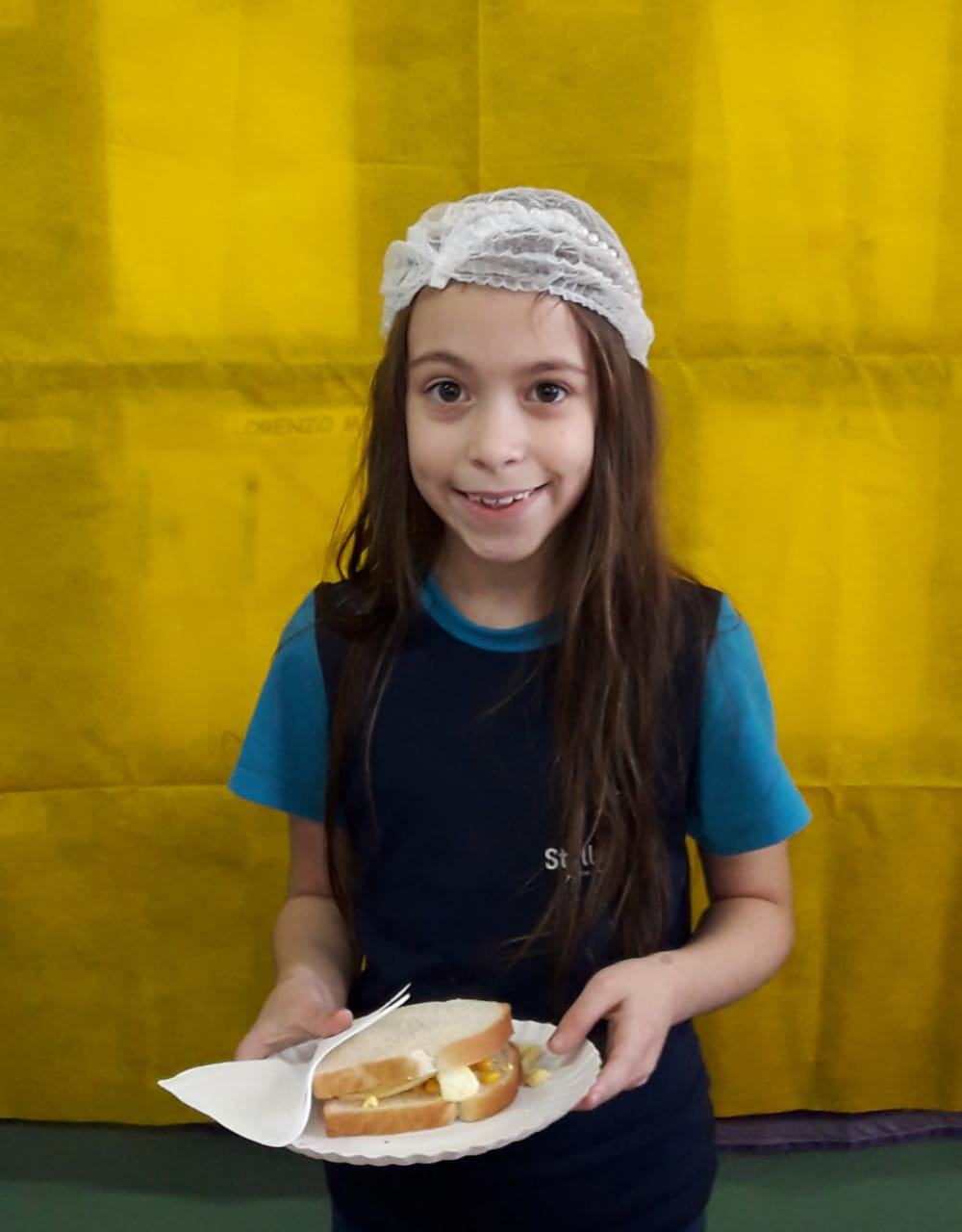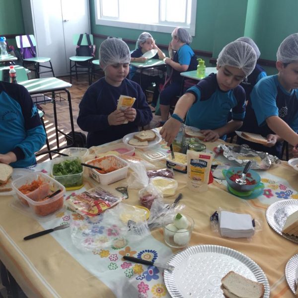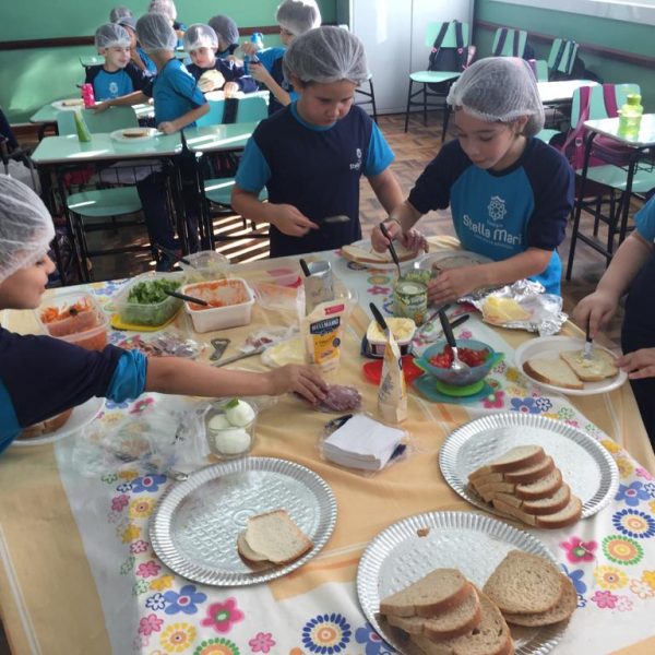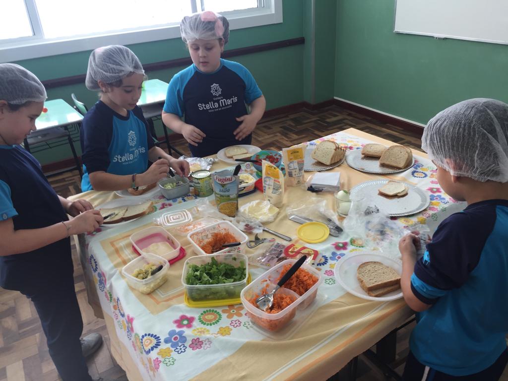As turmas do 2° ano trabalharam sobre alimentação saudável, através da história “O sanduíche da Maricota”. Realizaram atividades e como culminância fizeram um lanche diferente: cada aluno trouxe um ingrediente para juntos montarem seu sanduíche. Foi muito divertido e saboroso.
