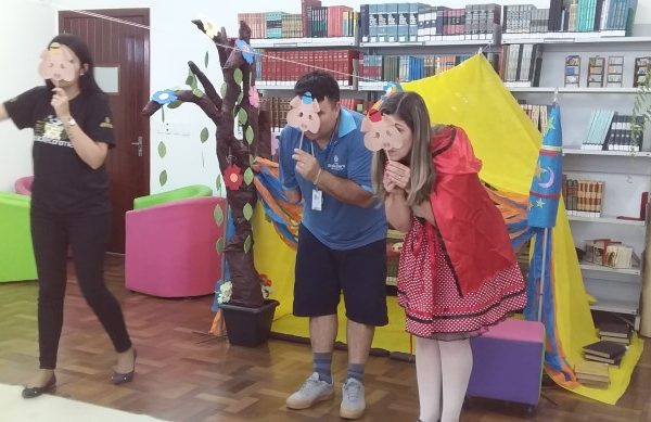 As turmas Pré 1A e B, tiveram a oportunidade de participar de um momento muito especial, a hora do conto através do teatro. A equipe da biblioteca e a psicóloga Solange representaram lindamente a história “A casa que o lobo fez” da autora Léia Cassol. As crianças mergulharam no mundo do faz de conta e interagiram diretamente com os personagens da história. Agradecemos muito por este momento tão lindo e parabenizamos a equipe pelo empenho e pelo carinho com os nossos alunos!♥️
