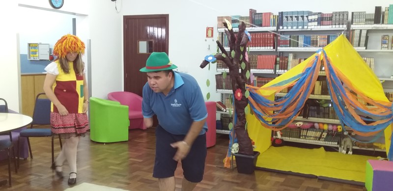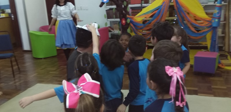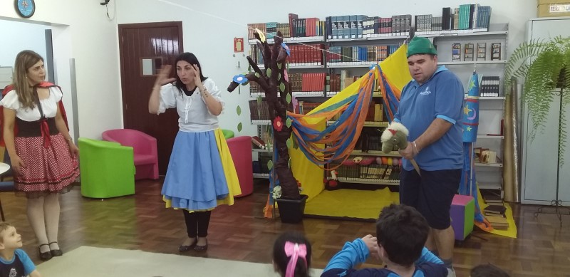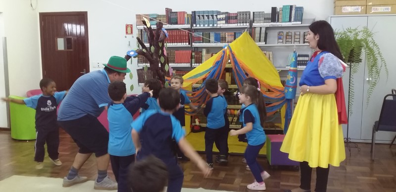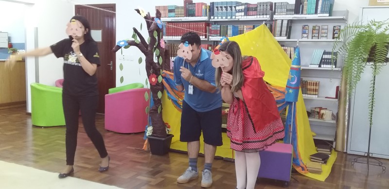 As turmas Pré 1A e B, tiveram a oportunidade de participar de um momento muito especial, a hora do conto através do teatro. A equipe da biblioteca e a psicóloga Solange representaram lindamente a história “A casa que o lobo fez” da autora Léia Cassol. As crianças mergulharam no mundo do faz de conta e interagiram diretamente com os personagens da história. Agradecemos muito por este momento tão lindo e parabenizamos a equipe pelo empenho e pelo carinho com os nossos alunos!♥️