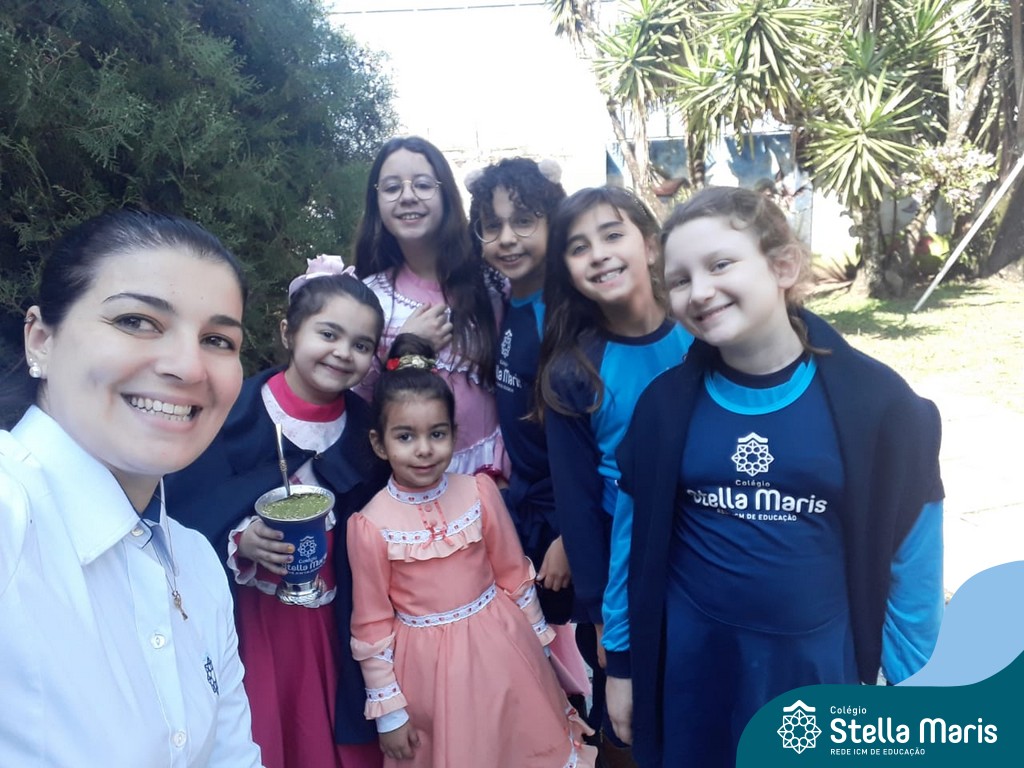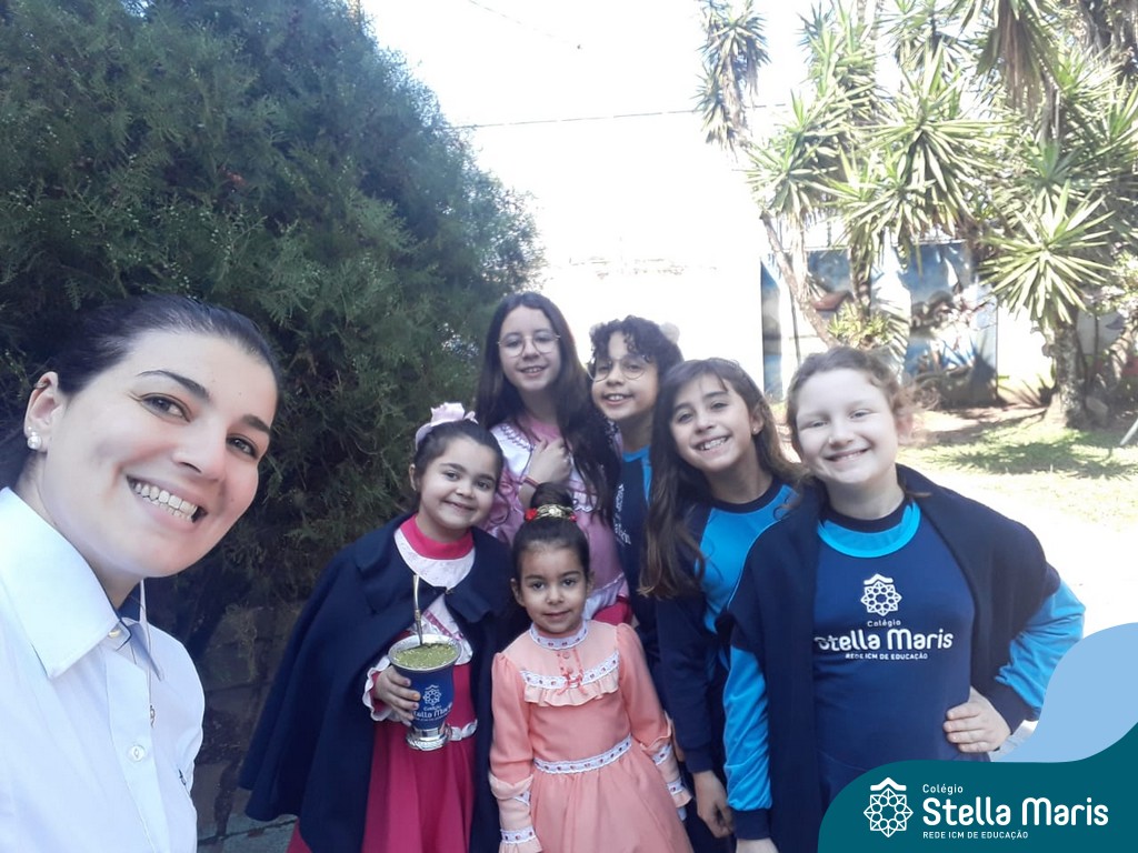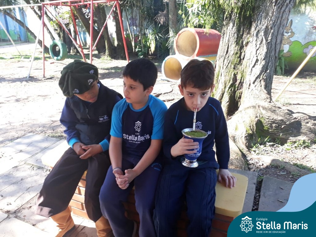 Na quinta-feira, 19/09, a turma da Atividade Extracurricular aproveitou a linda manhã de sol para matear e conversar sobre as nossas tradições!