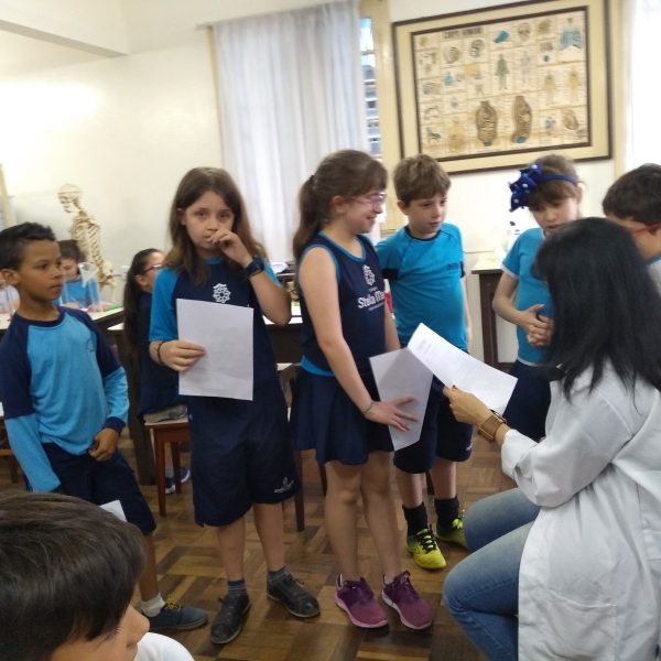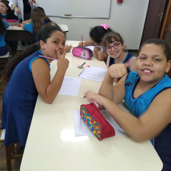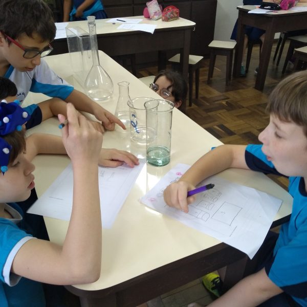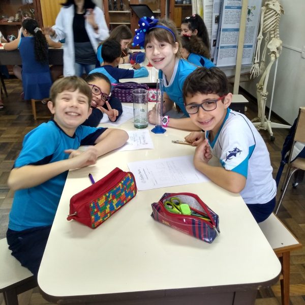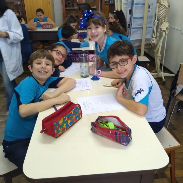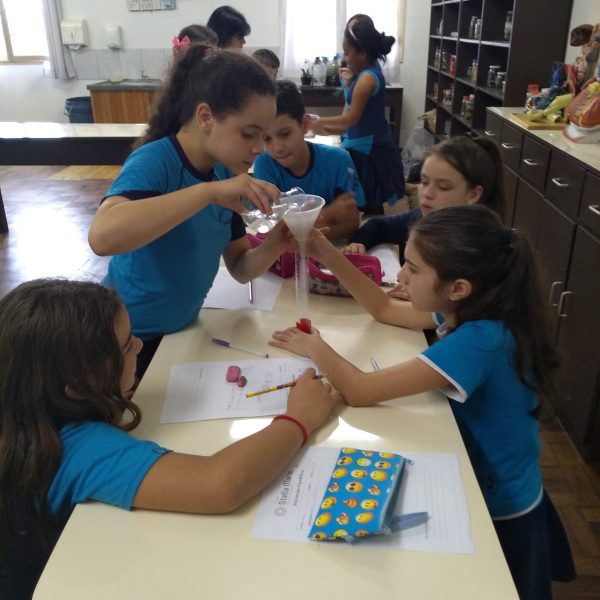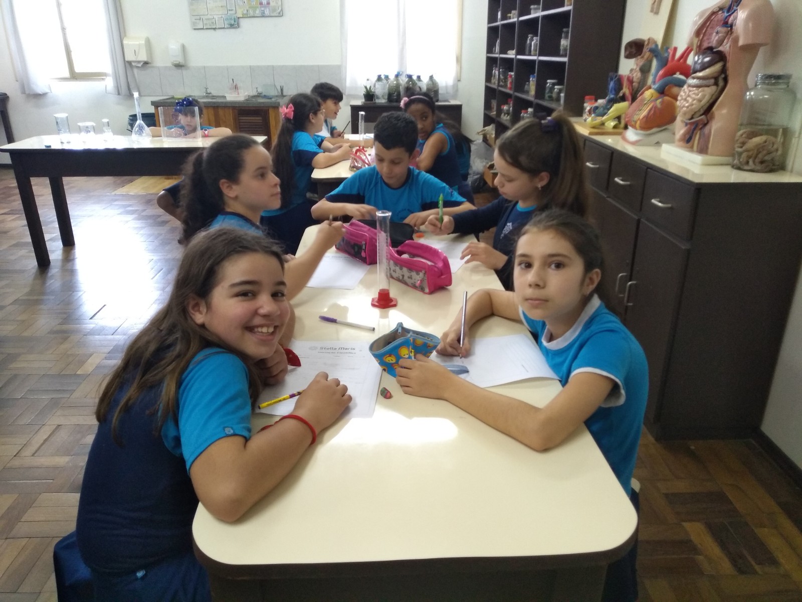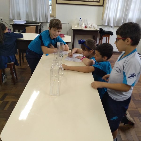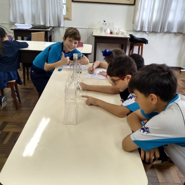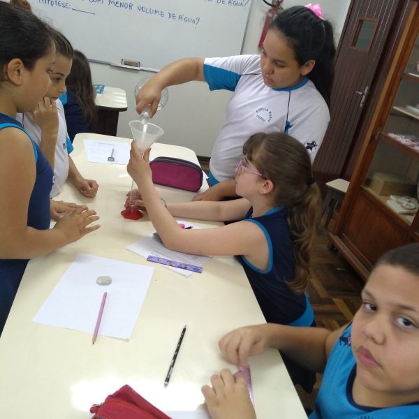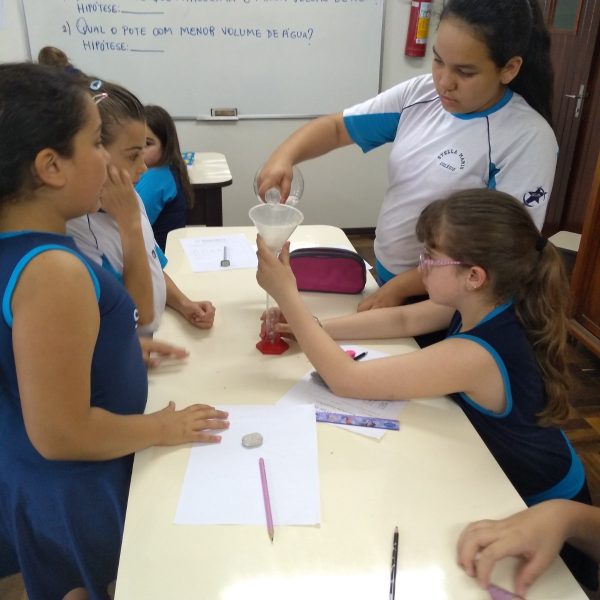 Os alunos da turma 44 aprenderam sobre volume e capacidade, realizando experiências e observações com diversos materiais do laboratório, na aula de Iniciação Científica com a professora Carla.