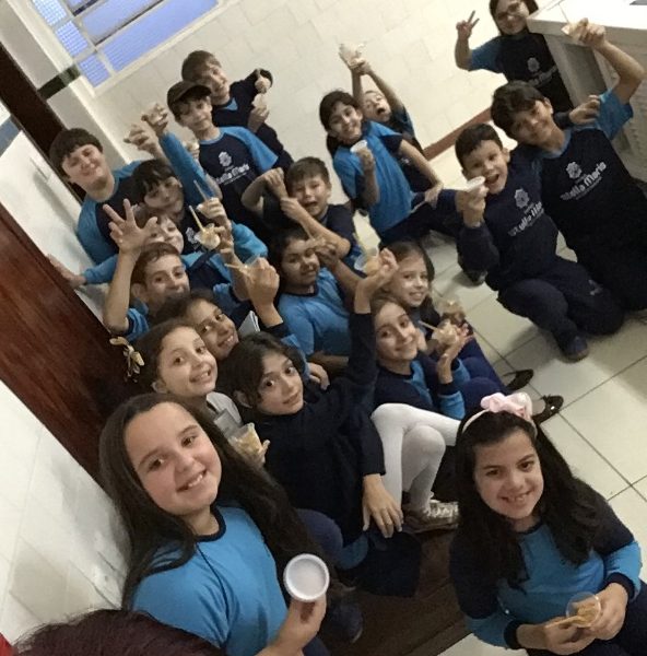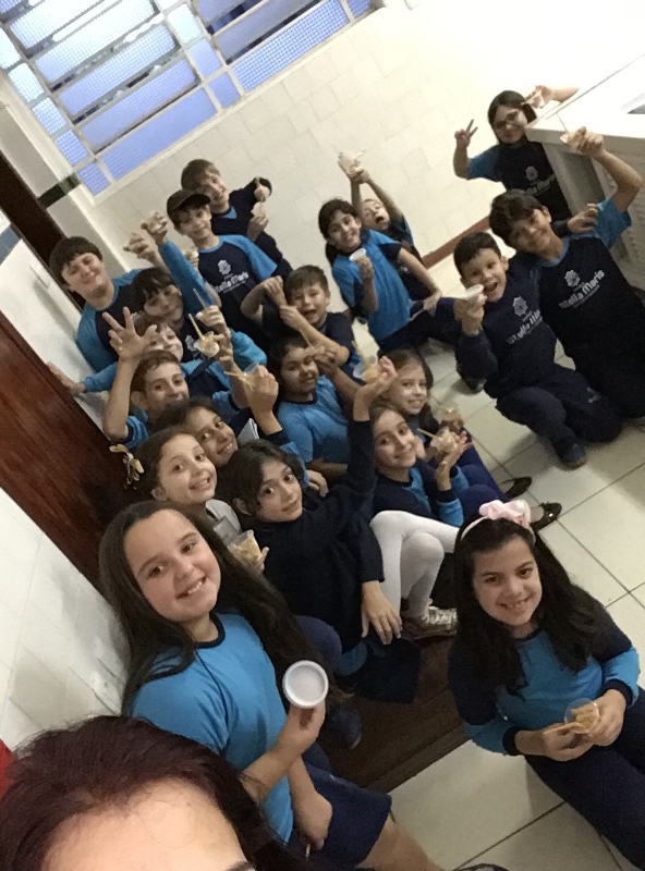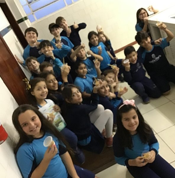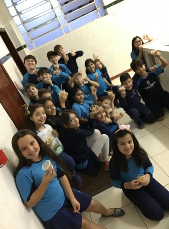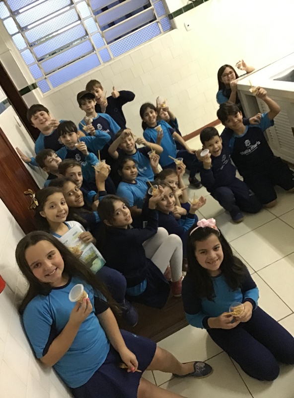 Os alunos da turma 42 após trabalharem o gênero textual “receita”, se deliciaram fazendo e degustando a culinária “Baguncinha doce”.