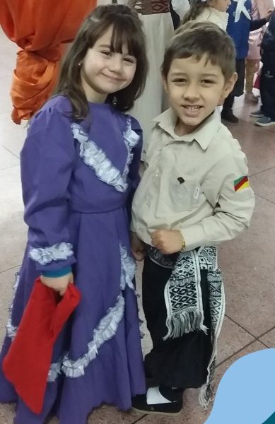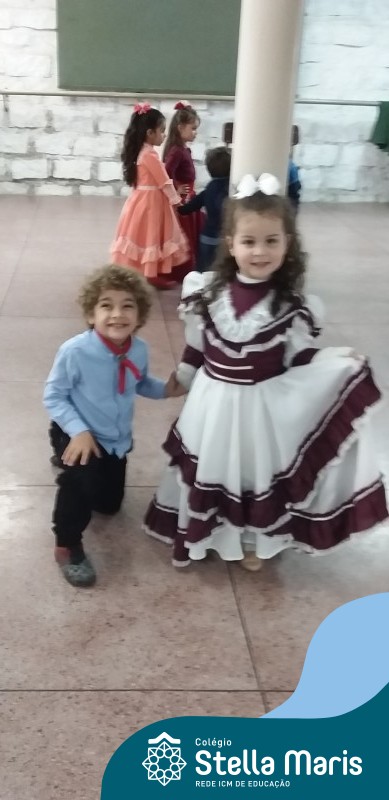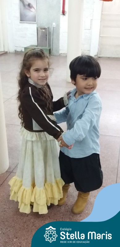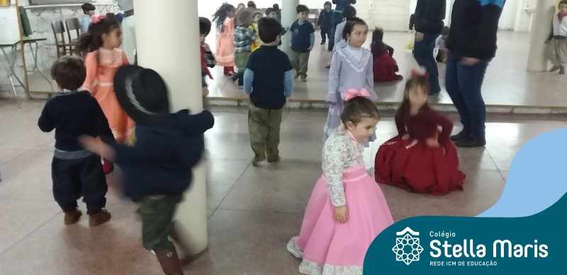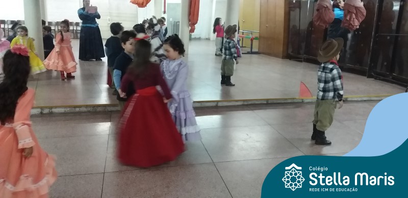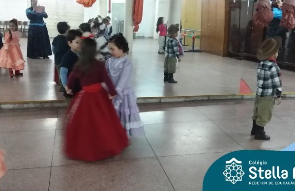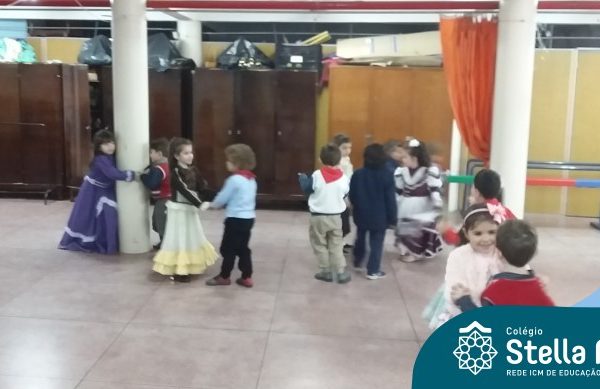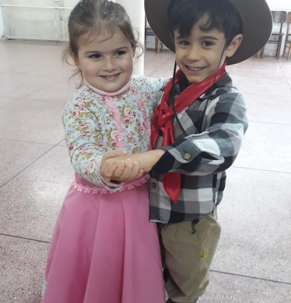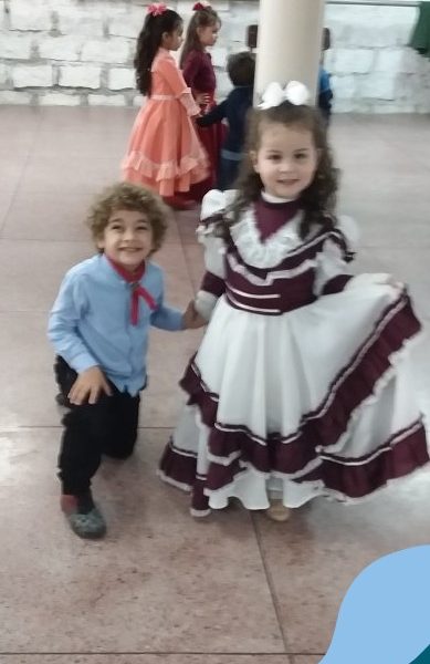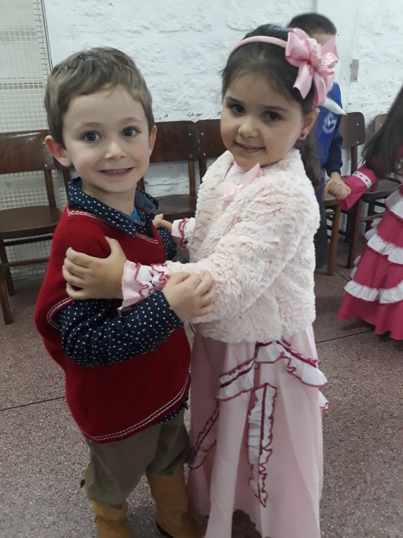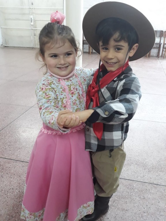 Em homenagem às tradições gauchas, as turmas do Pré 1A e B juntamente com o Maternal, participaram do bailinho gaúcho. Foi um resgate as danças e músicas típicas do nosso povo. Estava muito divertido! Arrasaram!!!