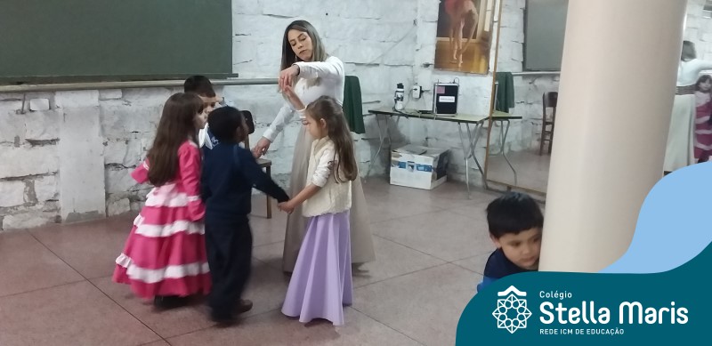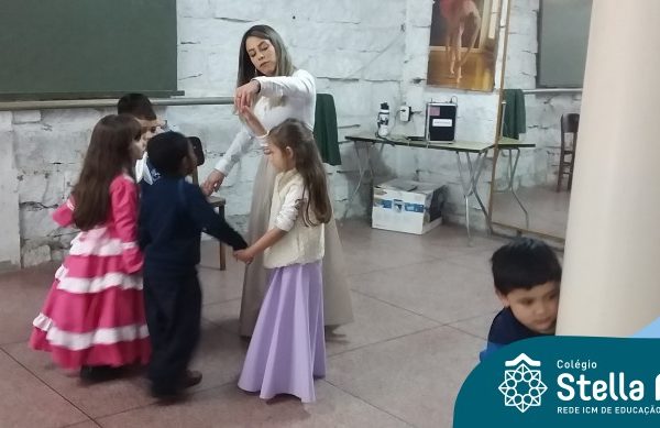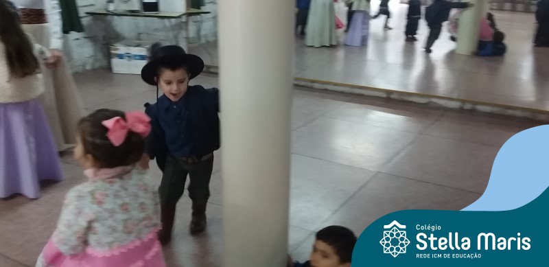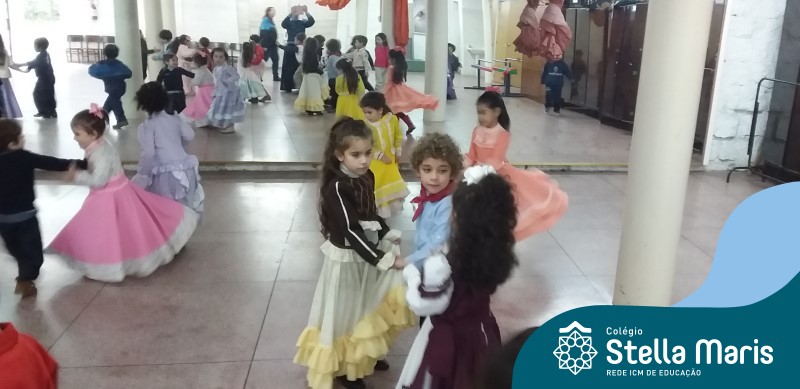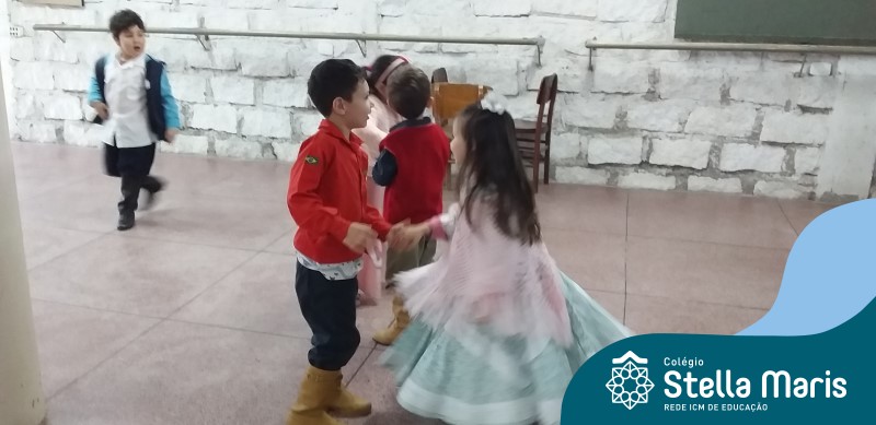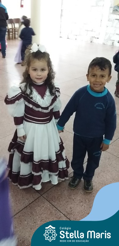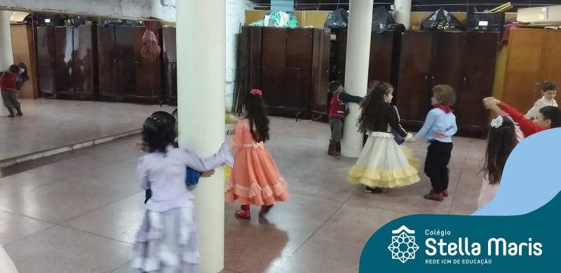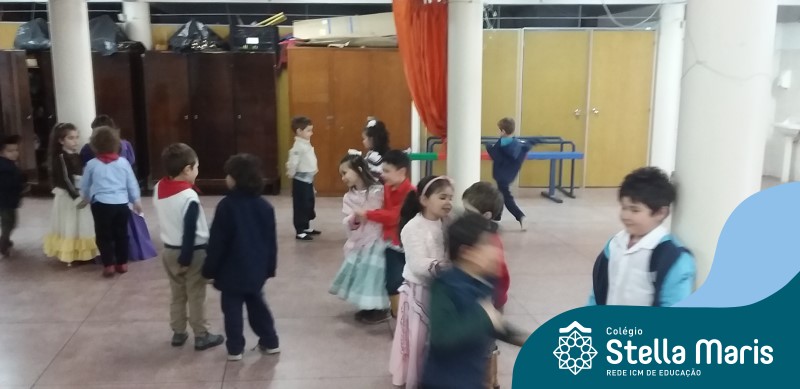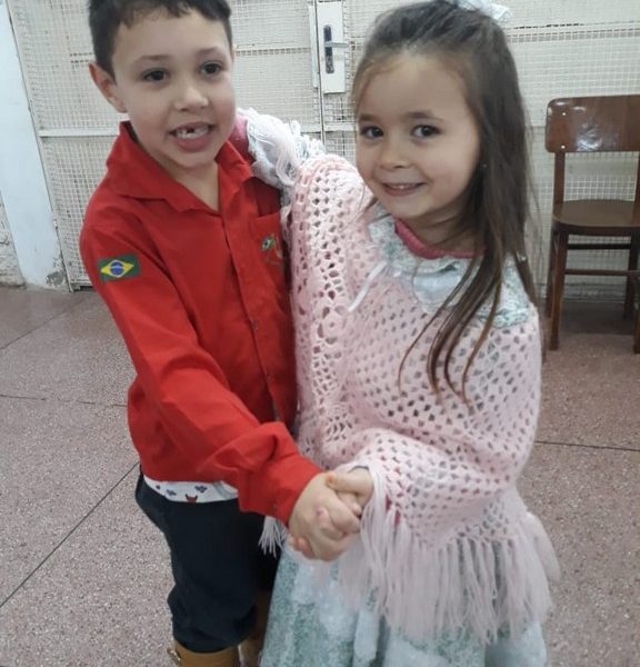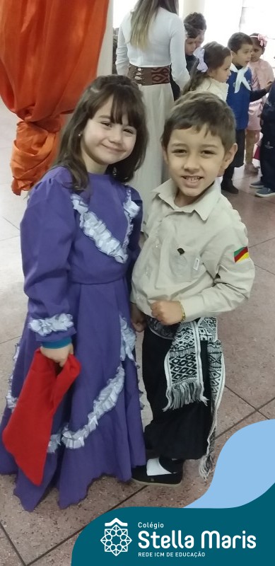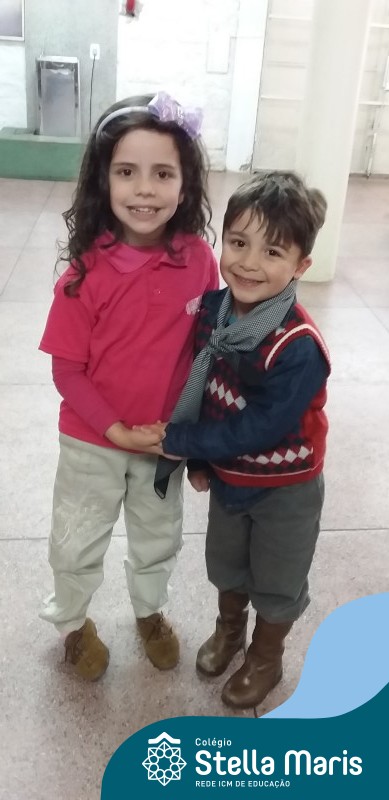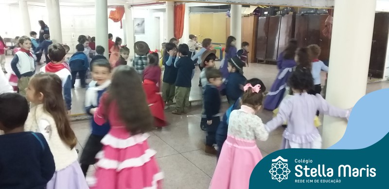 Em homenagem às tradições gauchas, as turmas do Pré 1A e B juntamente com o Maternal, participaram do bailinho gaúcho. Foi um resgate as danças e músicas típicas do nosso povo. Estava muito divertido! Arrasaram!!!