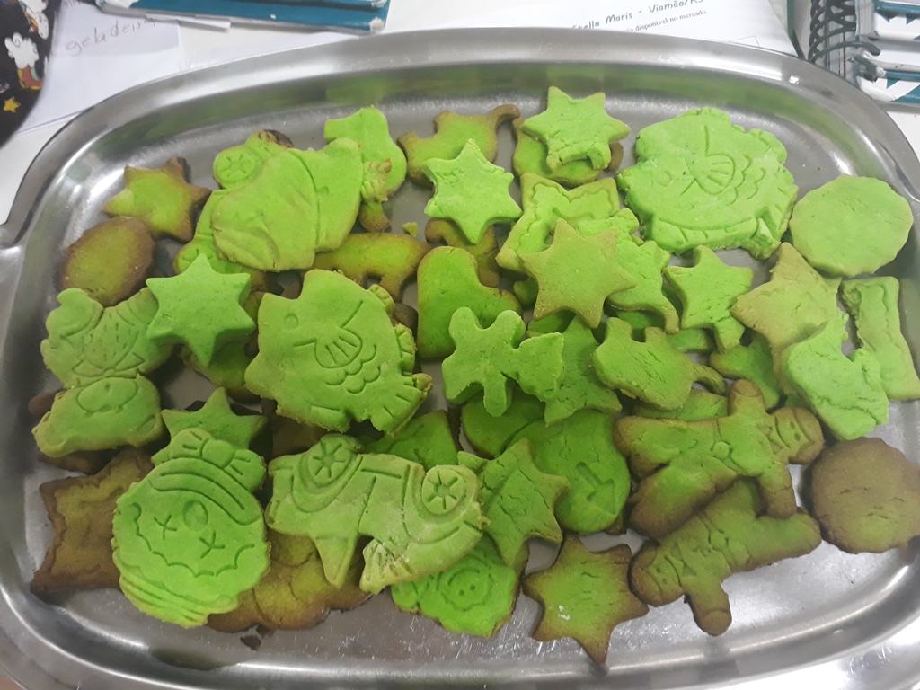 Para encerrar a semana da Pátria, a turma de Atividade Extracurricular do Colégio Stella Maris preparou, durante a Oficina de Culinária, deliciosos biscoitos. Cada criança modelou seu biscoito, utilizando as cores da bandeira do Brasil!