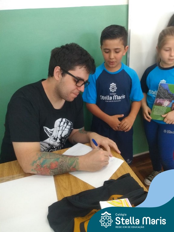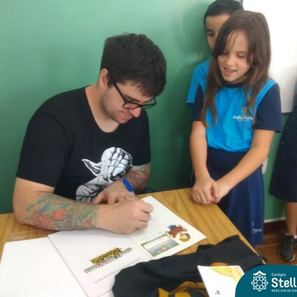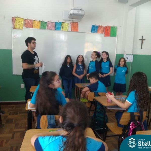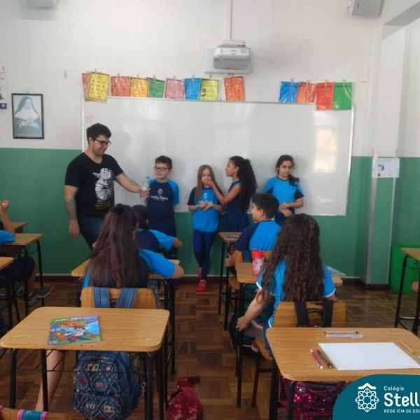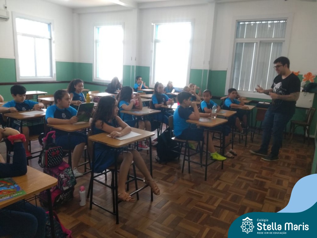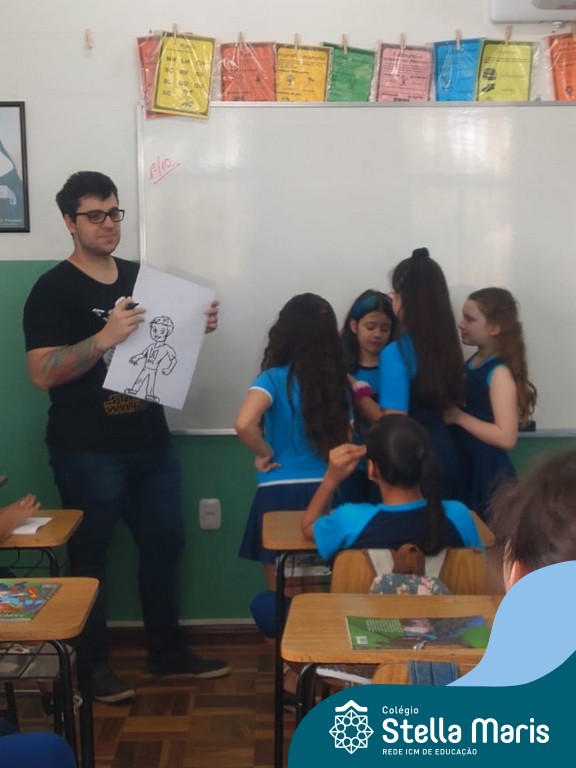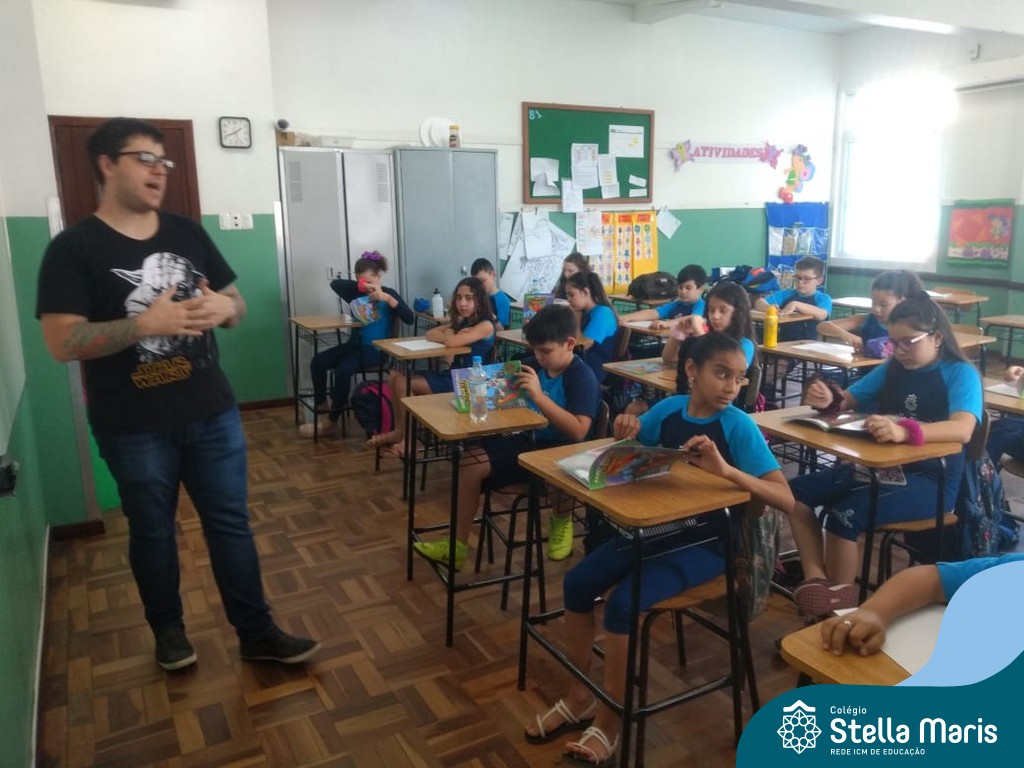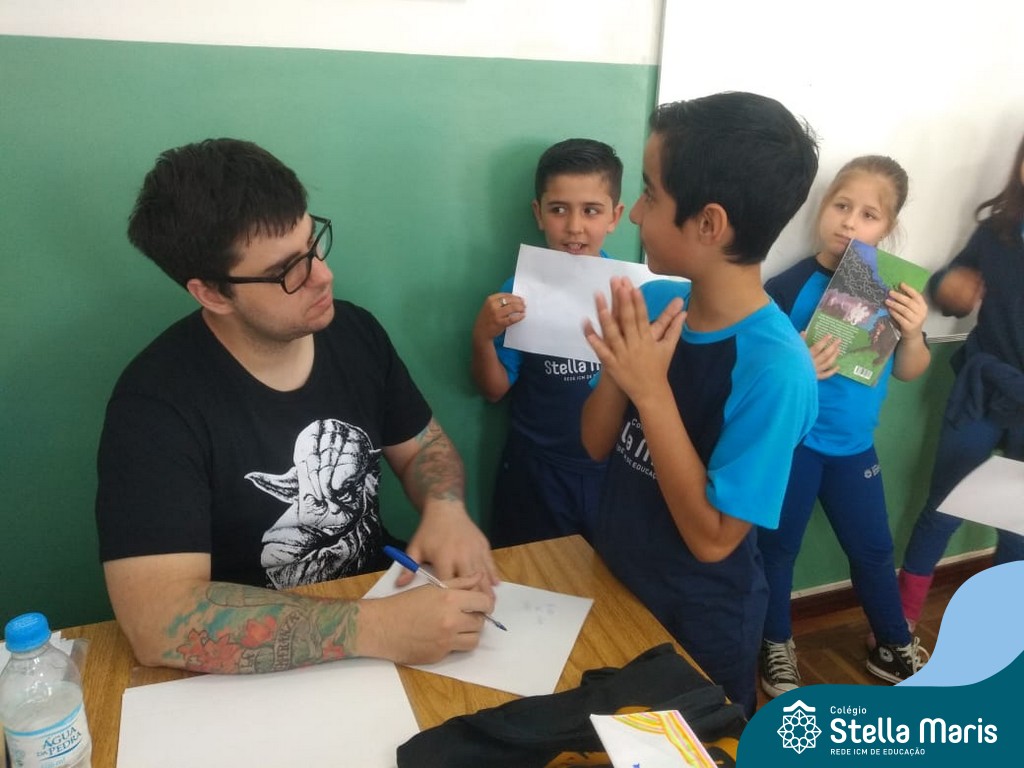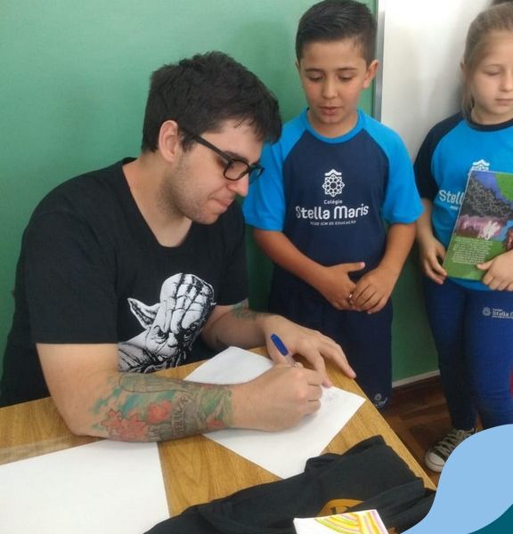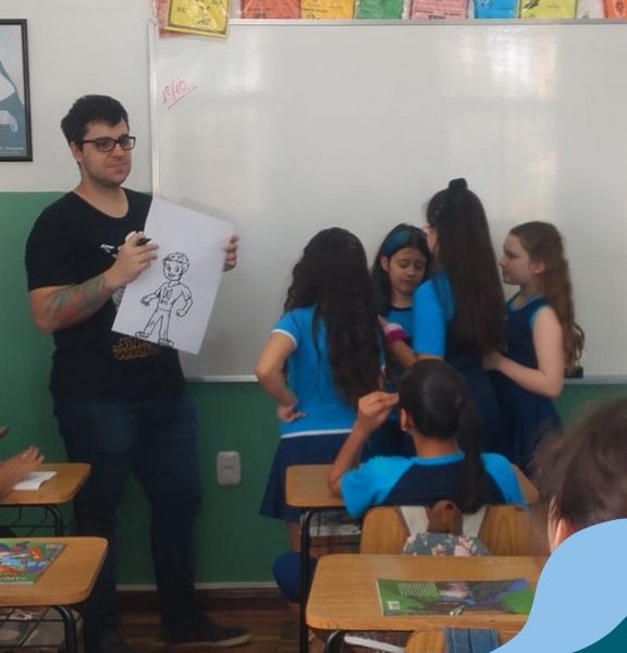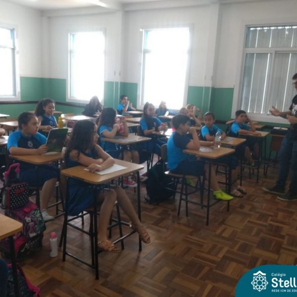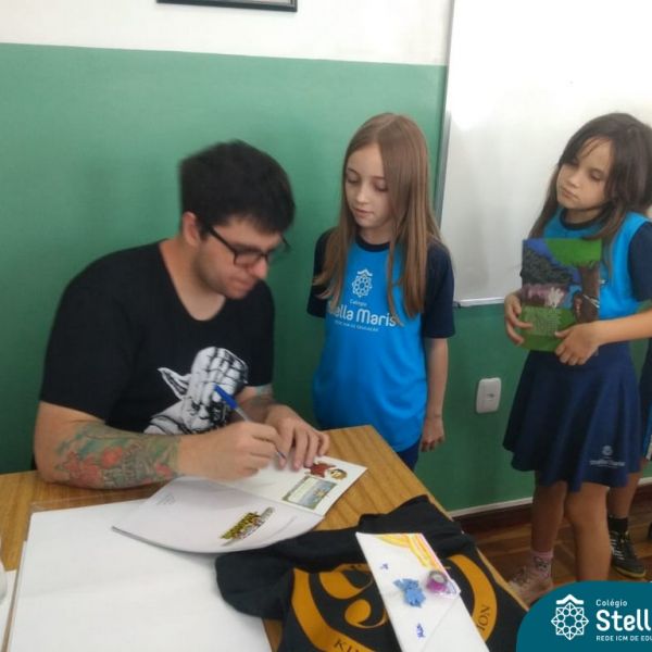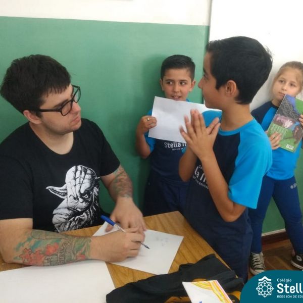 O autor Carlos Pessoa de Brum esteve no Colégio para trabalhar sobre seu livro com as turmas de 4° anos. Através da história os alunos estão aprofundando seus conhecimentos sobre o Estado, bem como potencializando o projeto que trabalha a colonização do RS.