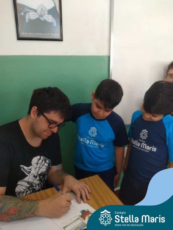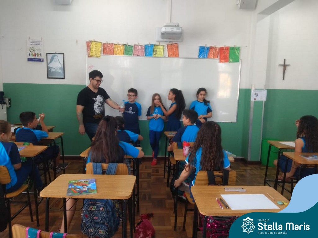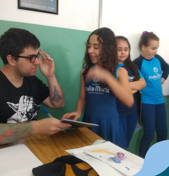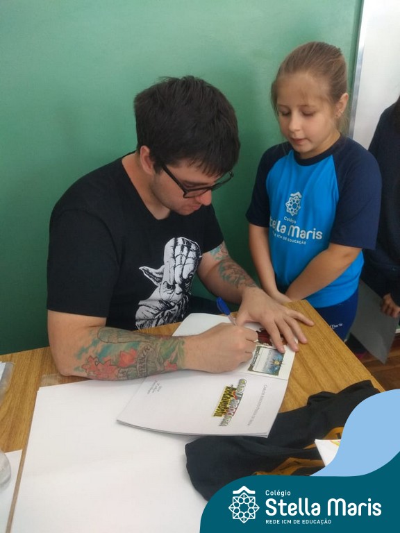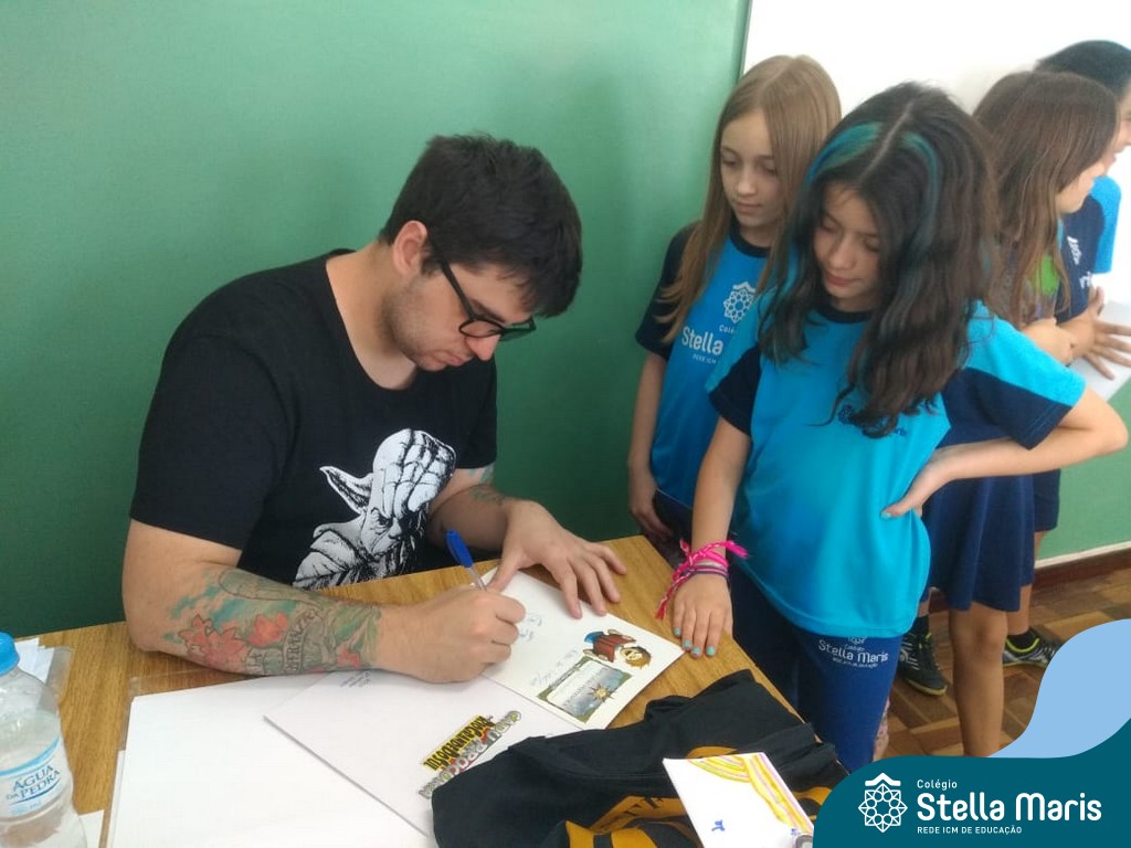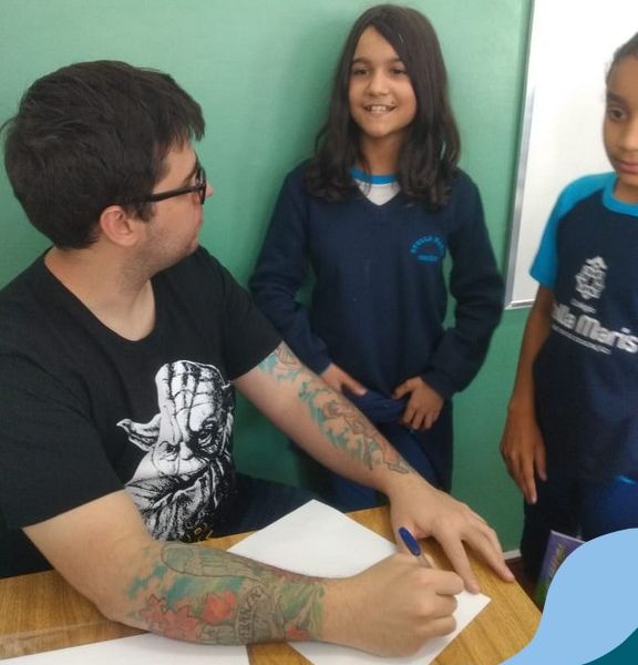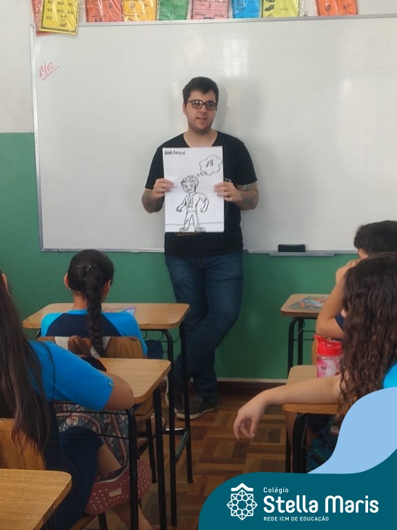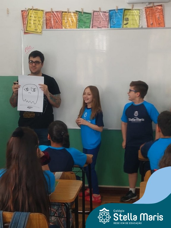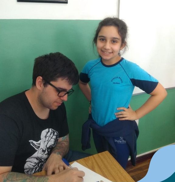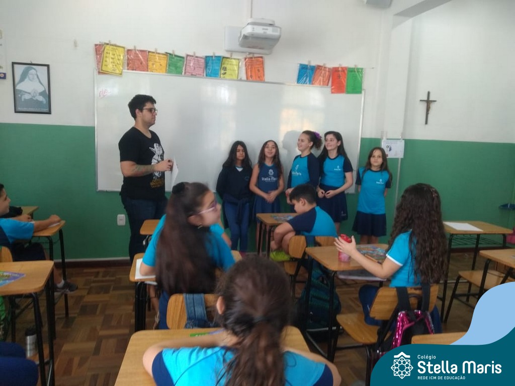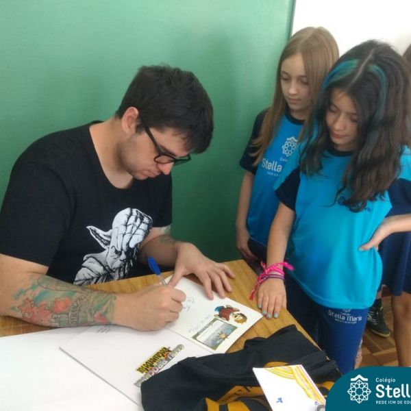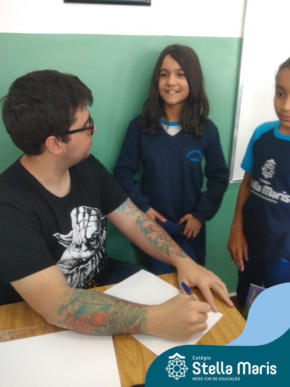 O autor Carlos Pessoa de Brum esteve no Colégio para trabalhar sobre seu livro com as turmas de 4° anos. Através da história os alunos estão aprofundando seus conhecimentos sobre o Estado, bem como potencializando o projeto que trabalha a colonização do RS.