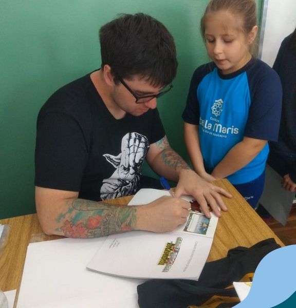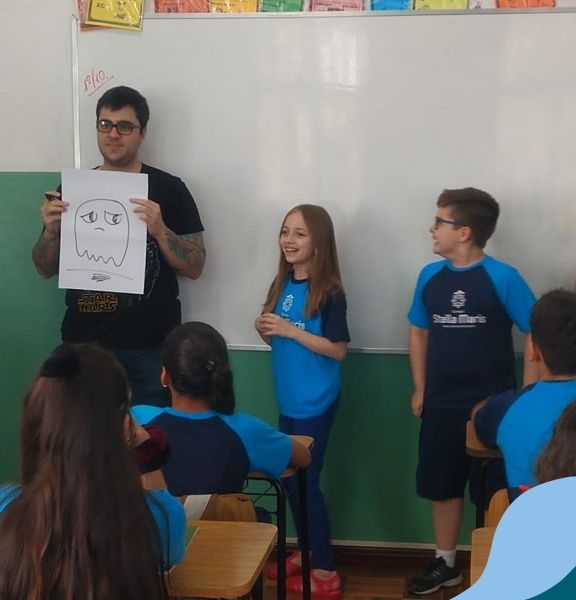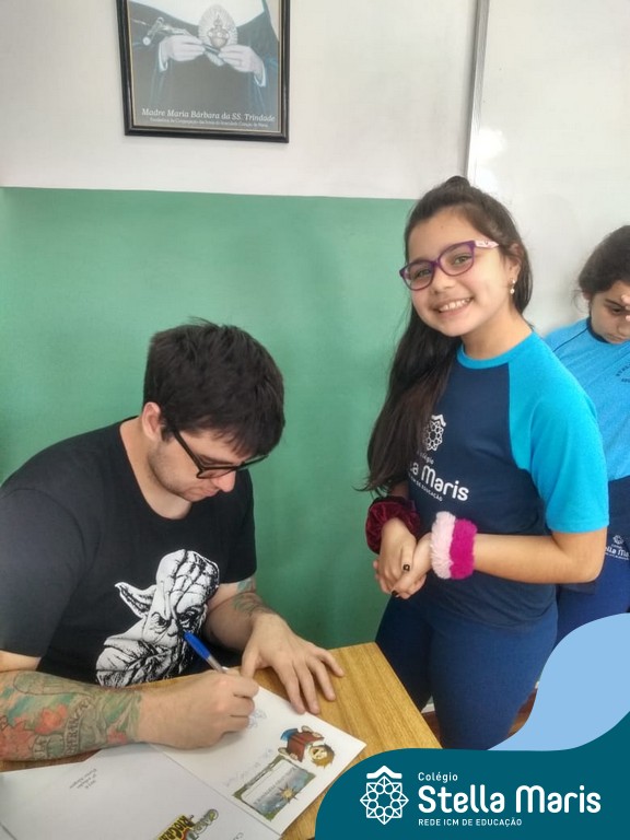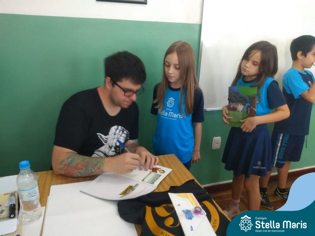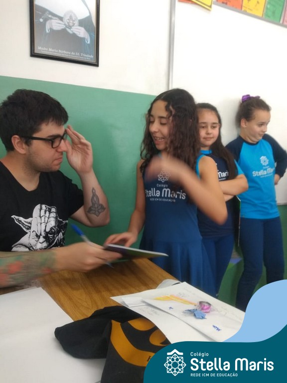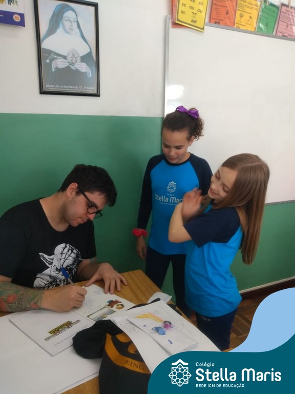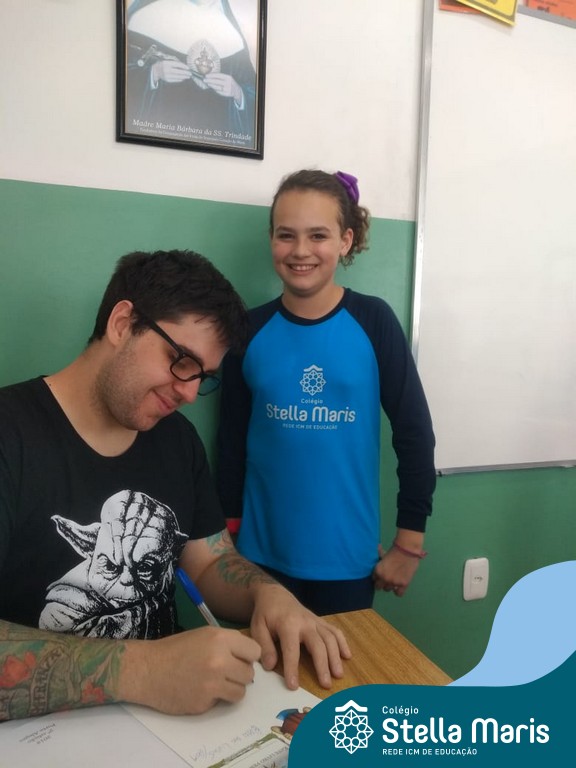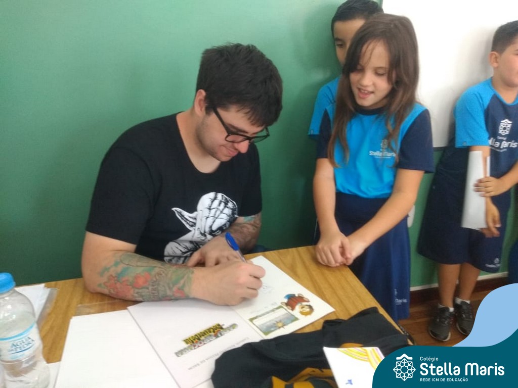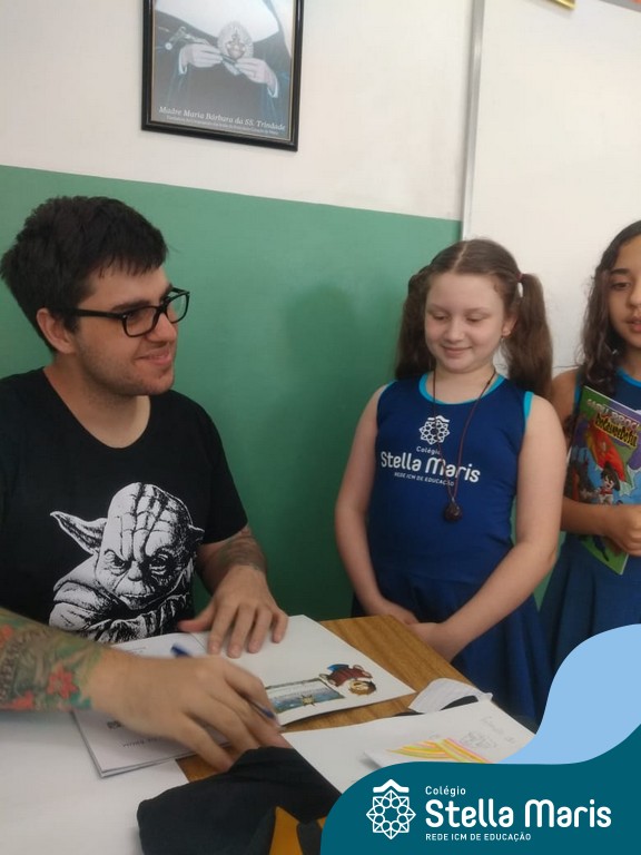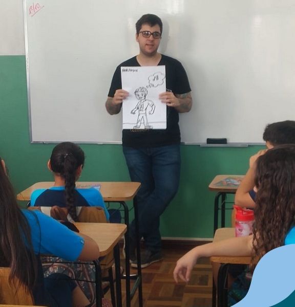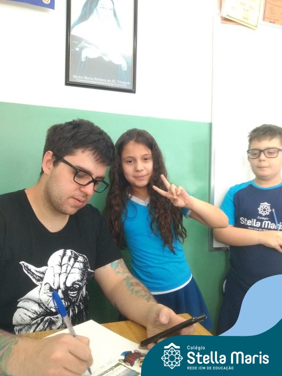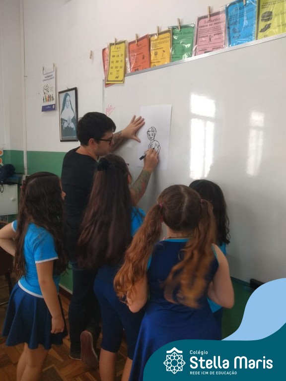 O autor Carlos Pessoa de Brum esteve no Colégio para trabalhar sobre seu livro com as turmas de 4° anos. Através da história os alunos estão aprofundando seus conhecimentos sobre o Estado, bem como potencializando o projeto que trabalha a colonização do RS.