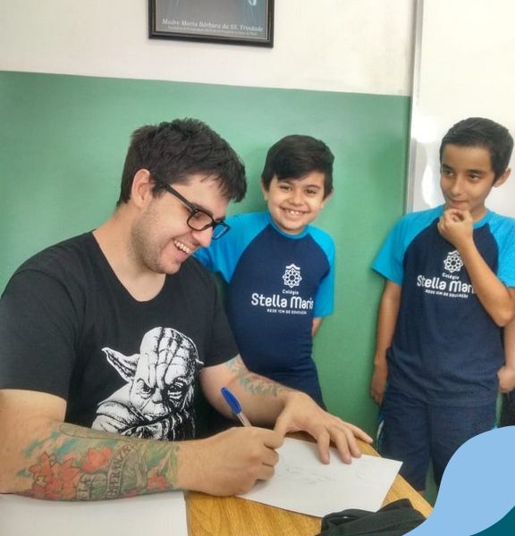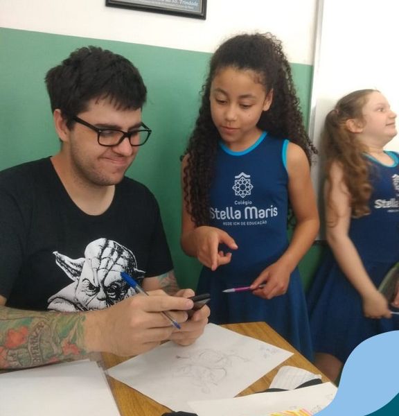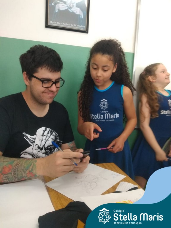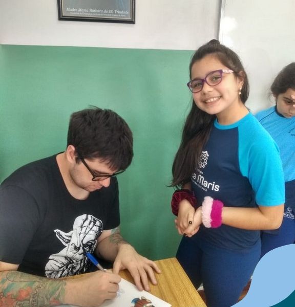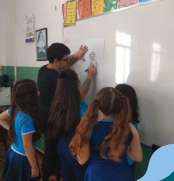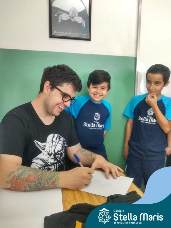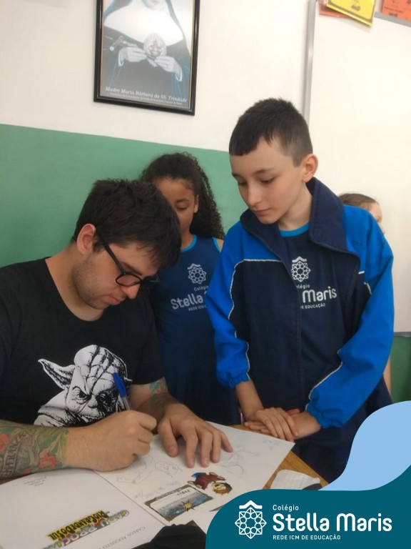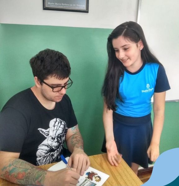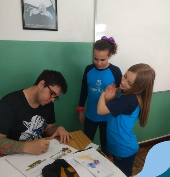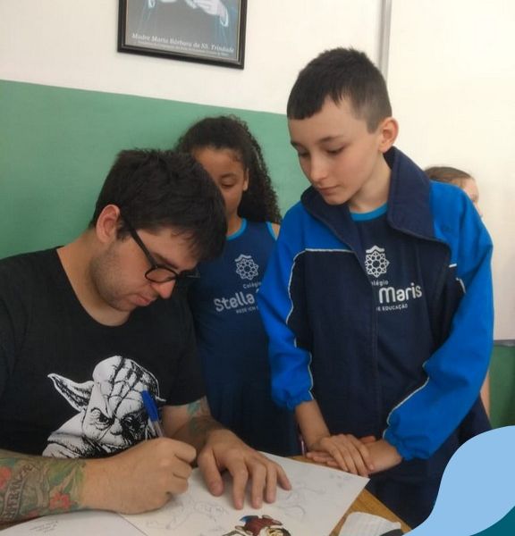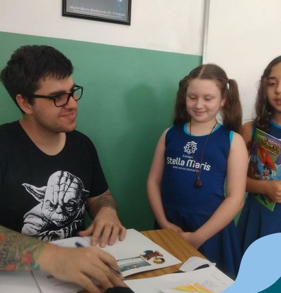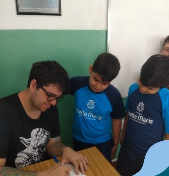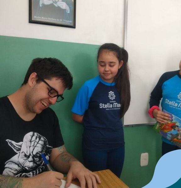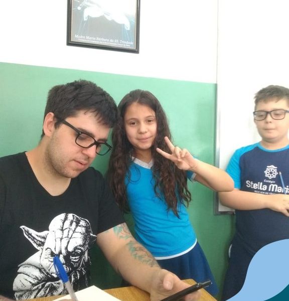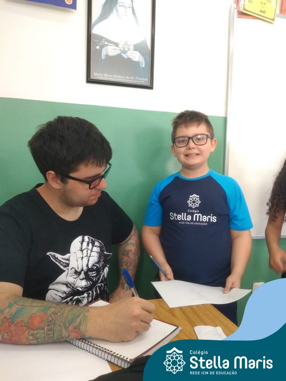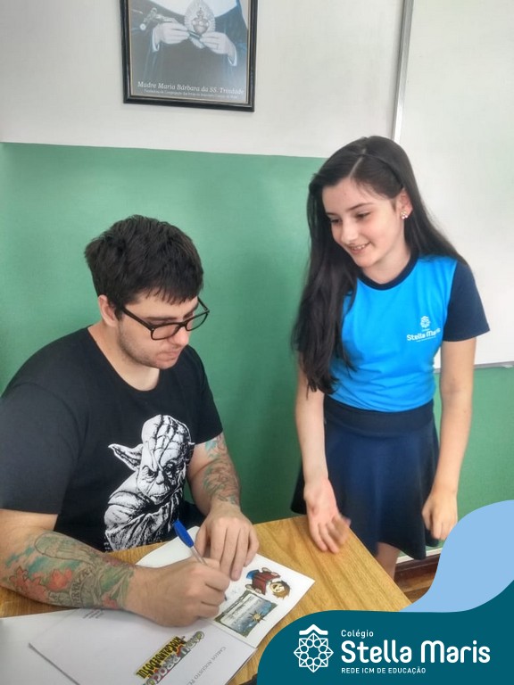 O autor Carlos Pessoa de Brum esteve no Colégio para trabalhar sobre seu livro com as turmas de 4° anos. Através da história os alunos estão aprofundando seus conhecimentos sobre o Estado, bem como potencializando o projeto que trabalha a colonização do RS.