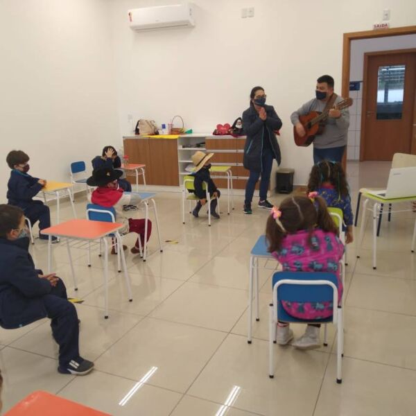 A turminha de Pré 1 se divertiu na tarde de São João com muita música e brincadeiras.