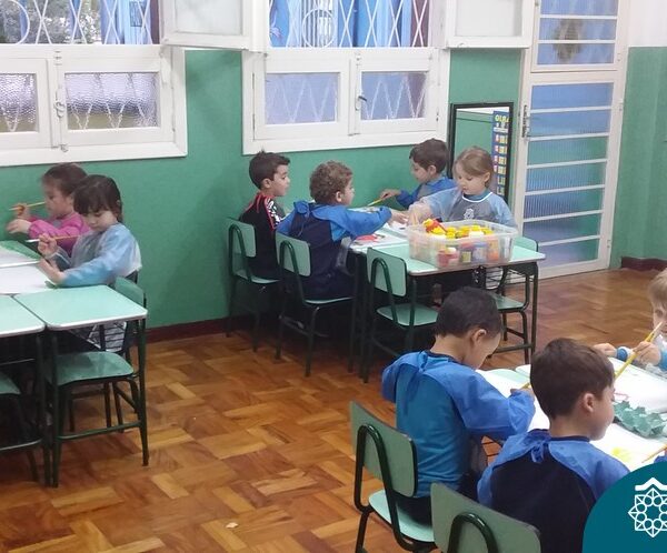 Turma do Pré 1A realiza uma atividade de pintura livre