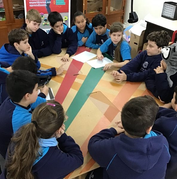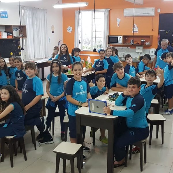 Alunos da turma 44, trabalhando em seus projetos na sala Maker.