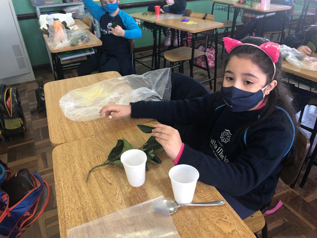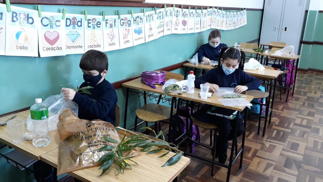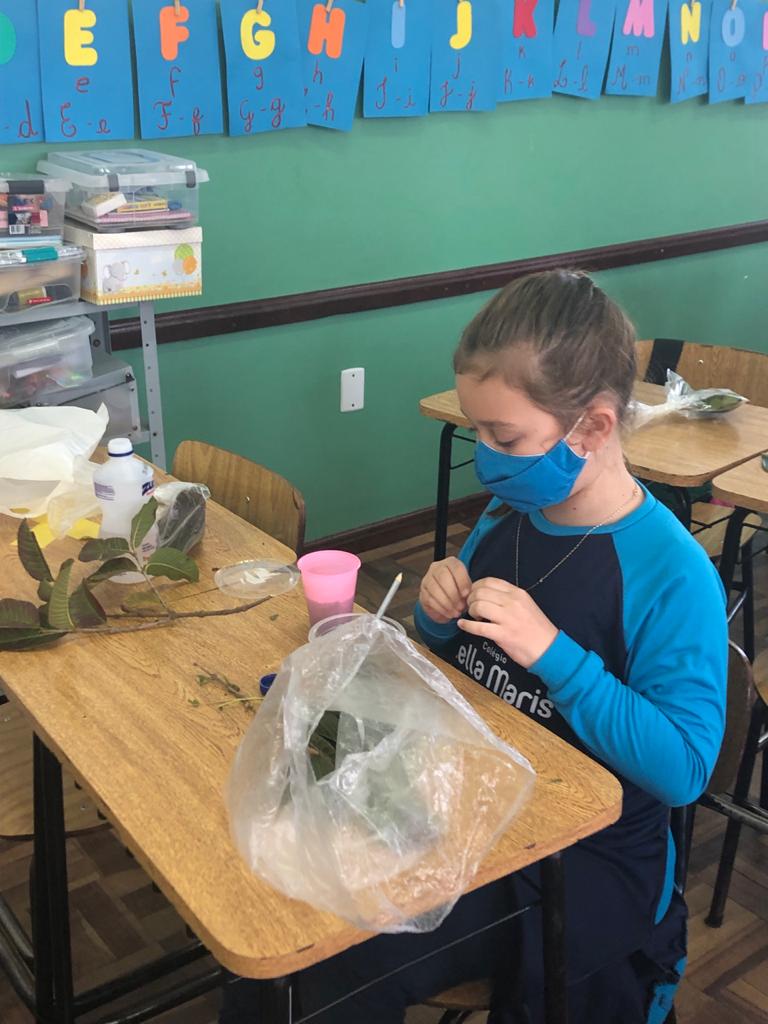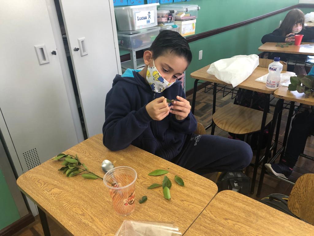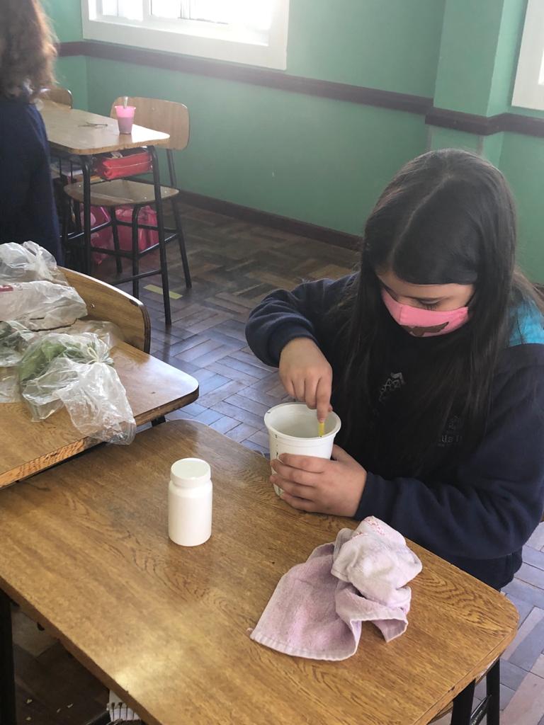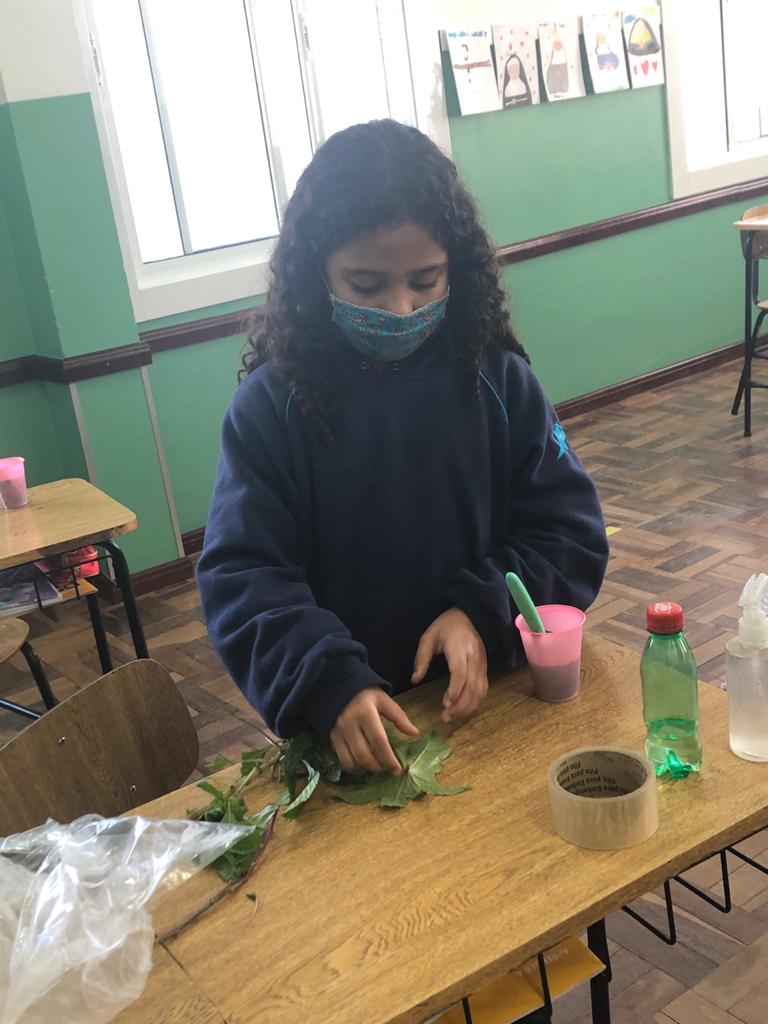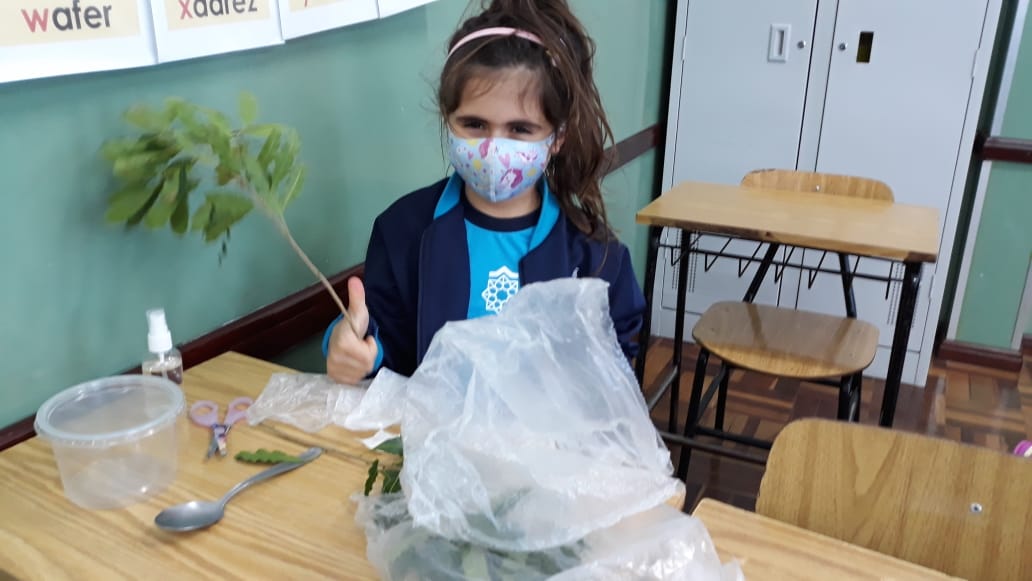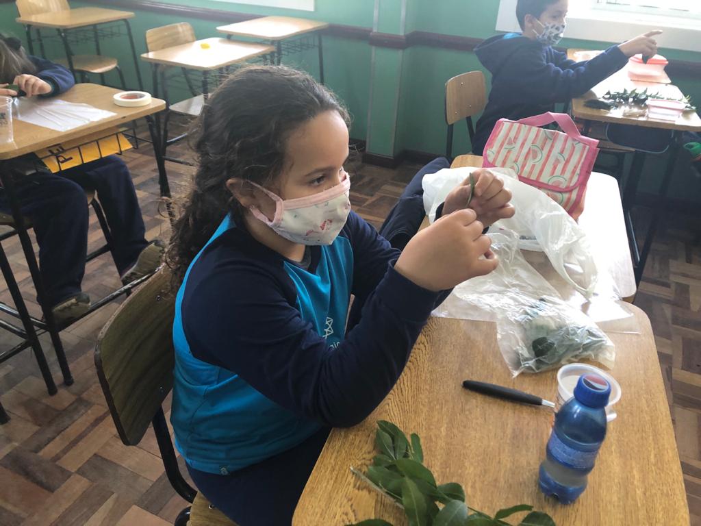 Os estudantes das turmas 22 e 23 também participaram da aula de Iniciação Científica Bimodal com as professoras Carla Ruschel, Cristina e Vacilane. Eles realizaram as duas experiências para compreender a respiração das plantas e sua coloração, extraindo a seiva.