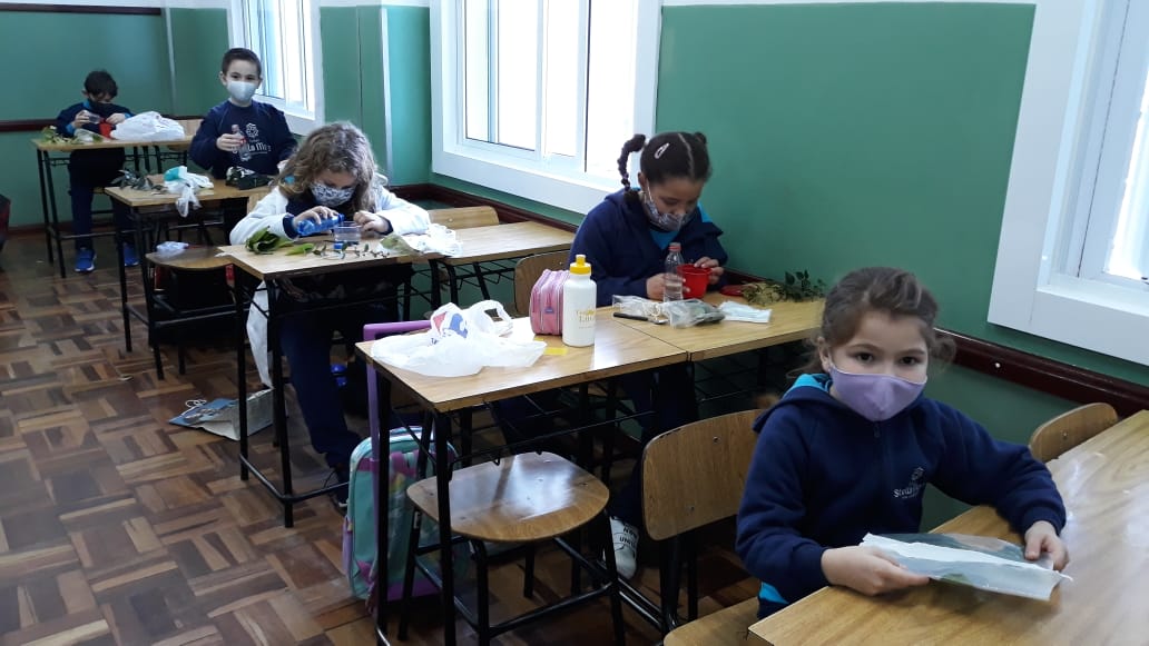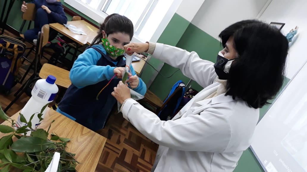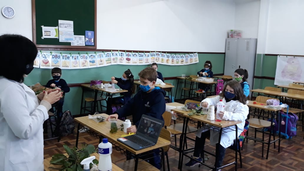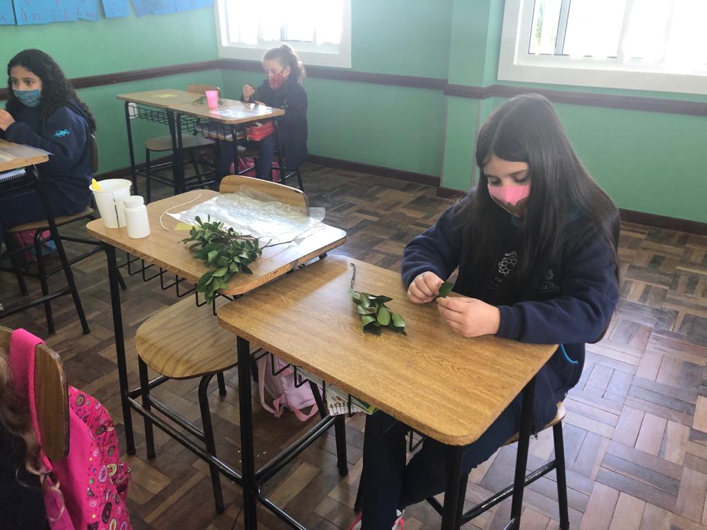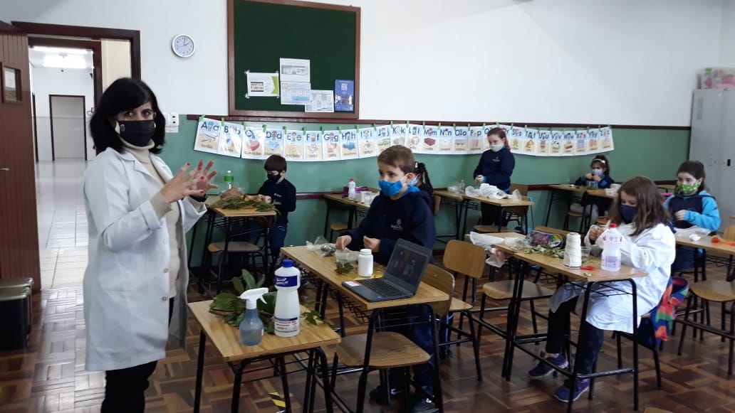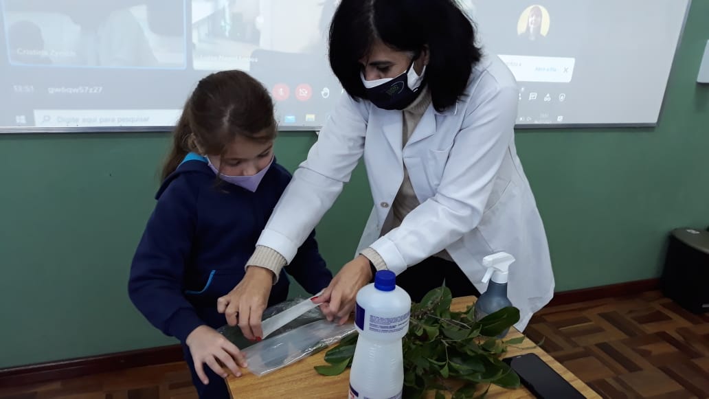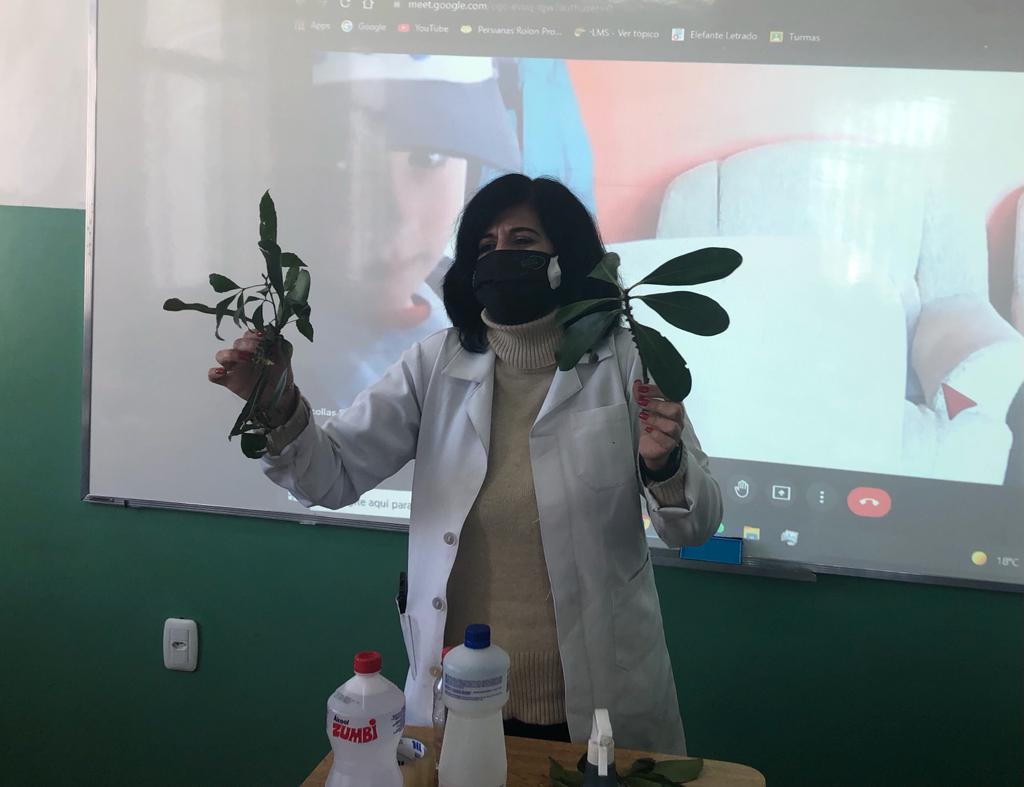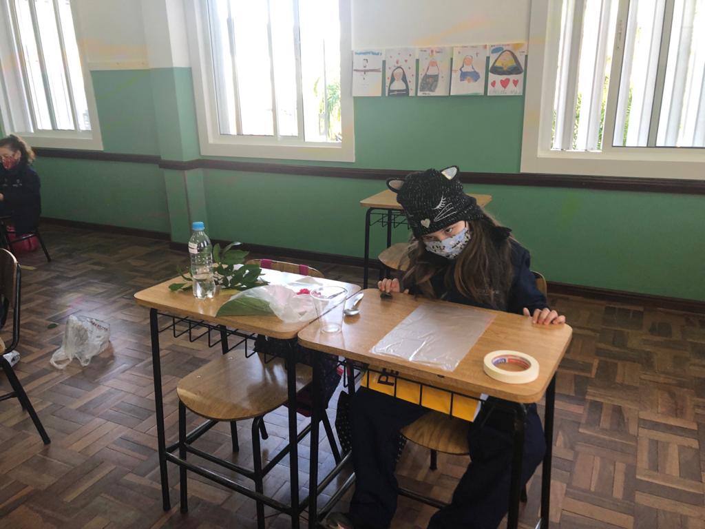 Os estudantes das turmas 22 e 23 também participaram da aula de Iniciação Científica Bimodal com as professoras Carla Ruschel, Cristina e Vacilane. Eles realizaram as duas experiências para compreender a respiração das plantas e sua coloração, extraindo a seiva.