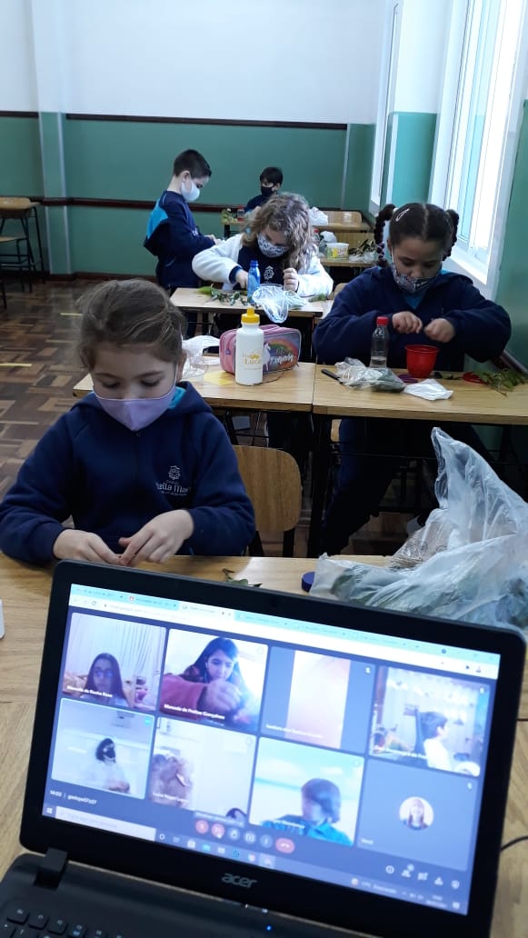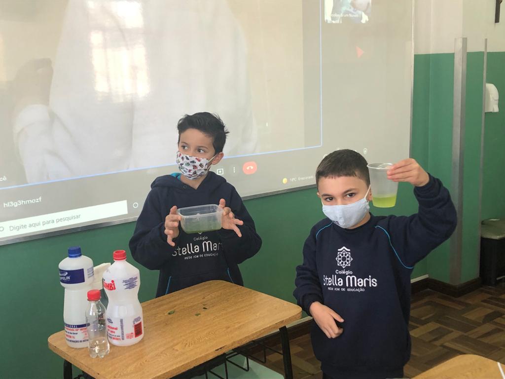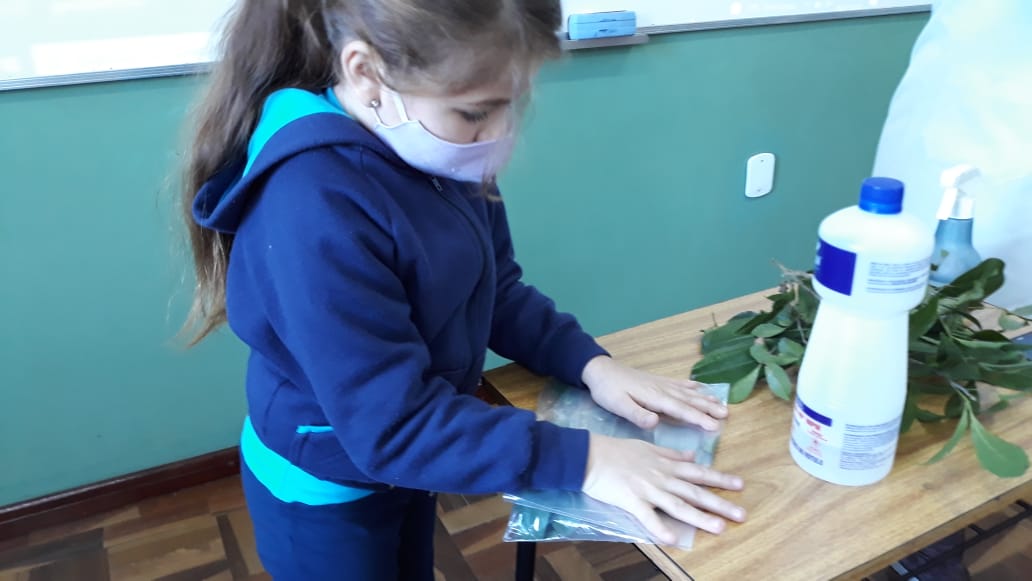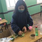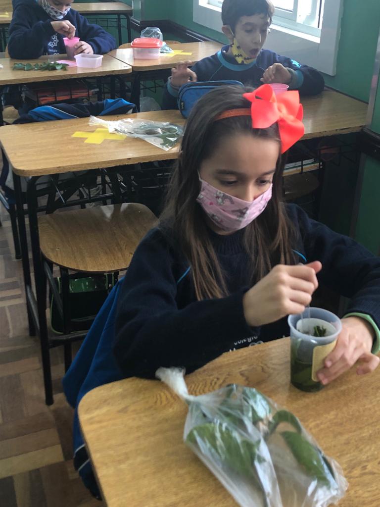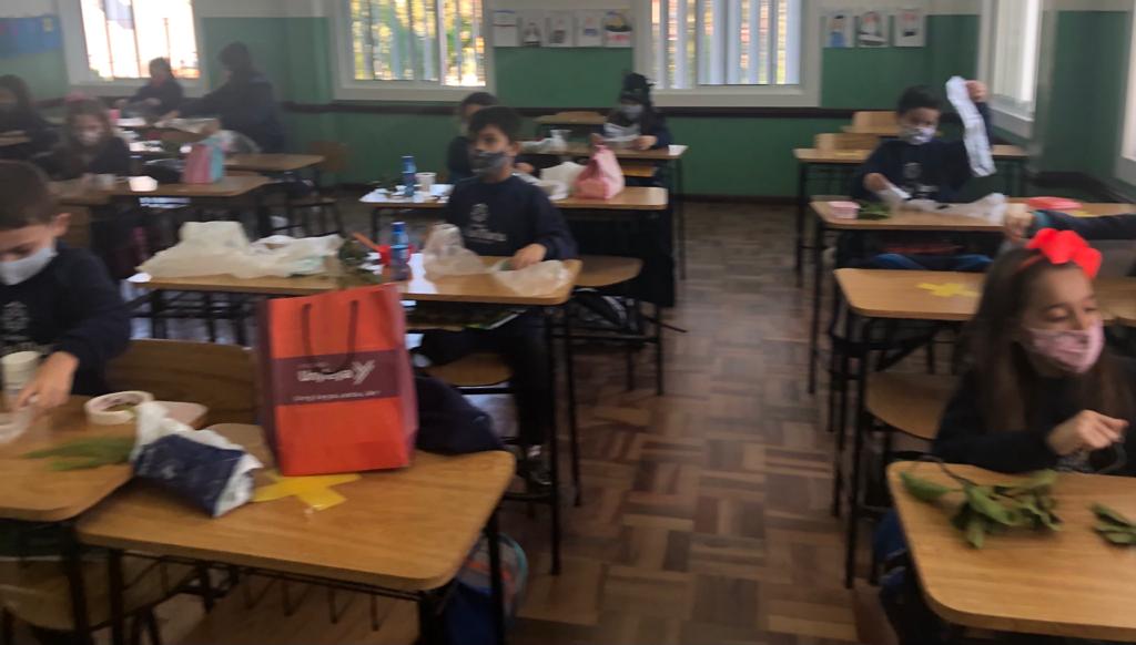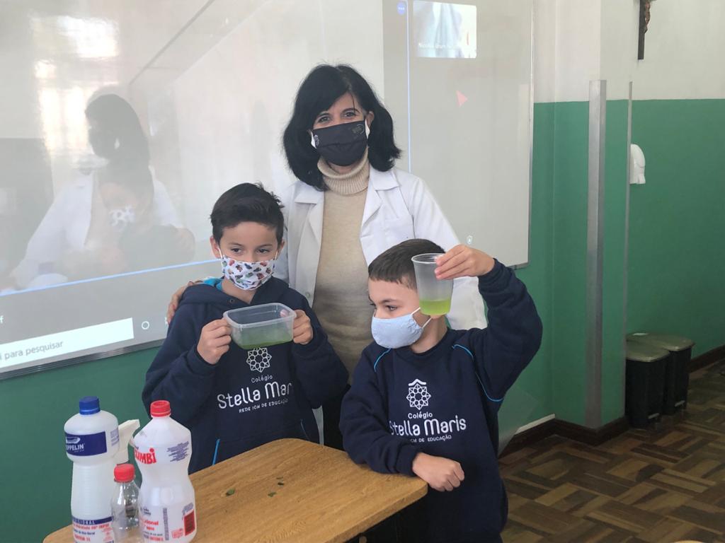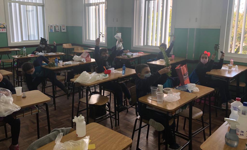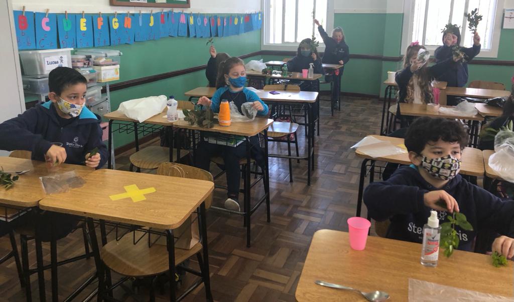 Os estudantes das turmas 22 e 23 também participaram da aula de Iniciação Científica Bimodal com as professoras Carla Ruschel, Cristina e Vacilane. Eles realizaram as duas experiências para compreender a respiração das plantas e sua coloração, extraindo a seiva.
