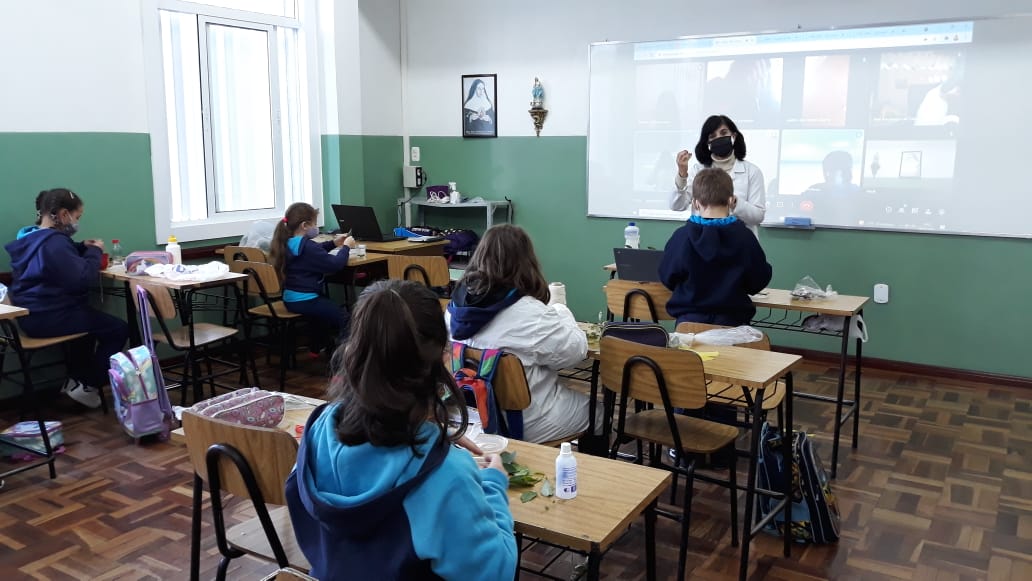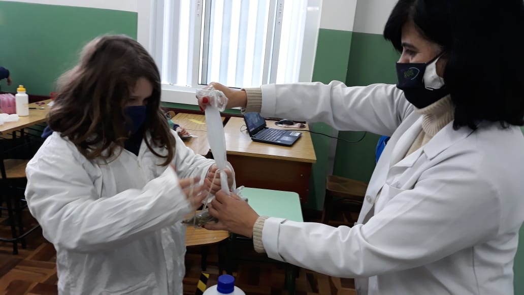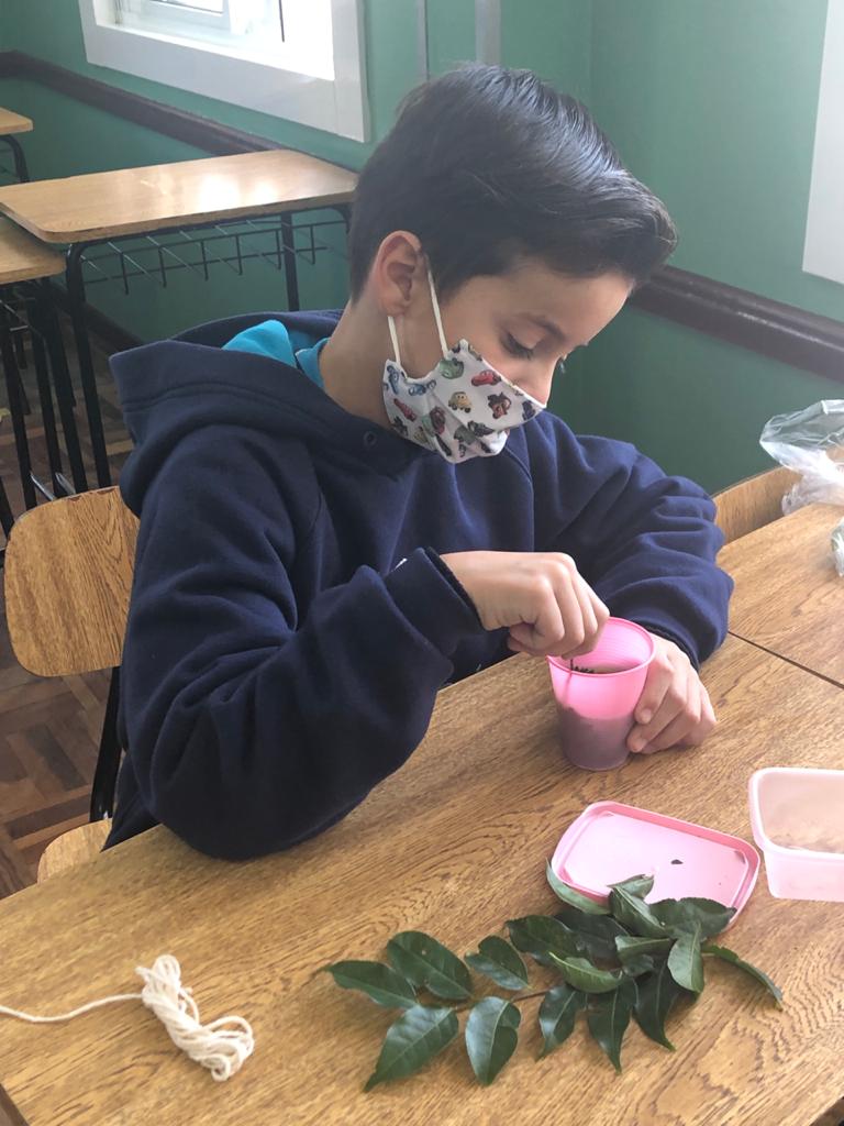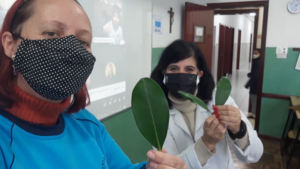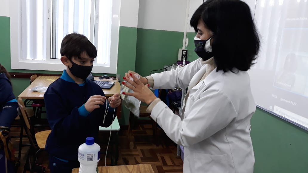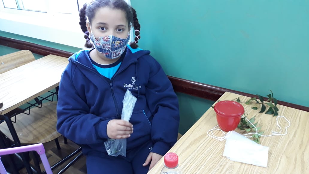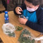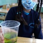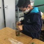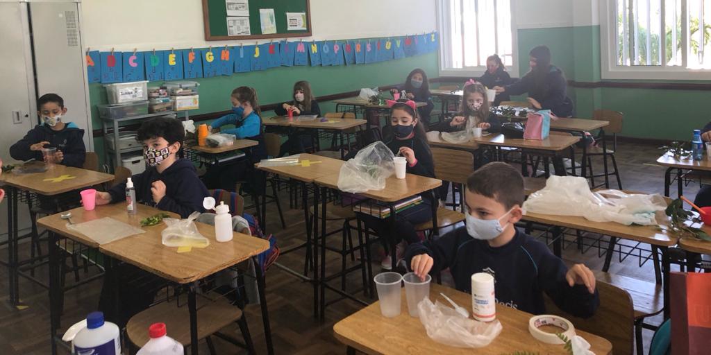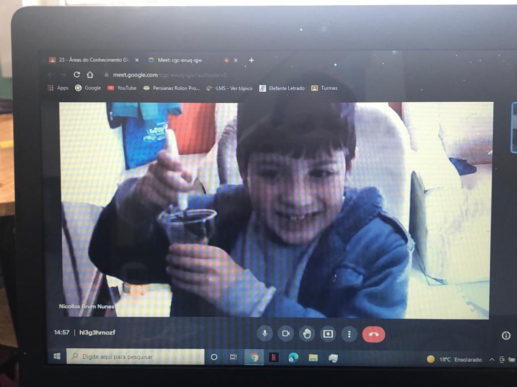 Os estudantes das turmas 22 e 23 também participaram da aula de Iniciação Científica Bimodal com as professoras Carla Ruschel, Cristina e Vacilane. Eles realizaram as duas experiências para compreender a respiração das plantas e sua coloração, extraindo a seiva.