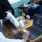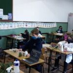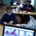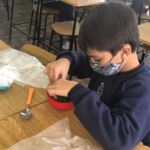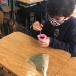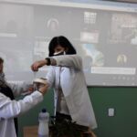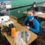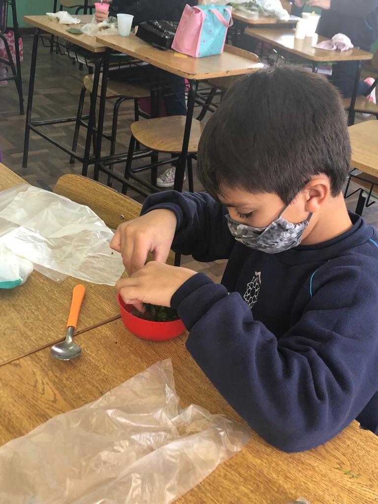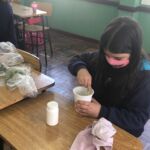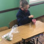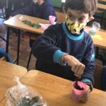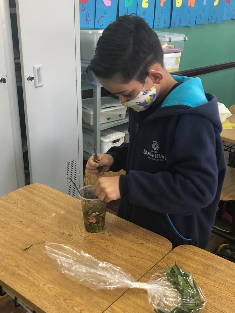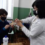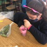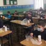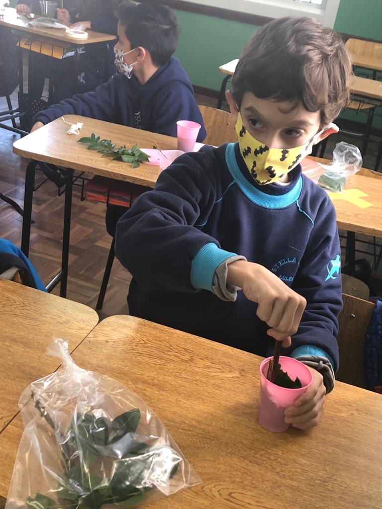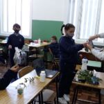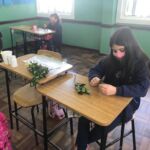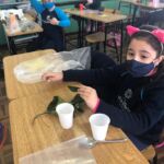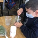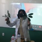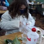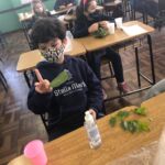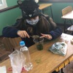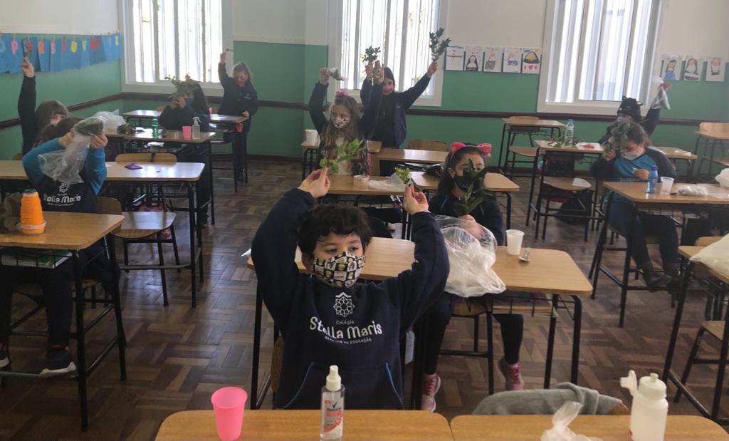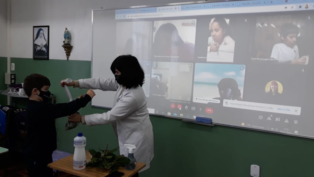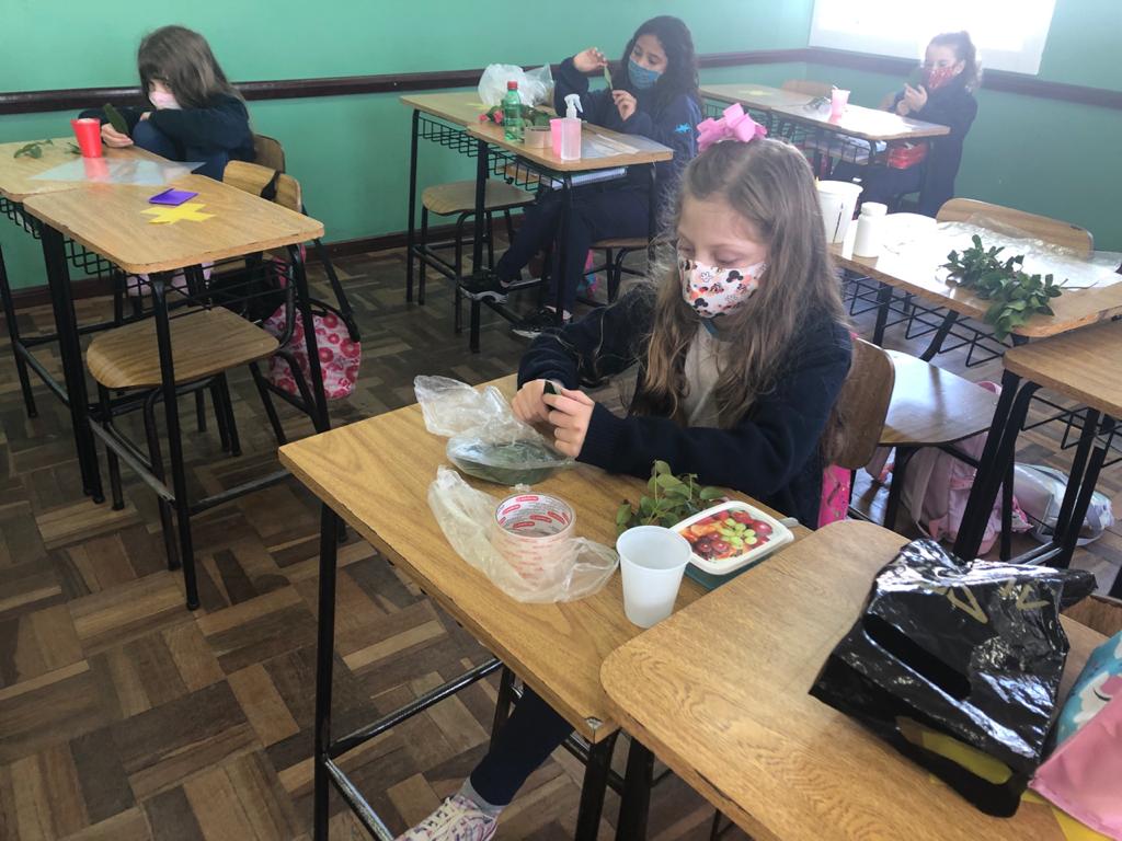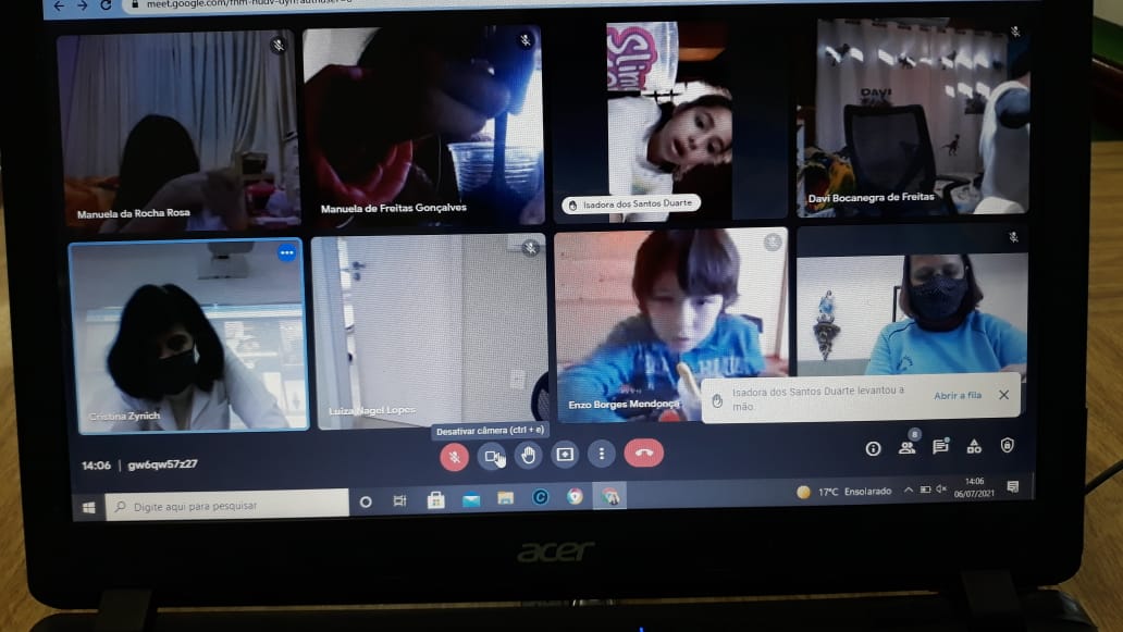 Os estudantes das turmas 22 e 23 também participaram da aula de Iniciação Científica Bimodal com as professoras Carla Ruschel, Cristina e Vacilane. Eles realizaram as duas experiências para compreender a respiração das plantas e sua coloração, extraindo a seiva.