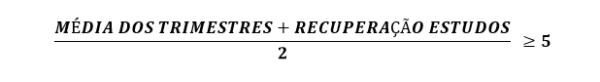 Para a obtenção do Resultado Final da Média dos Trimestres, utiliza-se a seguinte regra para aprovação: