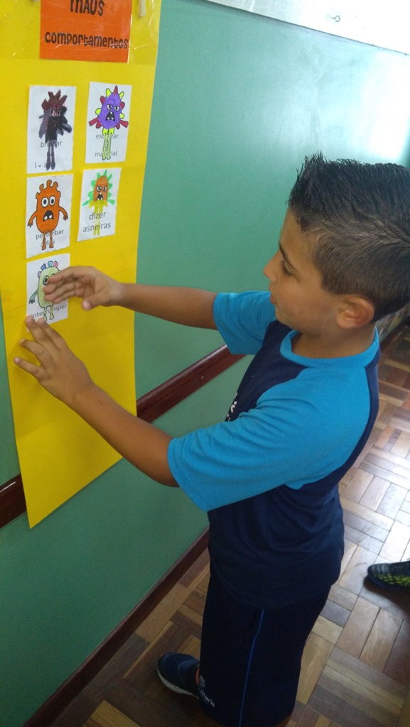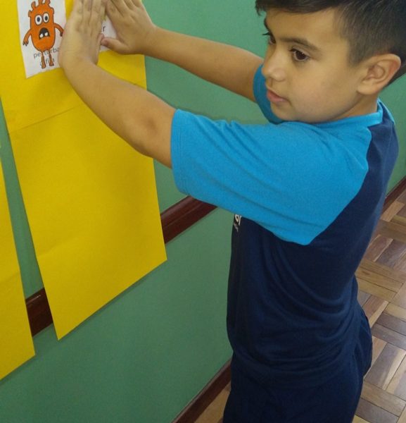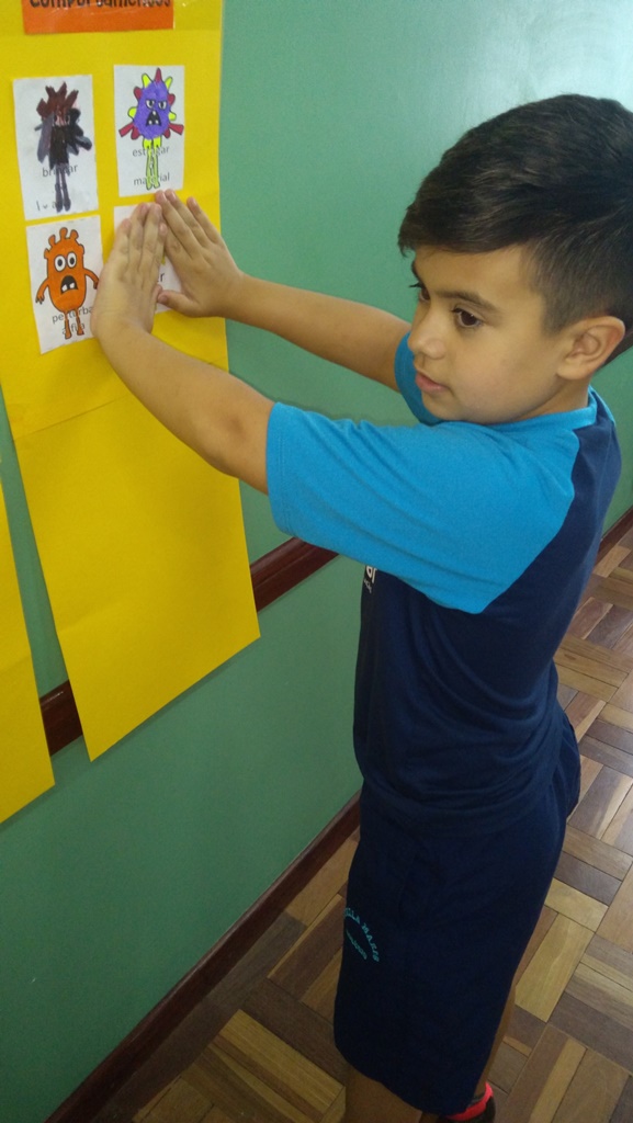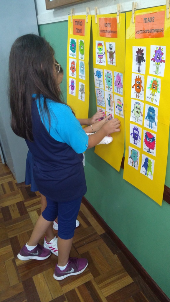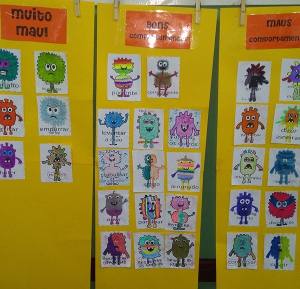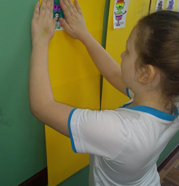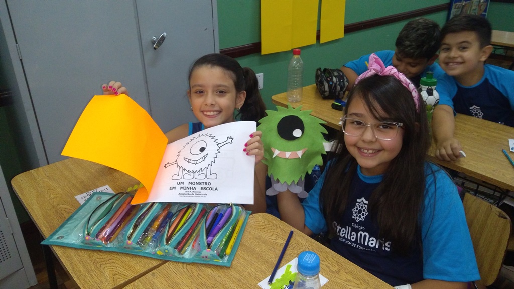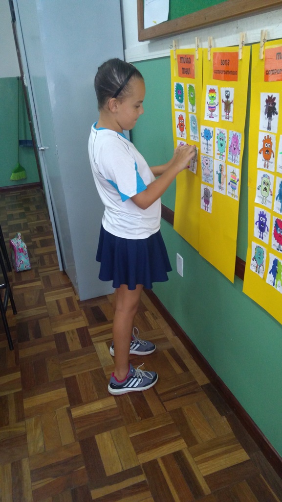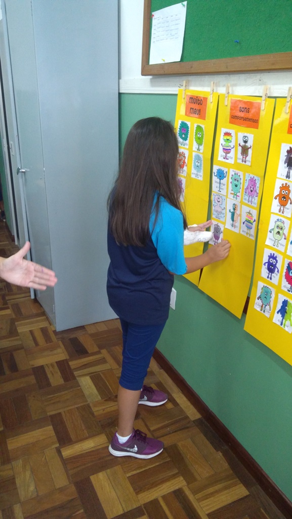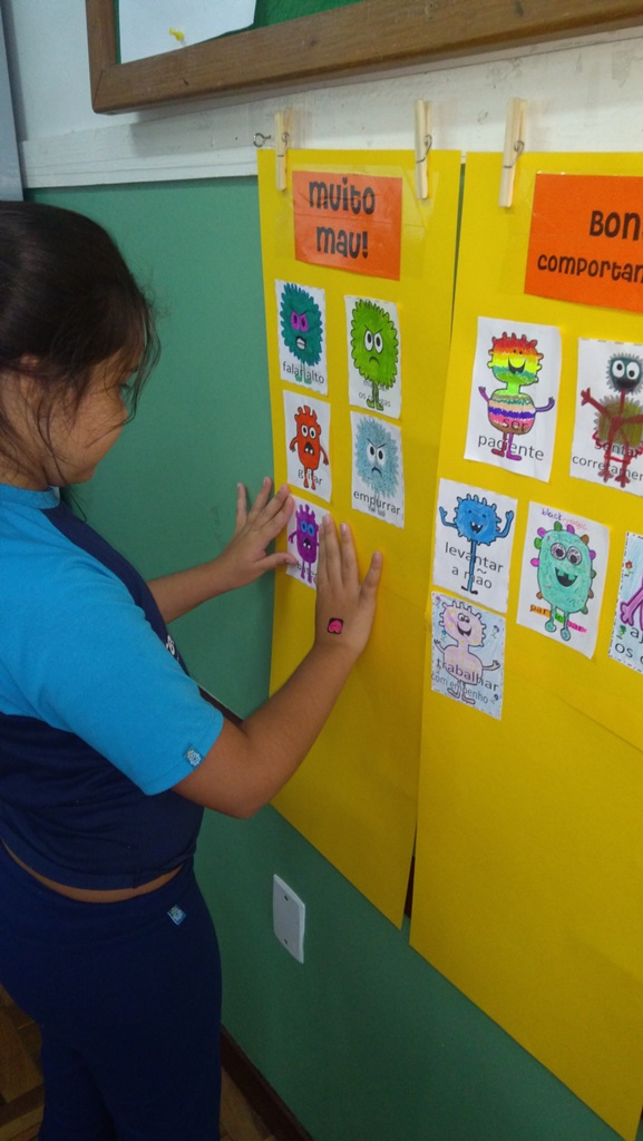 Foi utilizada a história “Um Monstro na escola” para construir as regras e combinados turma 43. Juntos os alunos elaboraram o que é necessário para se ter durante o ano letivo, como harmonia, respeito, solidariedade e aprendizados.