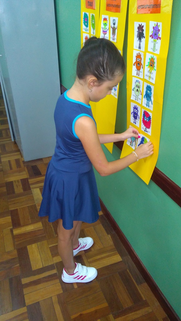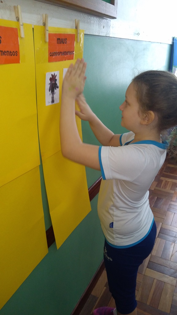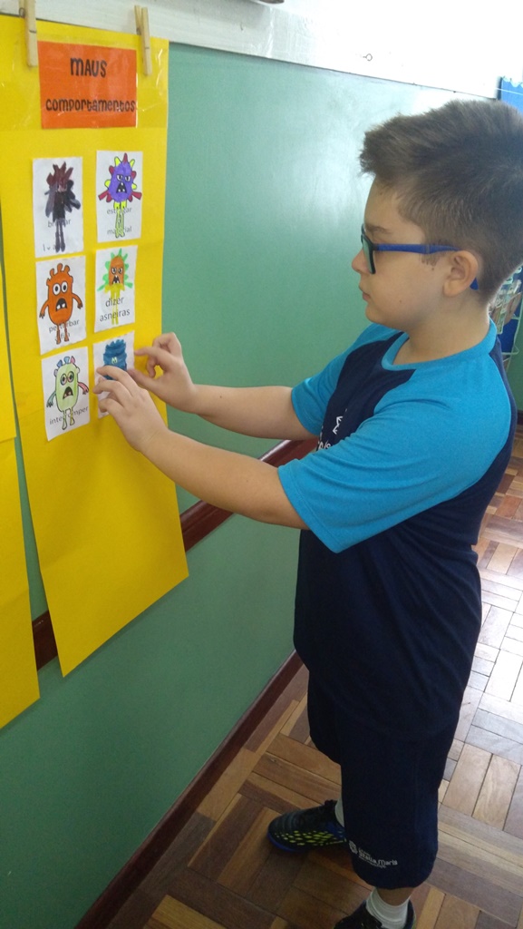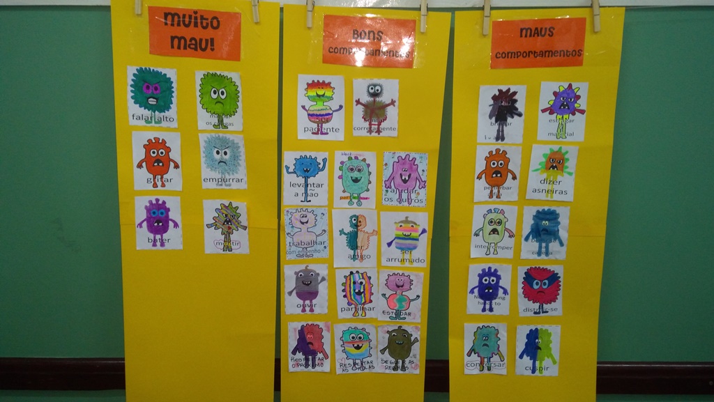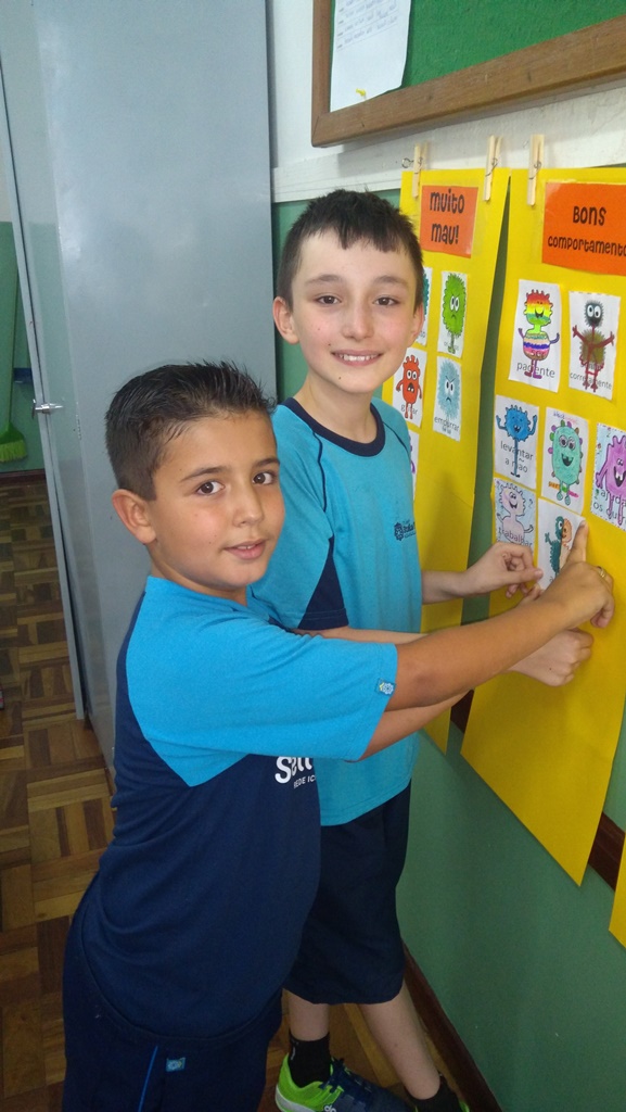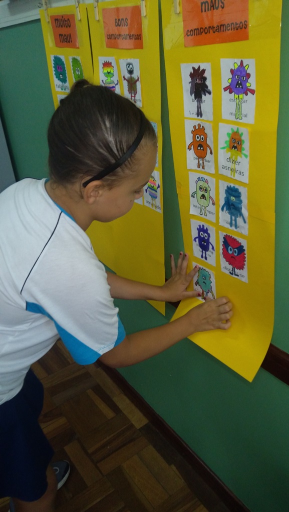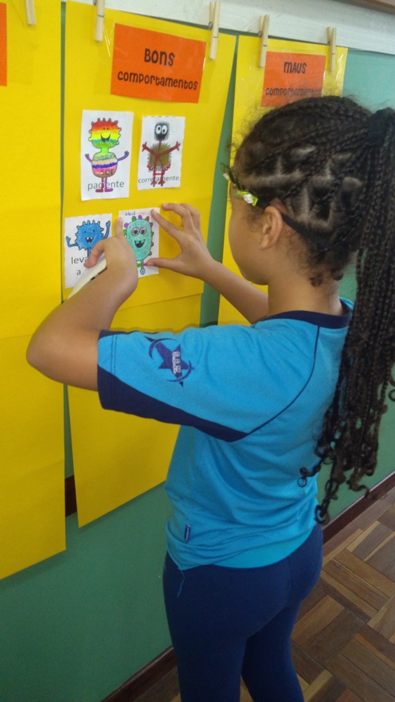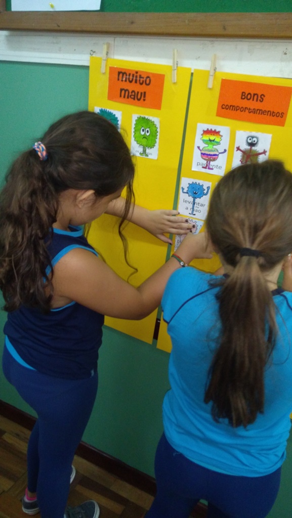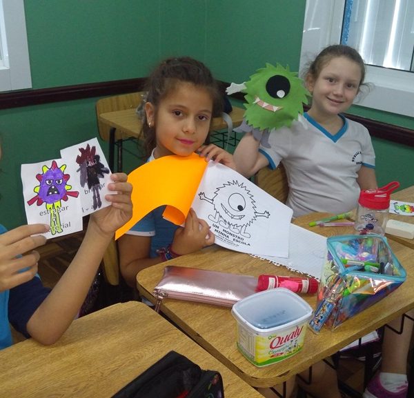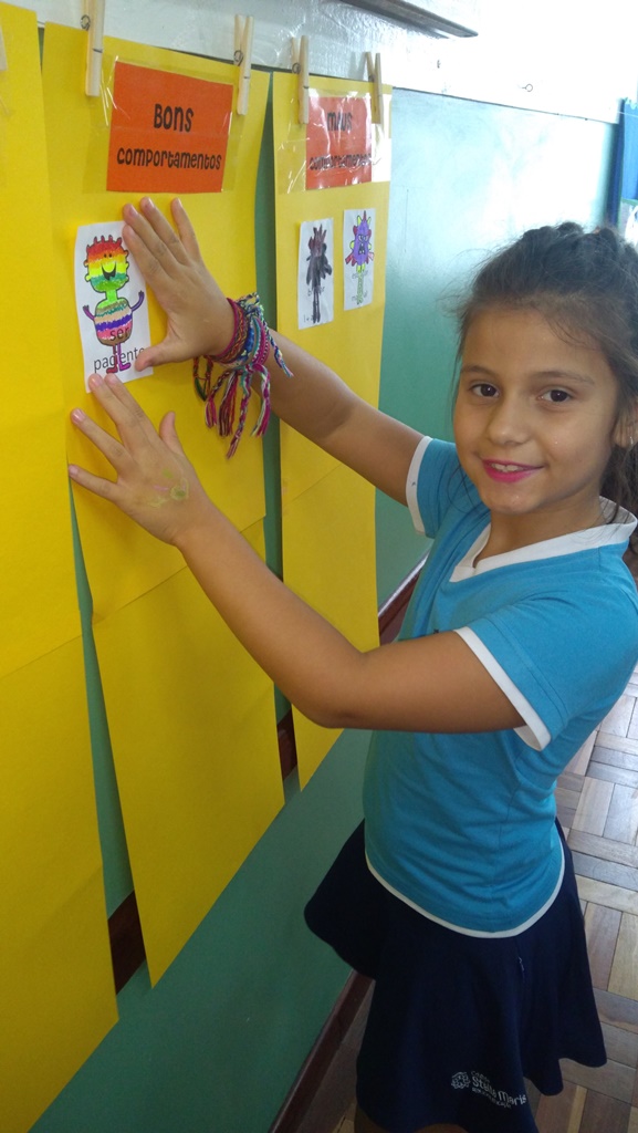 Foi utilizada a história “Um Monstro na escola” para construir as regras e combinados turma 43. Juntos os alunos elaboraram o que é necessário para se ter durante o ano letivo, como harmonia, respeito, solidariedade e aprendizados.