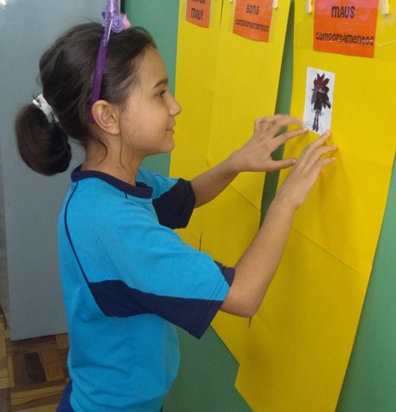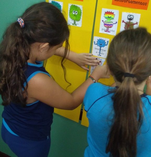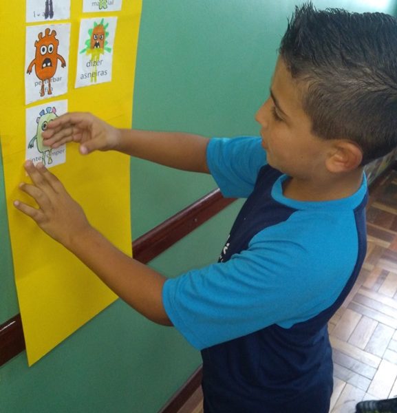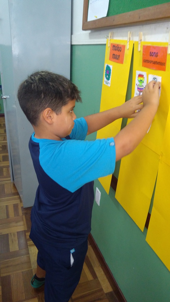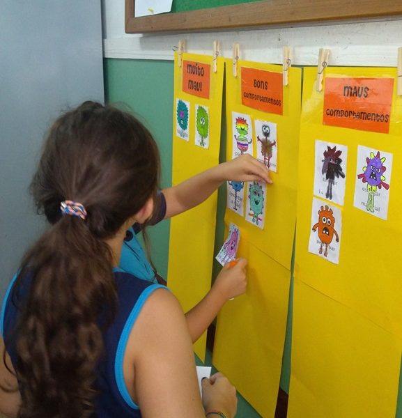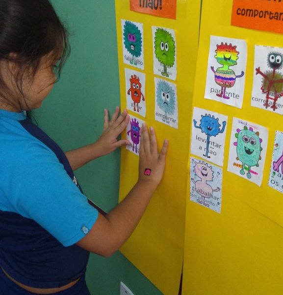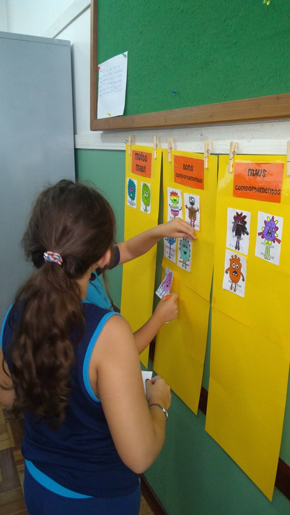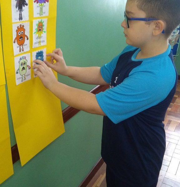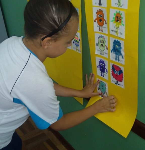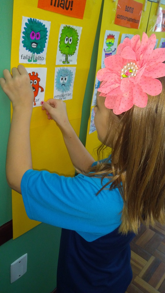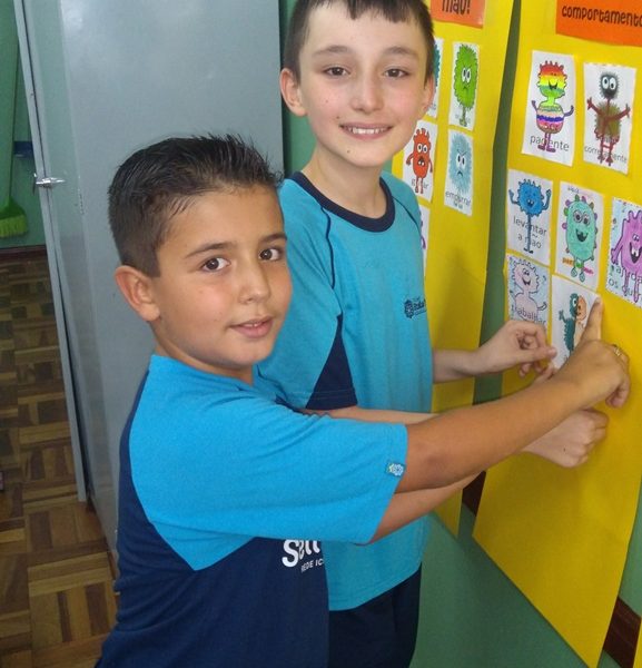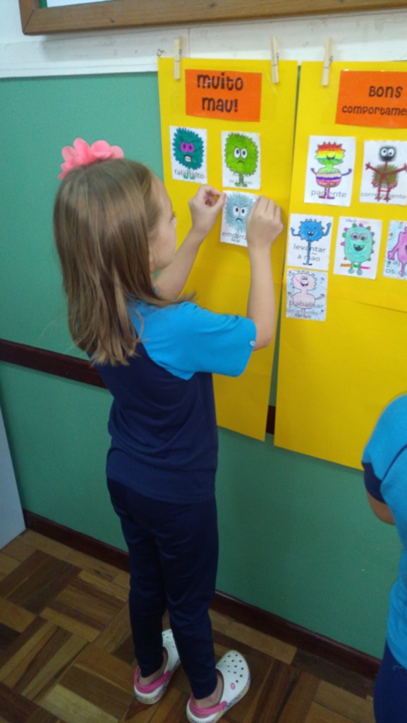 Foi utilizada a história “Um Monstro na escola” para construir as regras e combinados turma 43. Juntos os alunos elaboraram o que é necessário para se ter durante o ano letivo, como harmonia, respeito, solidariedade e aprendizados.