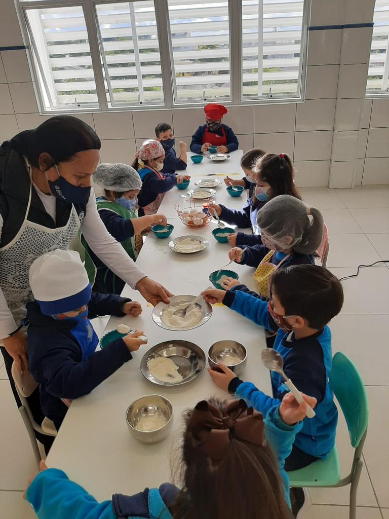 Na última sexta, a turma do Pré 2A da Profe Kelly, deu início ao seu projeto “Culinária Divertida – Mini Chefes em Ação”, com a participação das famílias.