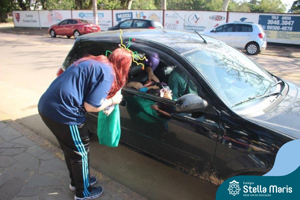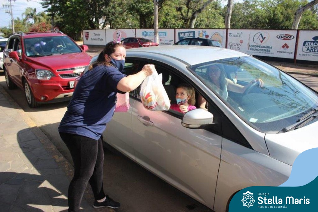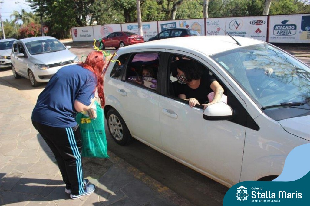 Em parceria com a Pastoral, as turmas da Ed. Infantil foram convidadas a participar de um Drive Solidário. As crianças amenizaram um pouco da saudade de suas profes e da escola e, também, puderam contribuir com alimentos não perecíveis, roupas e brinquedos, que serão doados a instituições necessitadas.