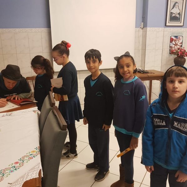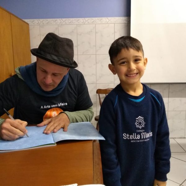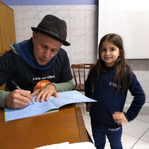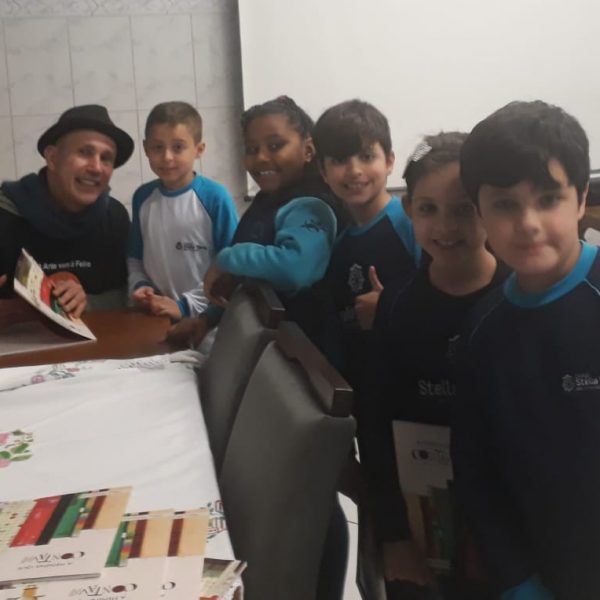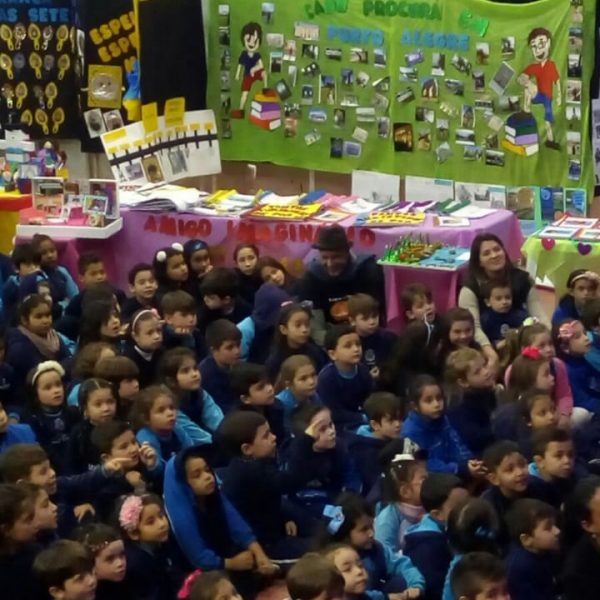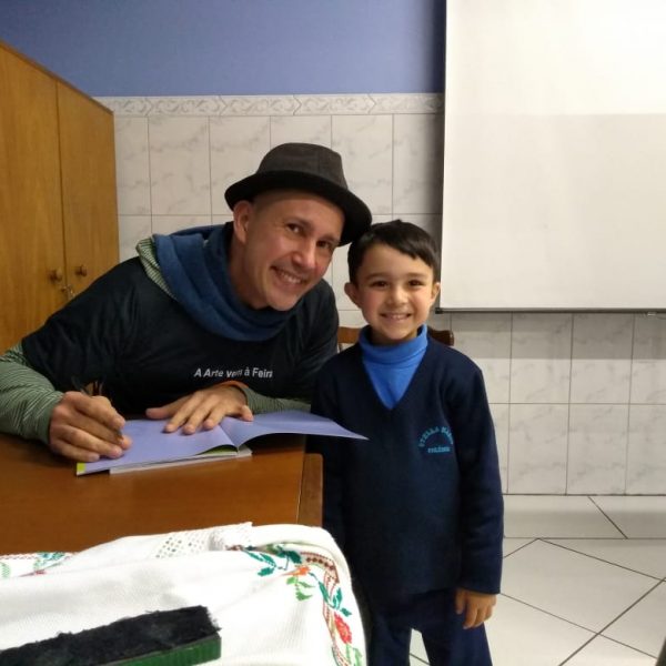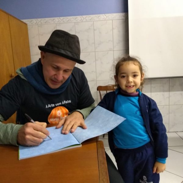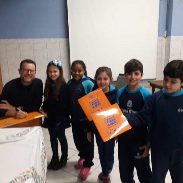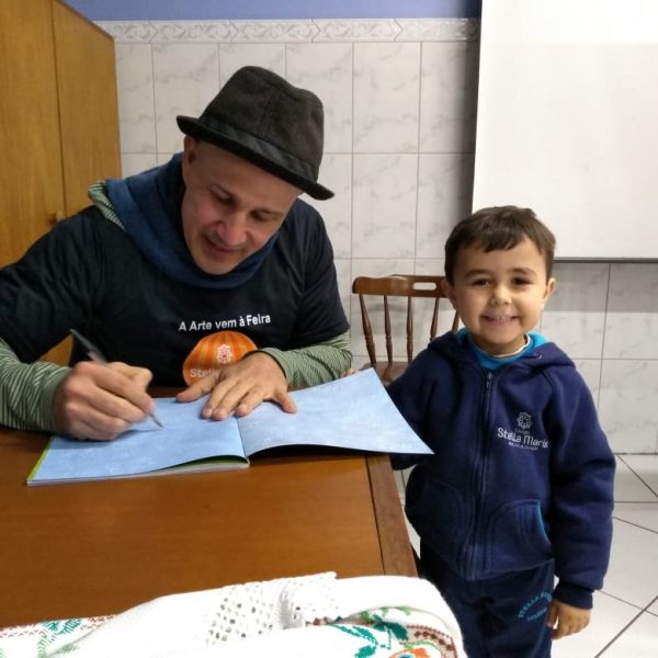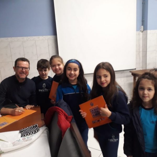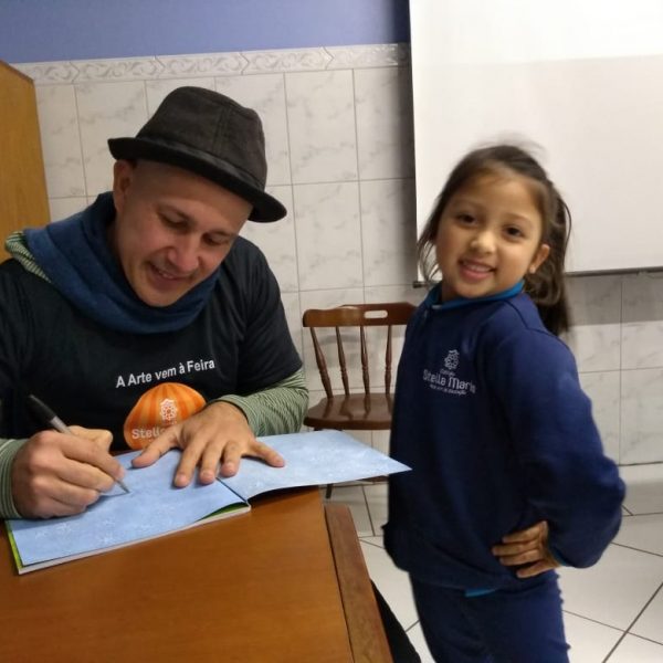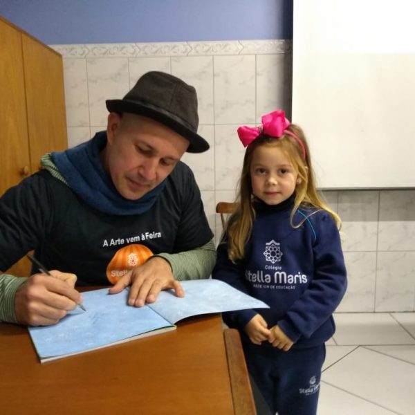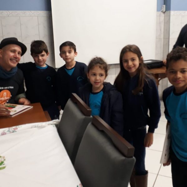 Nos dias 23 e 24 de agosto realizou-se na nossa escola a XVIII Feira do Livro, com o tema “A Arte vem à Feira”. O Patrono foi o escritor e ilustrador André Neves que na oportunidade, conversou com os alunos do Nível 2 da Educação infantil, 3º, 5º e 6º ano do Ensino fundamental que trabalharam seus livros. Com seu jeito simples e motivador, conseguiu estabelecer uma conversa agradável e interessante com todos. Contou sobre a sua vida, sua experiência como escritor e ilustrador, incentivando os alunos a escreverem e tomarem a leitura como um hábito.