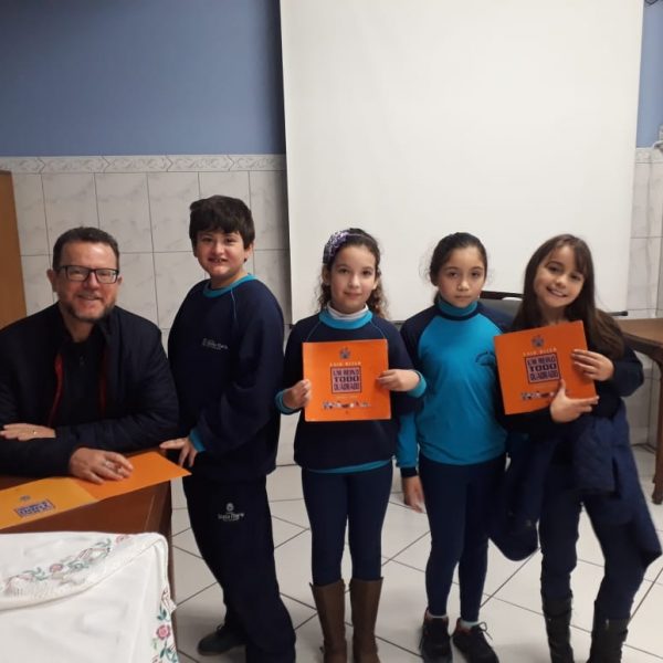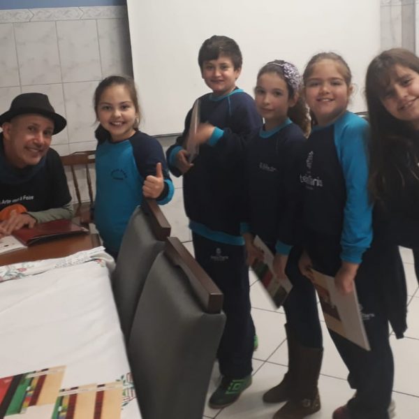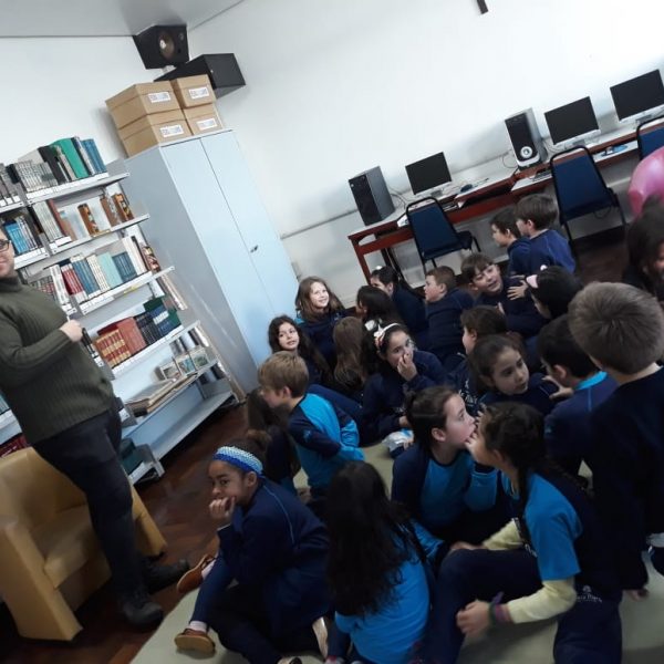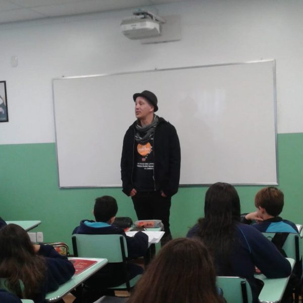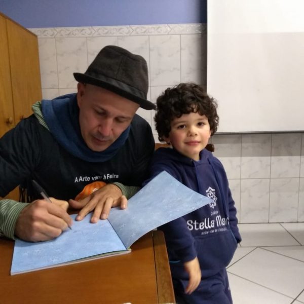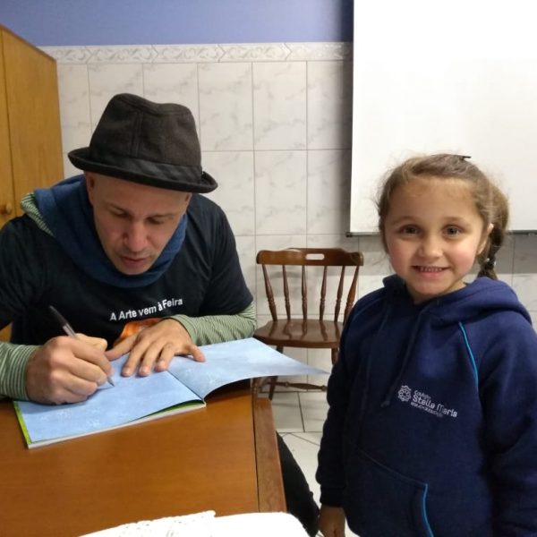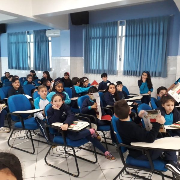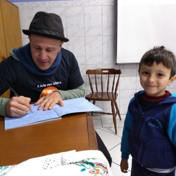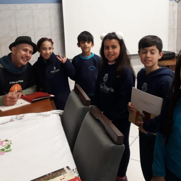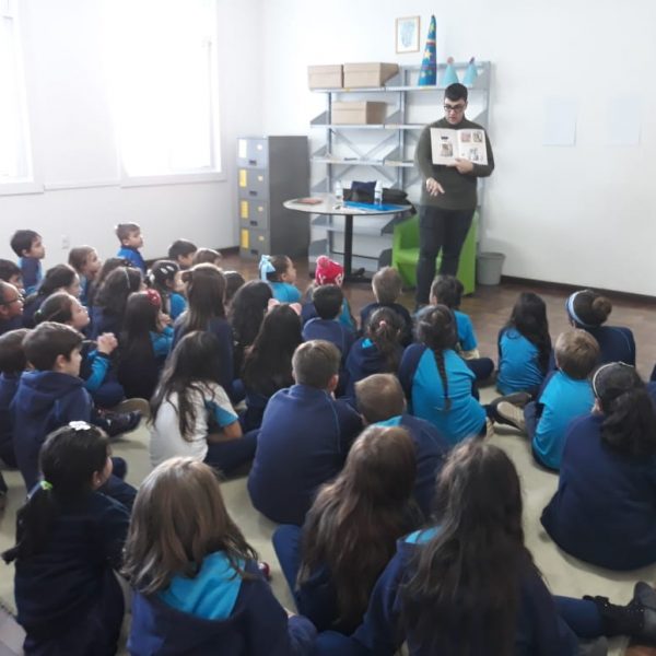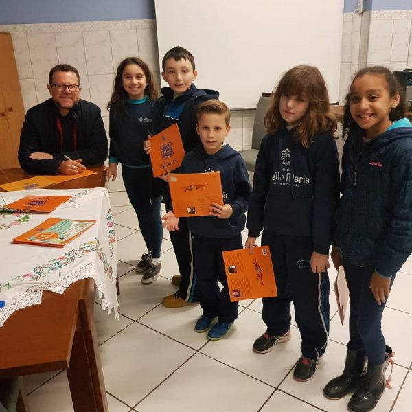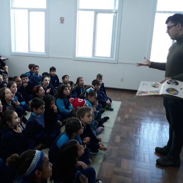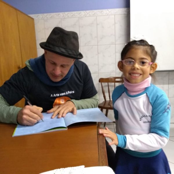 Nos dias 23 e 24 de agosto realizou-se na nossa escola a XVIII Feira do Livro, com o tema “A Arte vem à Feira”. O Patrono foi o escritor e ilustrador André Neves que na oportunidade, conversou com os alunos do Nível 2 da Educação infantil, 3º, 5º e 6º ano do Ensino fundamental que trabalharam seus livros. Com seu jeito simples e motivador, conseguiu estabelecer uma conversa agradável e interessante com todos. Contou sobre a sua vida, sua experiência como escritor e ilustrador, incentivando os alunos a escreverem e tomarem a leitura como um hábito.