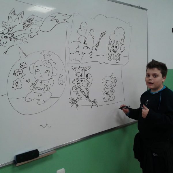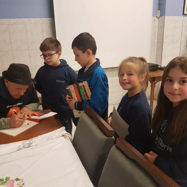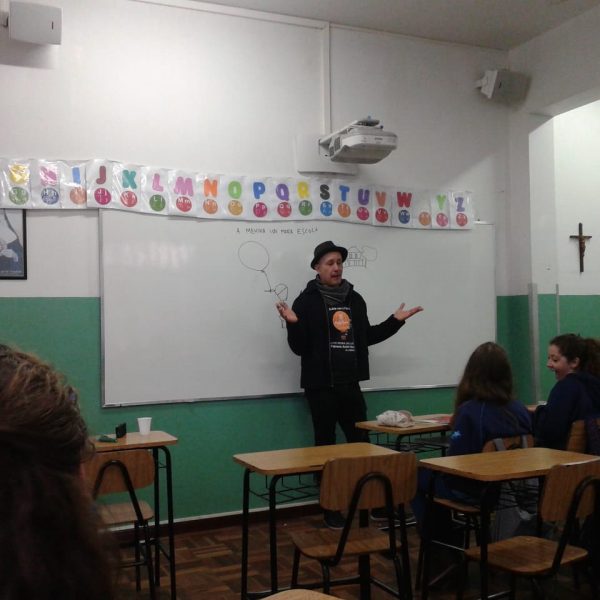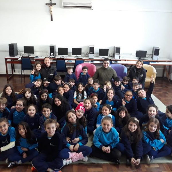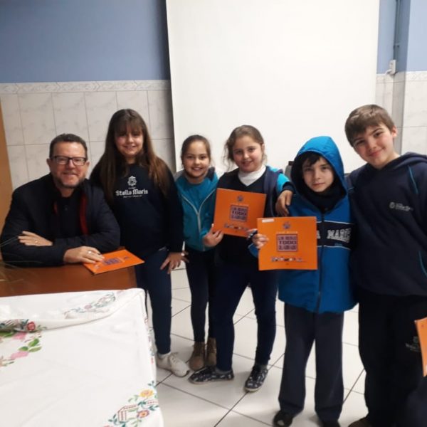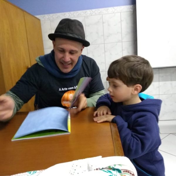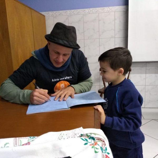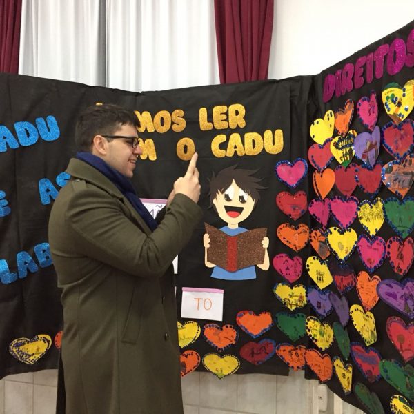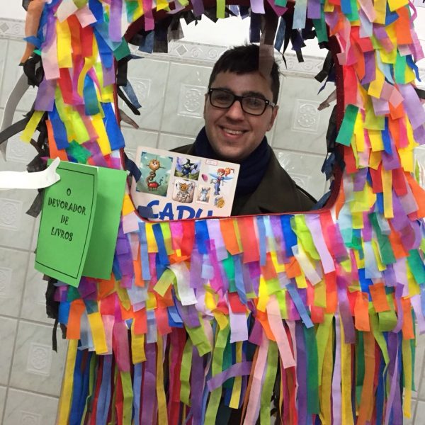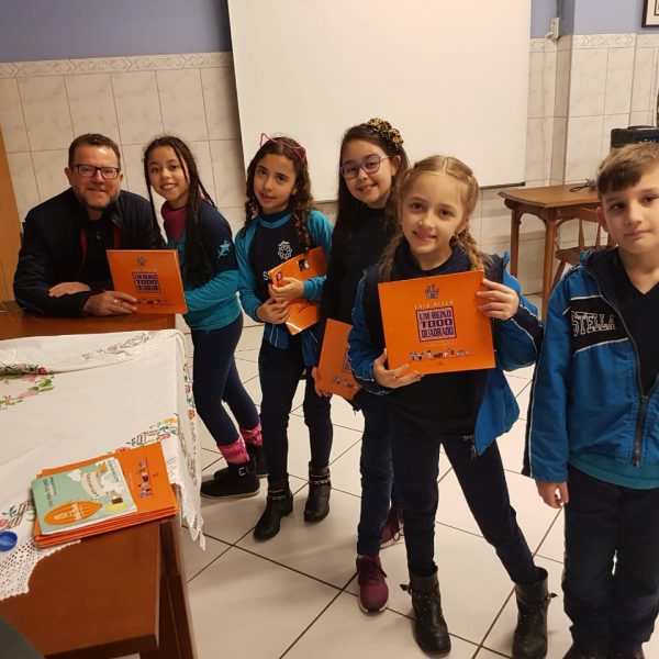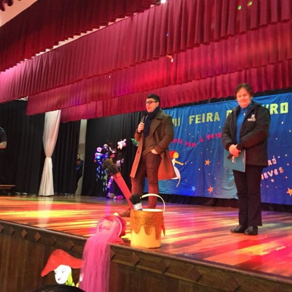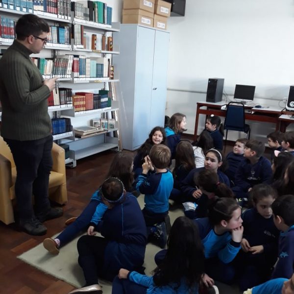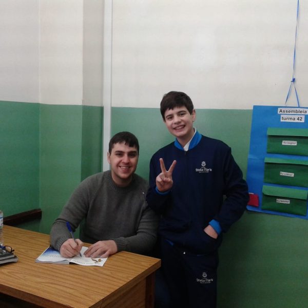 Nos dias 23 e 24 de agosto realizou-se na nossa escola a XVIII Feira do Livro, com o tema “A Arte vem à Feira”. O Patrono foi o escritor e ilustrador André Neves que na oportunidade, conversou com os alunos do Nível 2 da Educação infantil, 3º, 5º e 6º ano do Ensino fundamental que trabalharam seus livros. Com seu jeito simples e motivador, conseguiu estabelecer uma conversa agradável e interessante com todos. Contou sobre a sua vida, sua experiência como escritor e ilustrador, incentivando os alunos a escreverem e tomarem a leitura como um hábito.