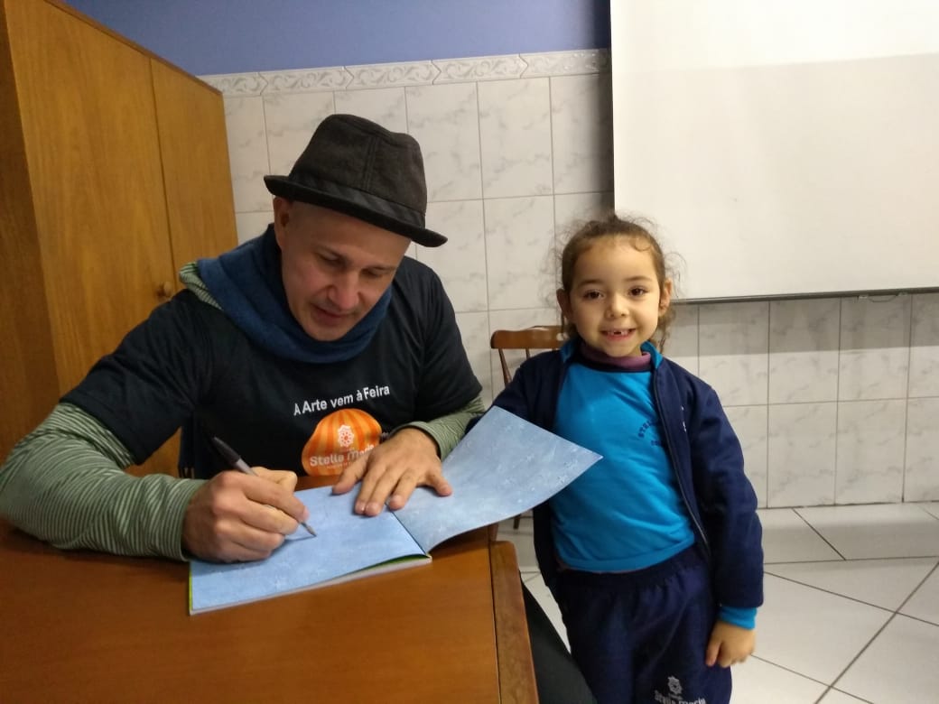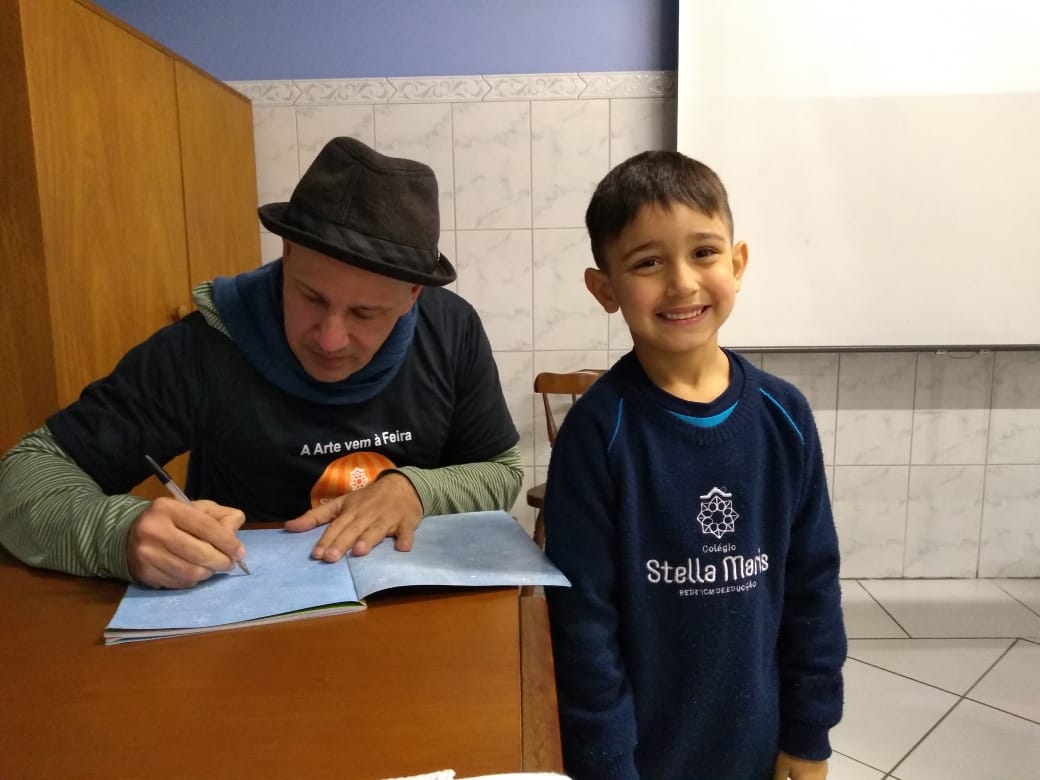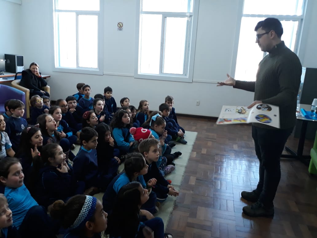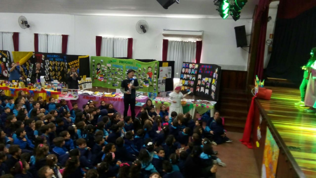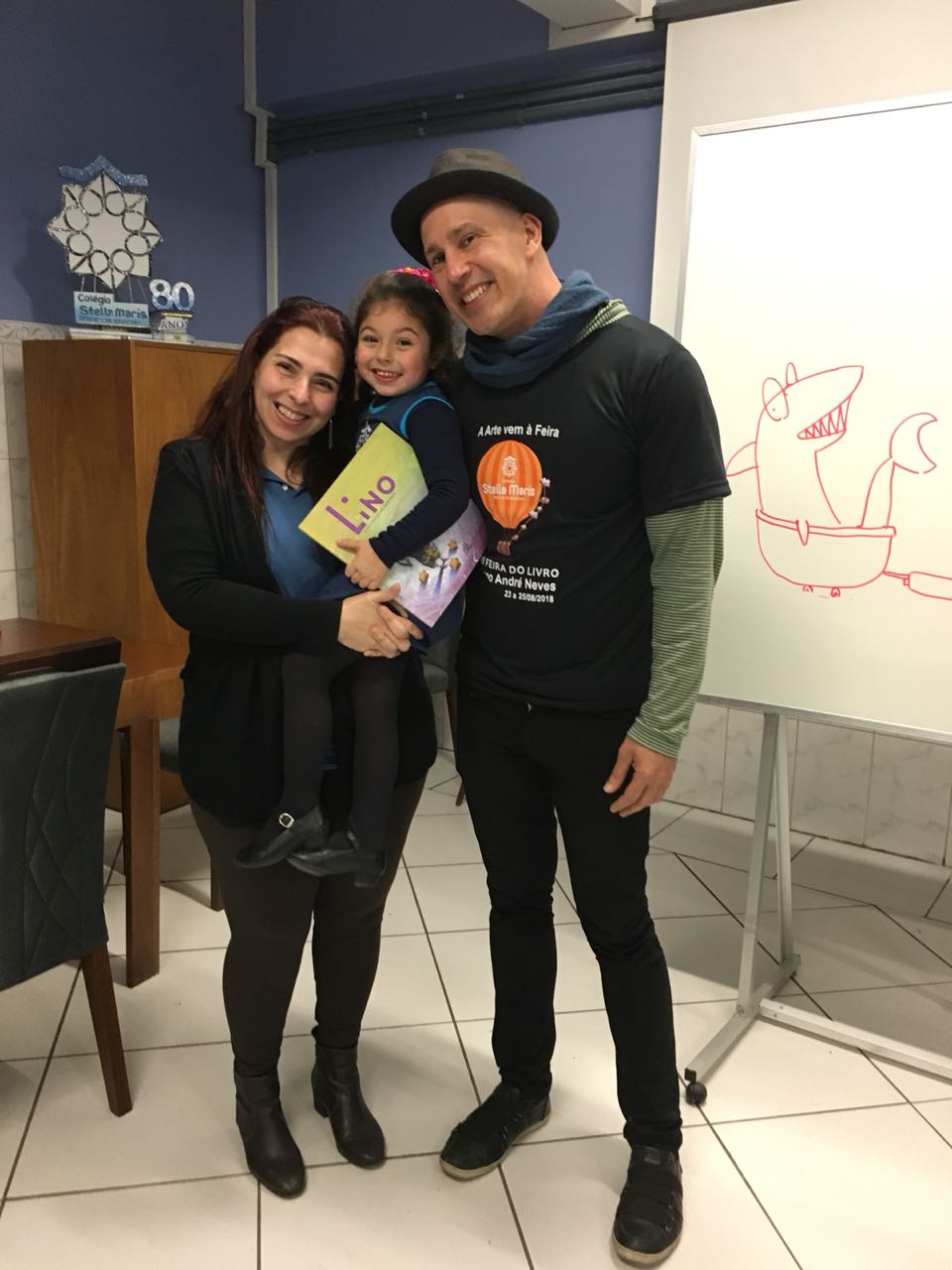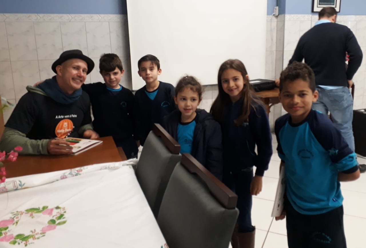 Nos dias 23 e 24 de agosto realizou-se na nossa escola a XVIII Feira do Livro, com o tema “A Arte vem à Feira”. O Patrono foi o escritor e ilustrador André Neves que na oportunidade, conversou com os alunos do Nível 2 da Educação infantil, 3º, 5º e 6º ano do Ensino fundamental que trabalharam seus livros. Com seu jeito simples e motivador, conseguiu estabelecer uma conversa agradável e interessante com todos. Contou sobre a sua vida, sua experiência como escritor e ilustrador, incentivando os alunos a escreverem e tomarem a leitura como um hábito.