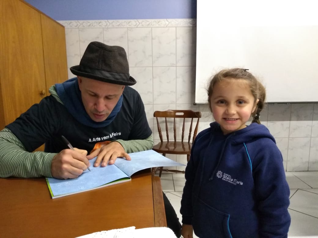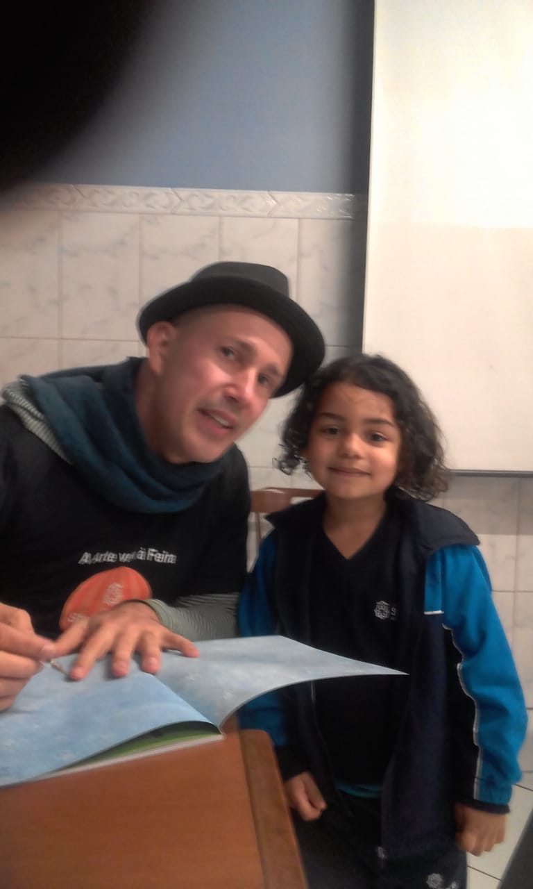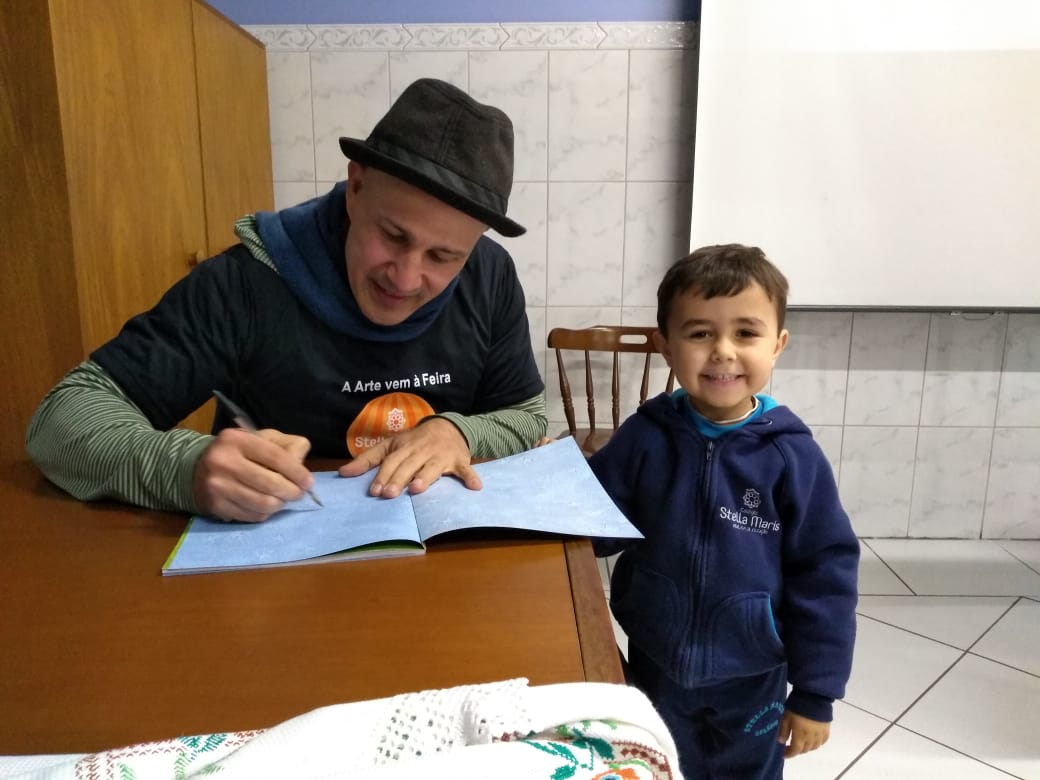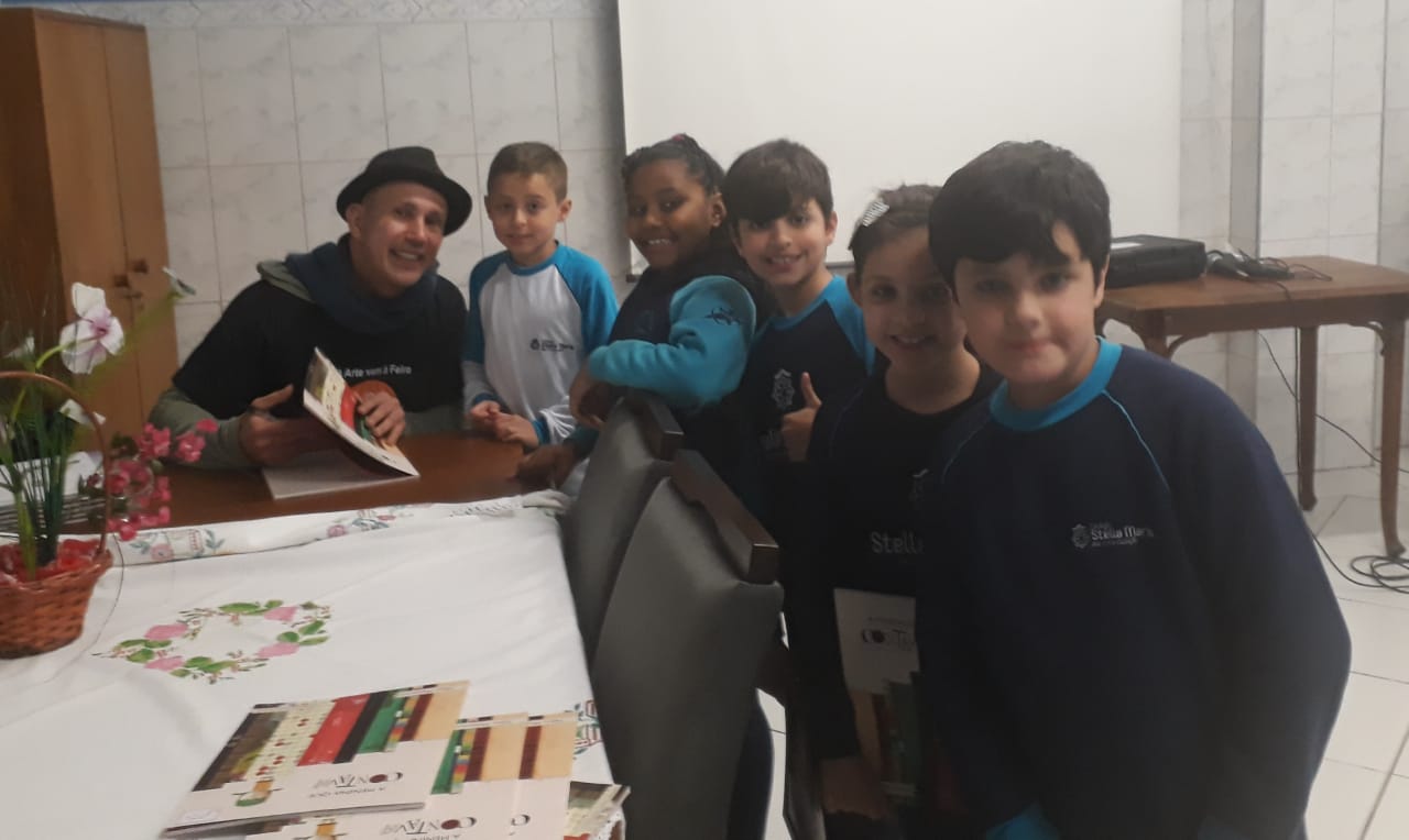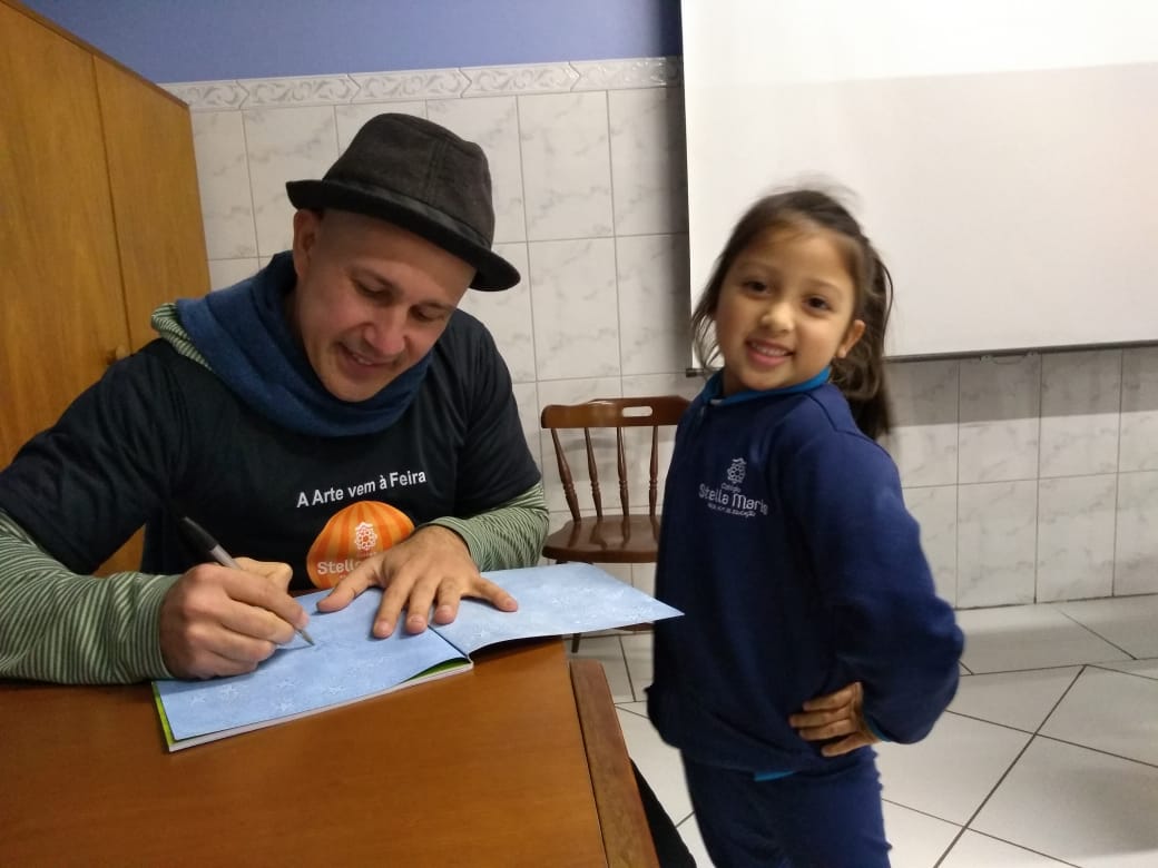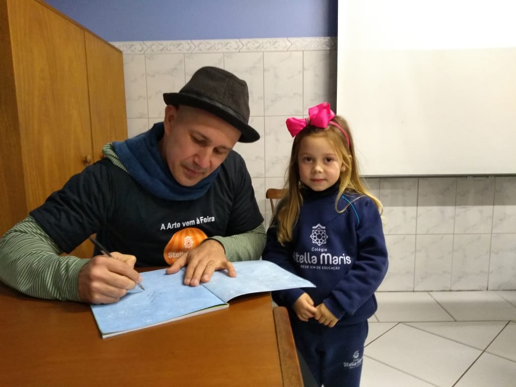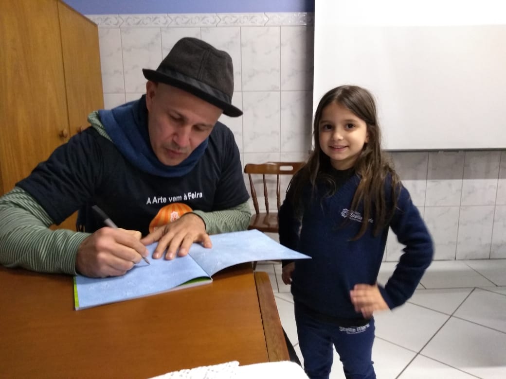Nos dias 23 e 24 de agosto realizou-se na nossa escola a XVIII Feira do Livro, com o tema “A Arte vem à Feira”. O Patrono foi o escritor e ilustrador André Neves que na oportunidade, conversou com os alunos do Nível 2 da Educação infantil, 3º, 5º e 6º ano do Ensino fundamental que trabalharam seus livros. Com seu jeito simples e motivador, conseguiu estabelecer uma conversa agradável e interessante com todos. Contou sobre a sua vida, sua experiência como escritor e ilustrador, incentivando os alunos a escreverem e tomarem a leitura como um hábito.