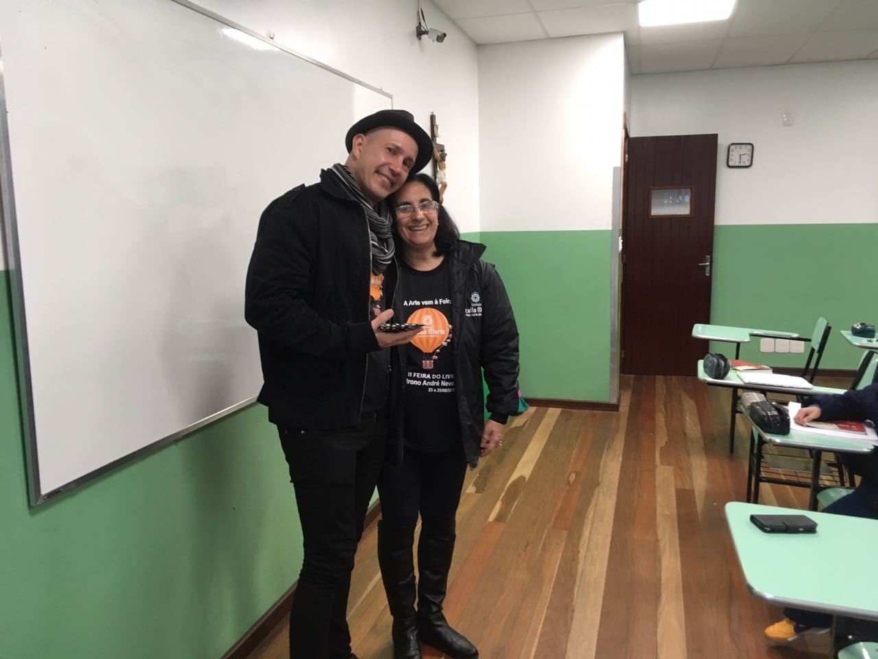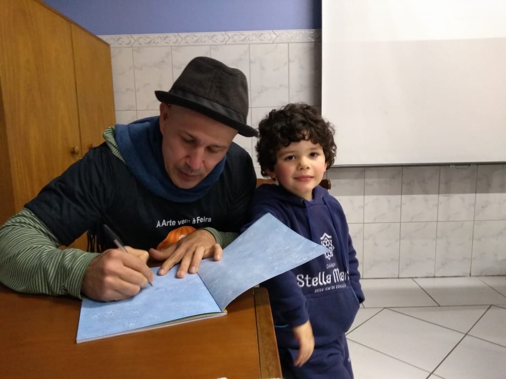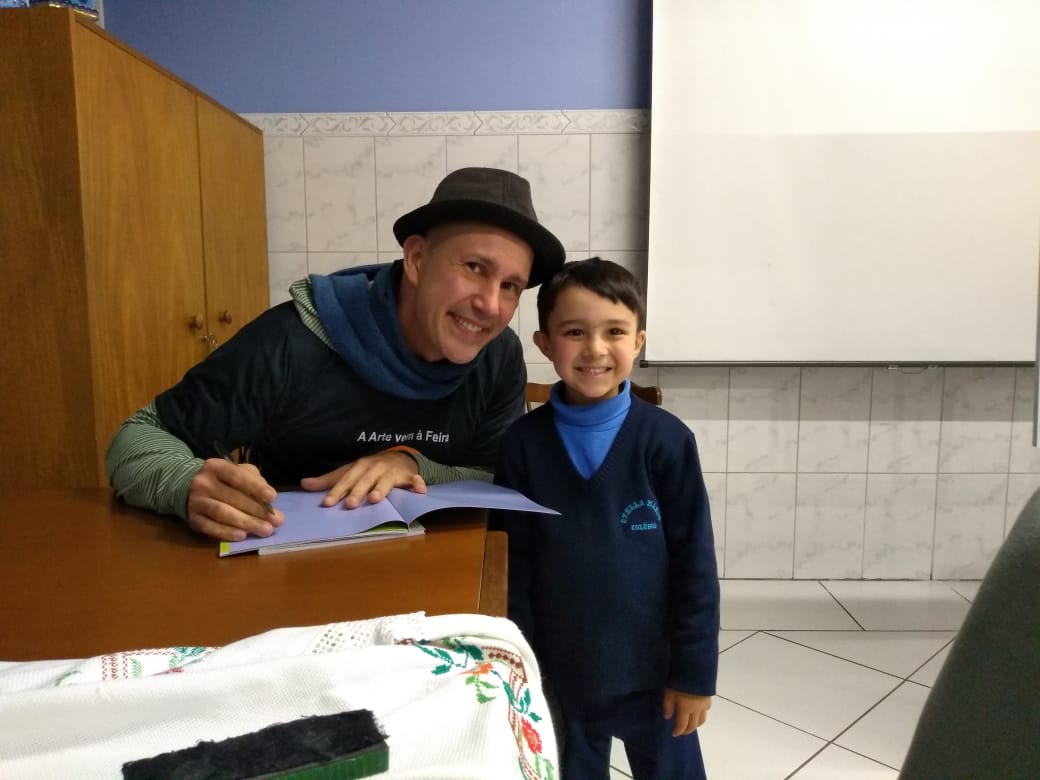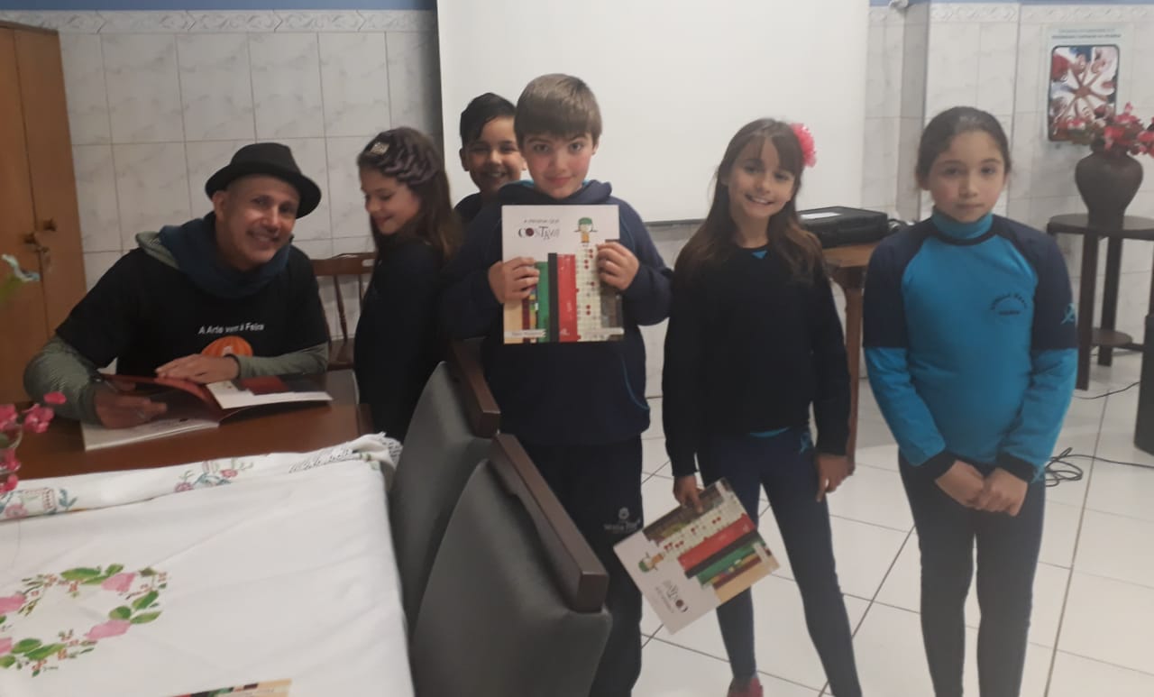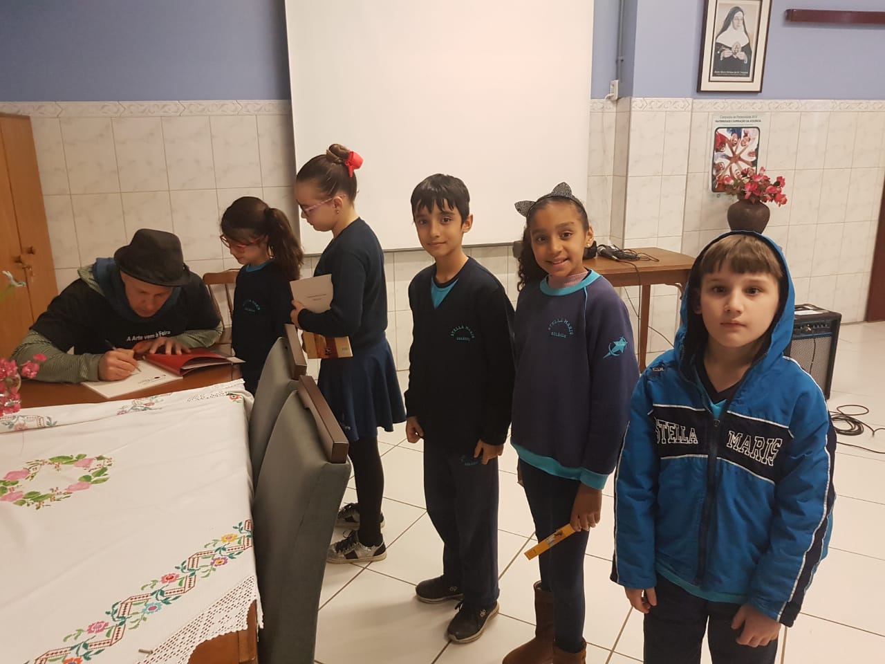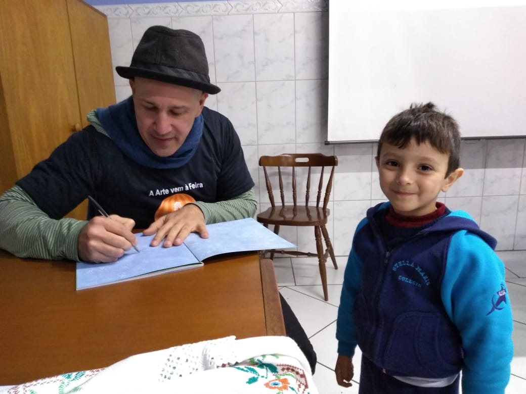 Nos dias 23 e 24 de agosto realizou-se na nossa escola a XVIII Feira do Livro, com o tema “A Arte vem à Feira”. O Patrono foi o escritor e ilustrador André Neves que na oportunidade, conversou com os alunos do Nível 2 da Educação infantil, 3º, 5º e 6º ano do Ensino fundamental que trabalharam seus livros. Com seu jeito simples e motivador, conseguiu estabelecer uma conversa agradável e interessante com todos. Contou sobre a sua vida, sua experiência como escritor e ilustrador, incentivando os alunos a escreverem e tomarem a leitura como um hábito.