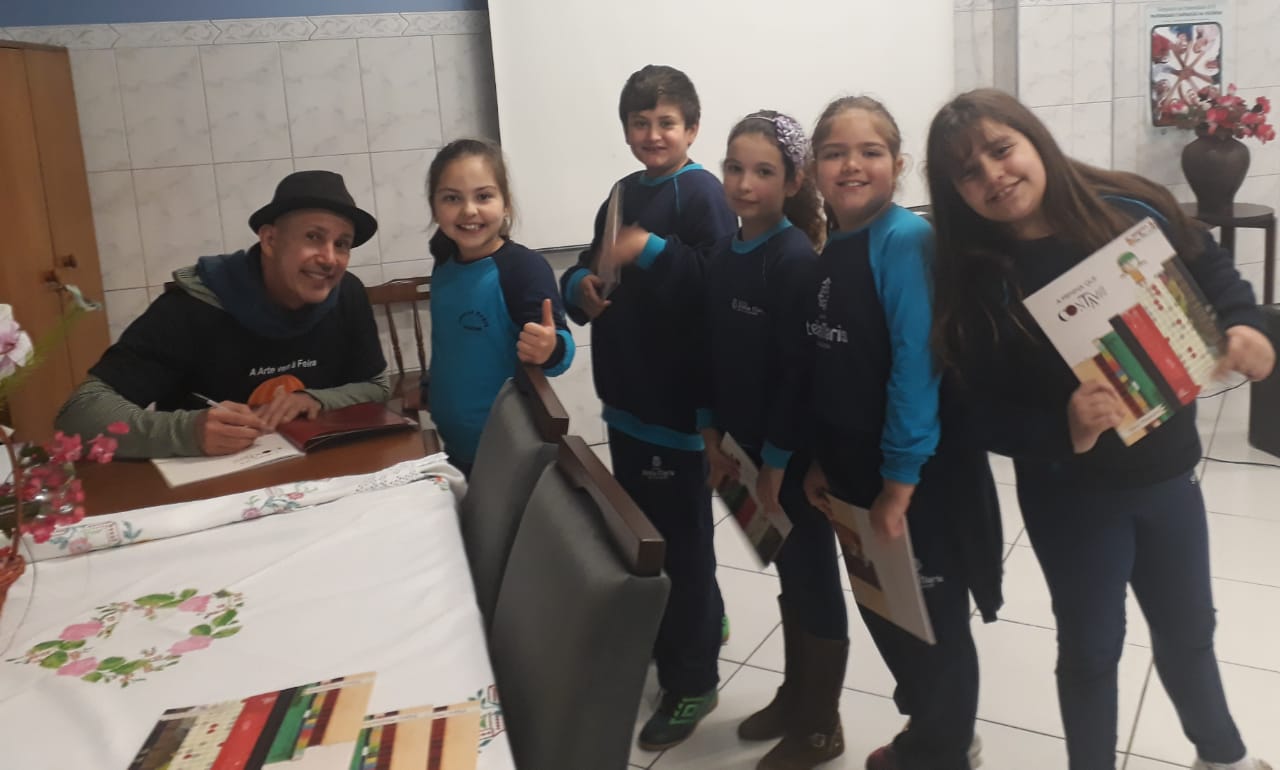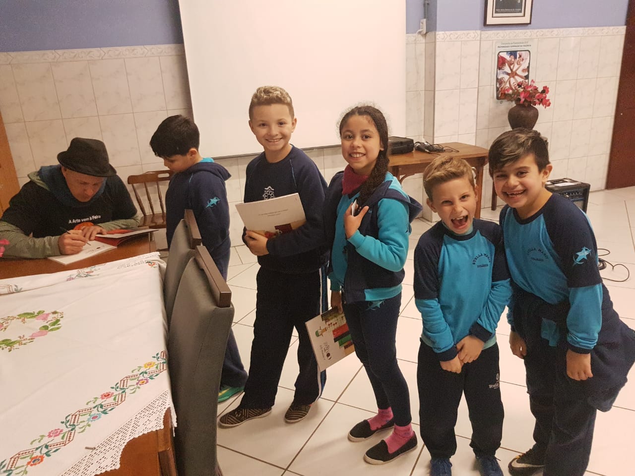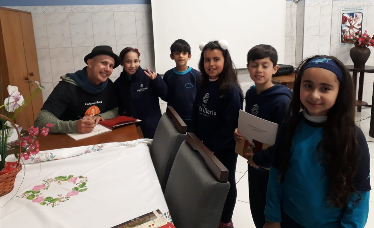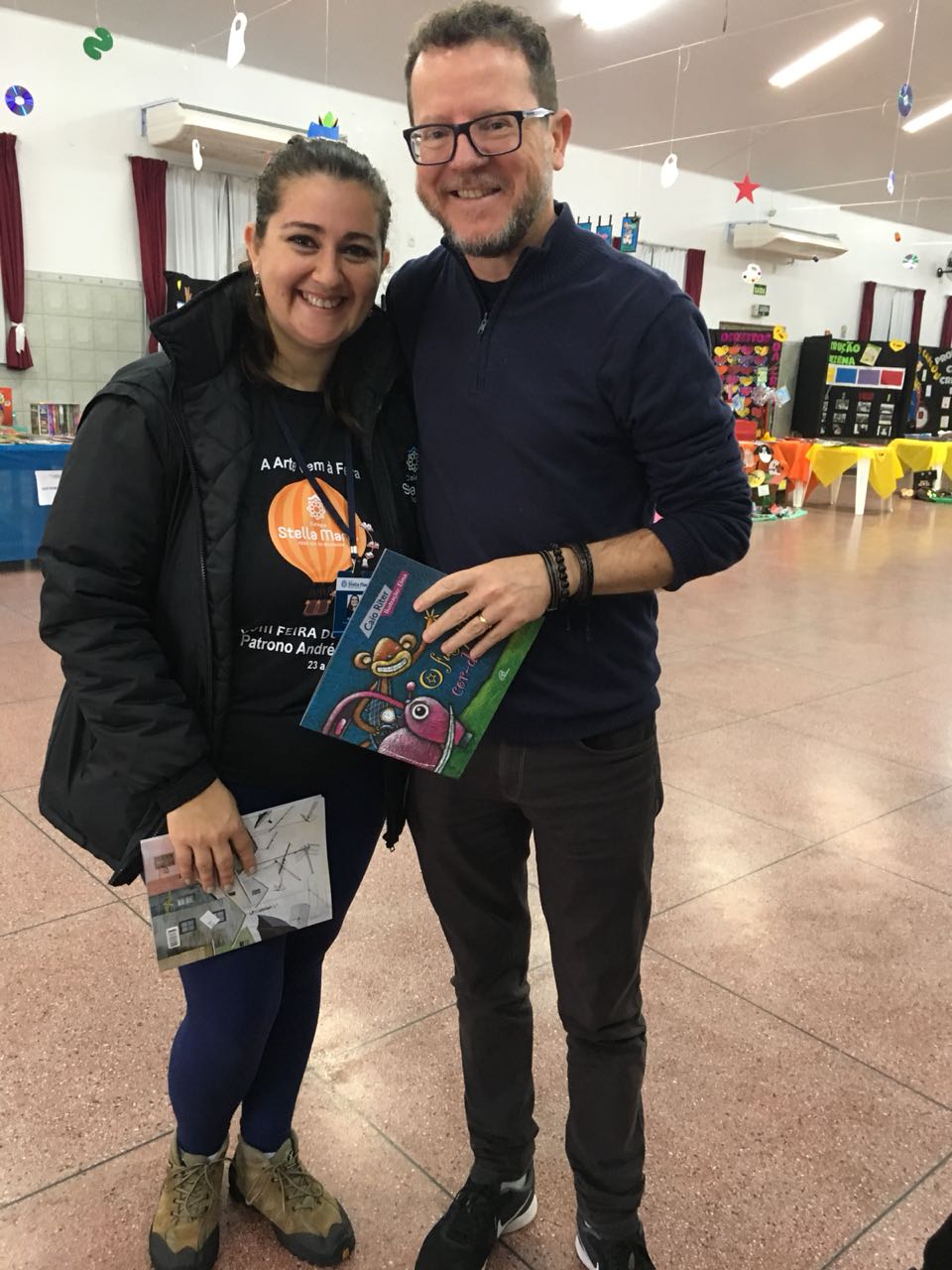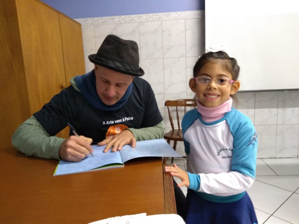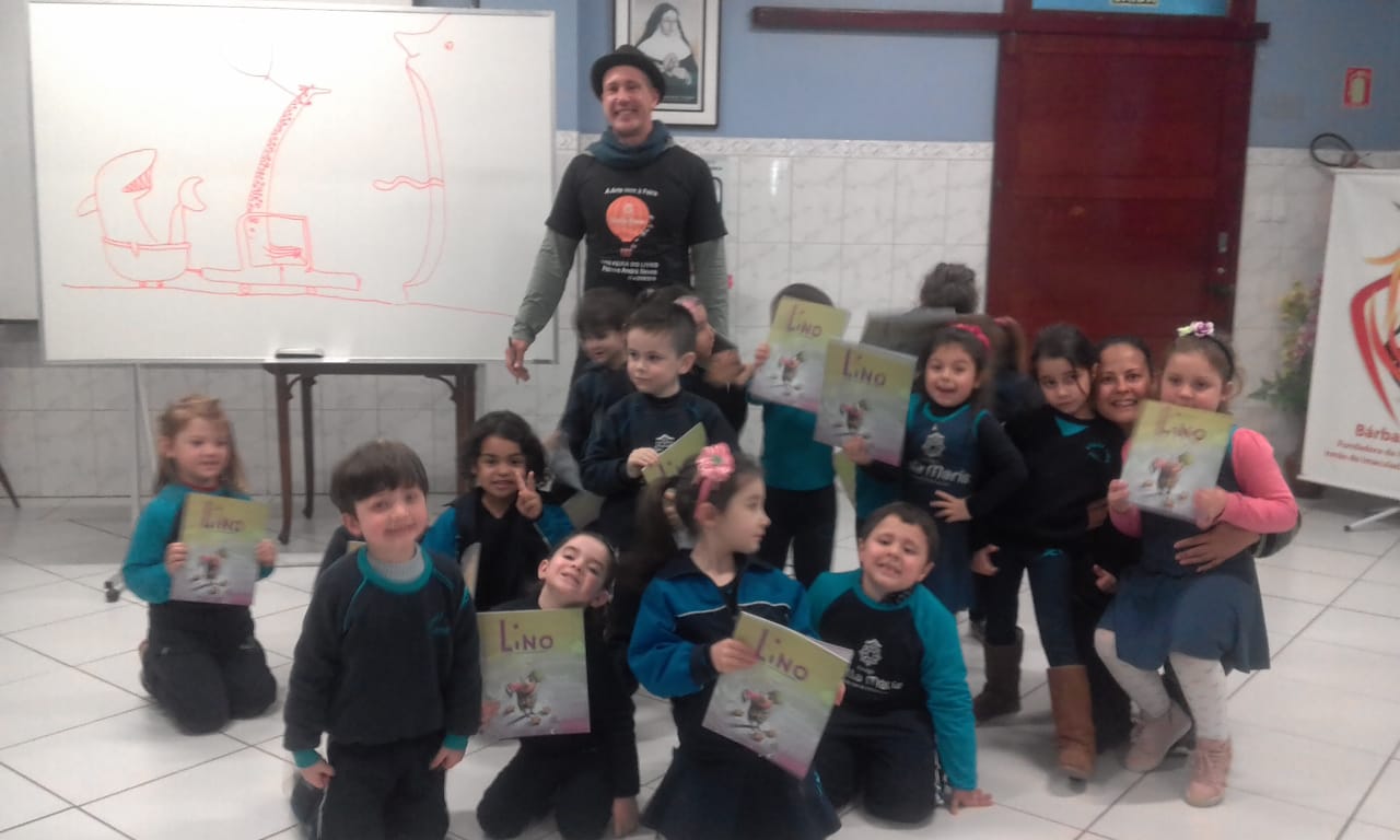 Nos dias 23 e 24 de agosto realizou-se na nossa escola a XVIII Feira do Livro, com o tema “A Arte vem à Feira”. O Patrono foi o escritor e ilustrador André Neves que na oportunidade, conversou com os alunos do Nível 2 da Educação infantil, 3º, 5º e 6º ano do Ensino fundamental que trabalharam seus livros. Com seu jeito simples e motivador, conseguiu estabelecer uma conversa agradável e interessante com todos. Contou sobre a sua vida, sua experiência como escritor e ilustrador, incentivando os alunos a escreverem e tomarem a leitura como um hábito.