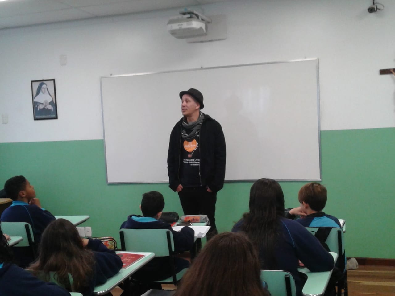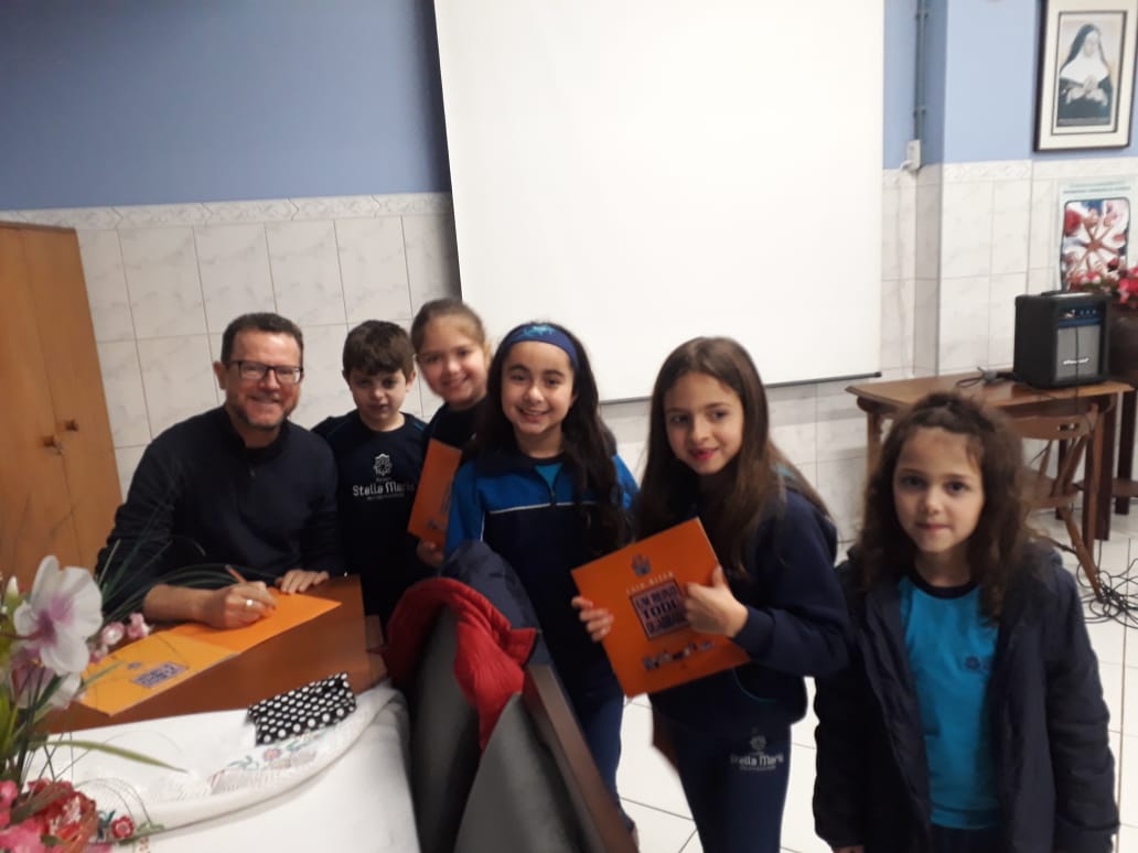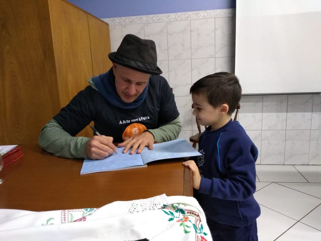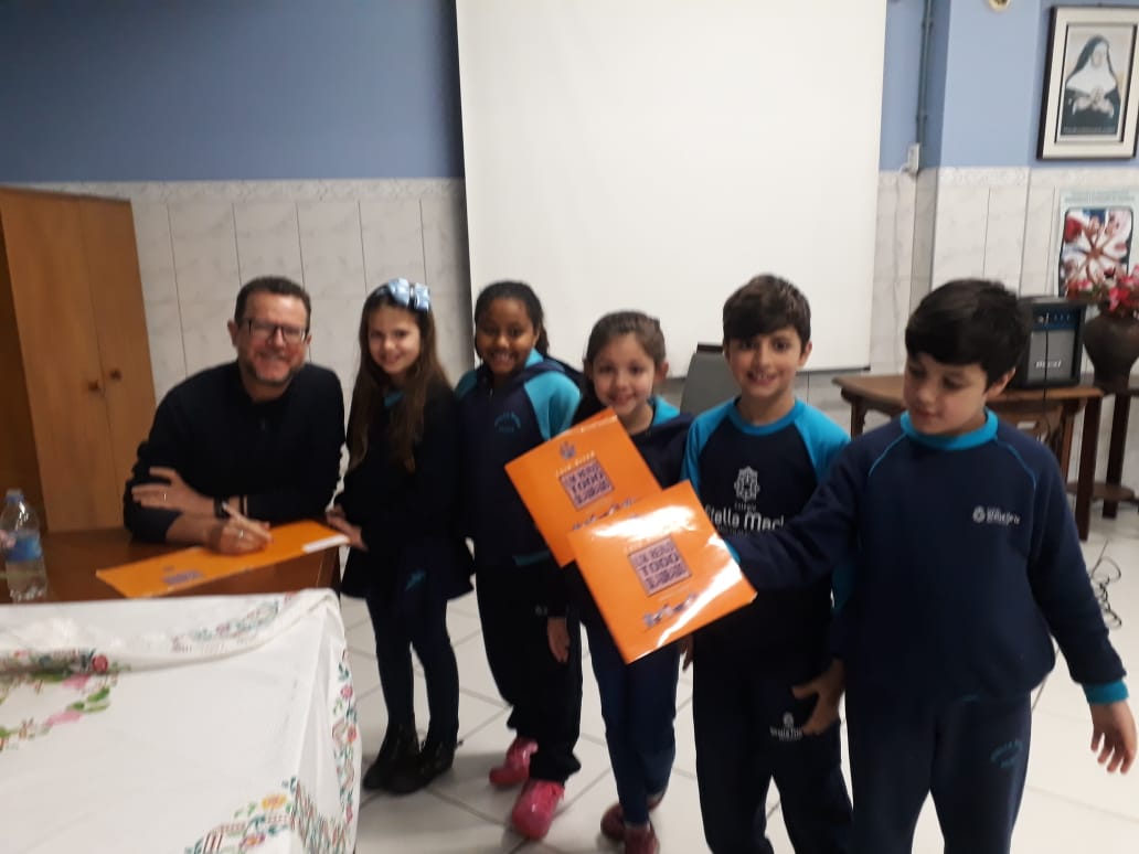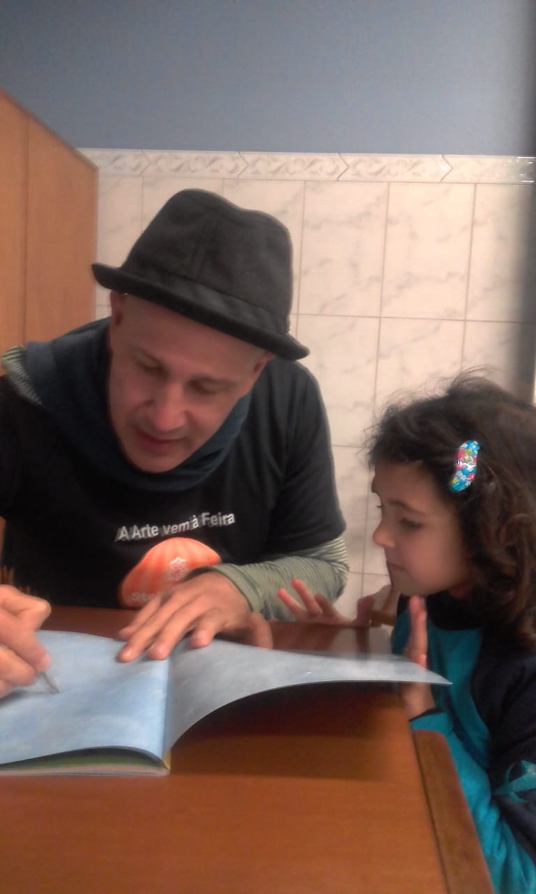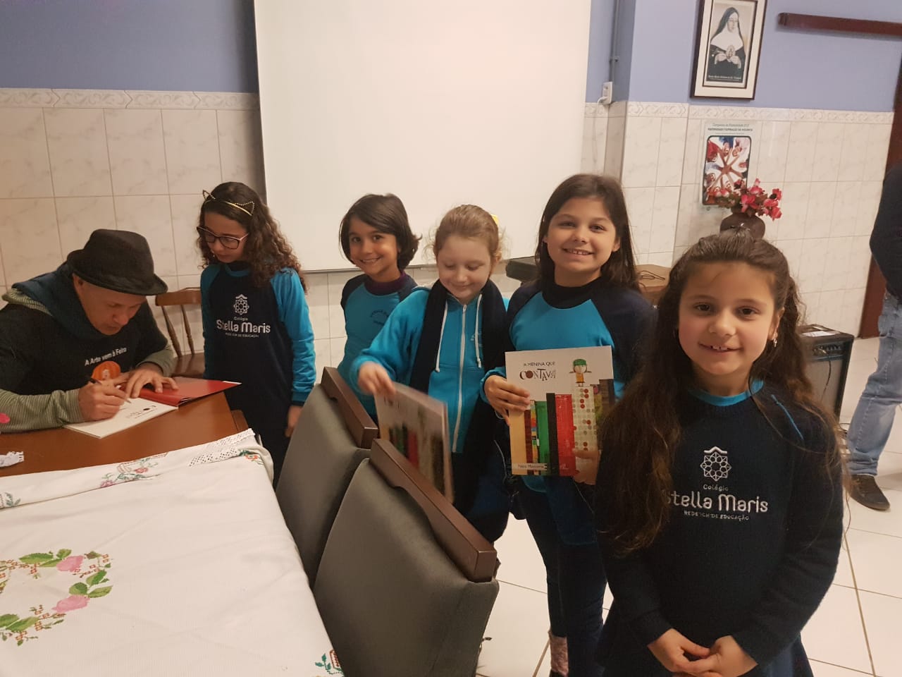 Nos dias 23 e 24 de agosto realizou-se na nossa escola a XVIII Feira do Livro, com o tema “A Arte vem à Feira”. O Patrono foi o escritor e ilustrador André Neves que na oportunidade, conversou com os alunos do Nível 2 da Educação infantil, 3º, 5º e 6º ano do Ensino fundamental que trabalharam seus livros. Com seu jeito simples e motivador, conseguiu estabelecer uma conversa agradável e interessante com todos. Contou sobre a sua vida, sua experiência como escritor e ilustrador, incentivando os alunos a escreverem e tomarem a leitura como um hábito.