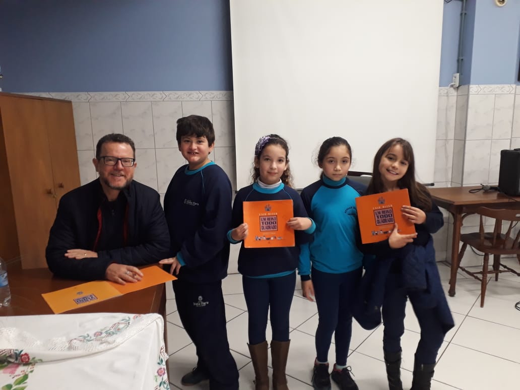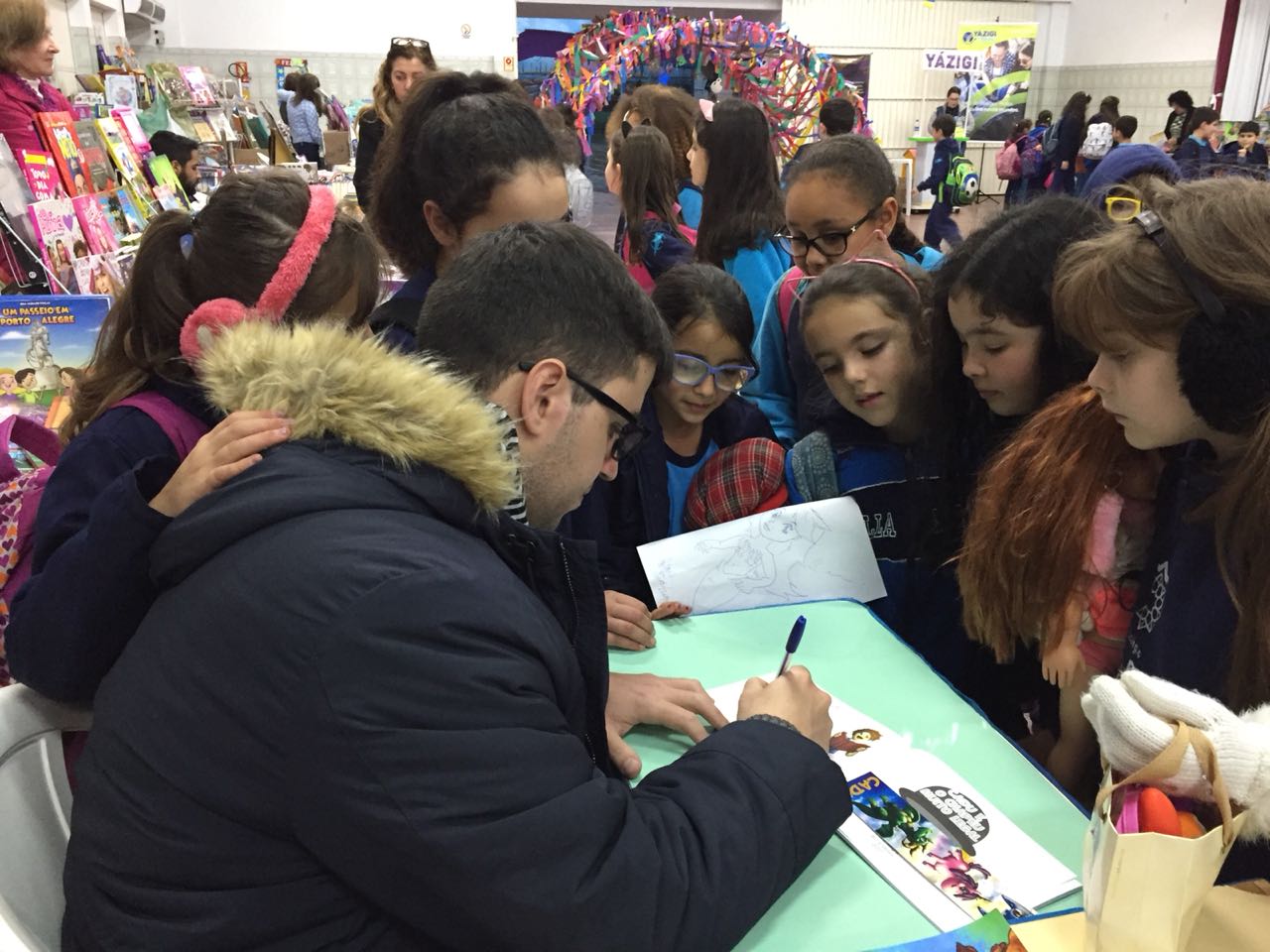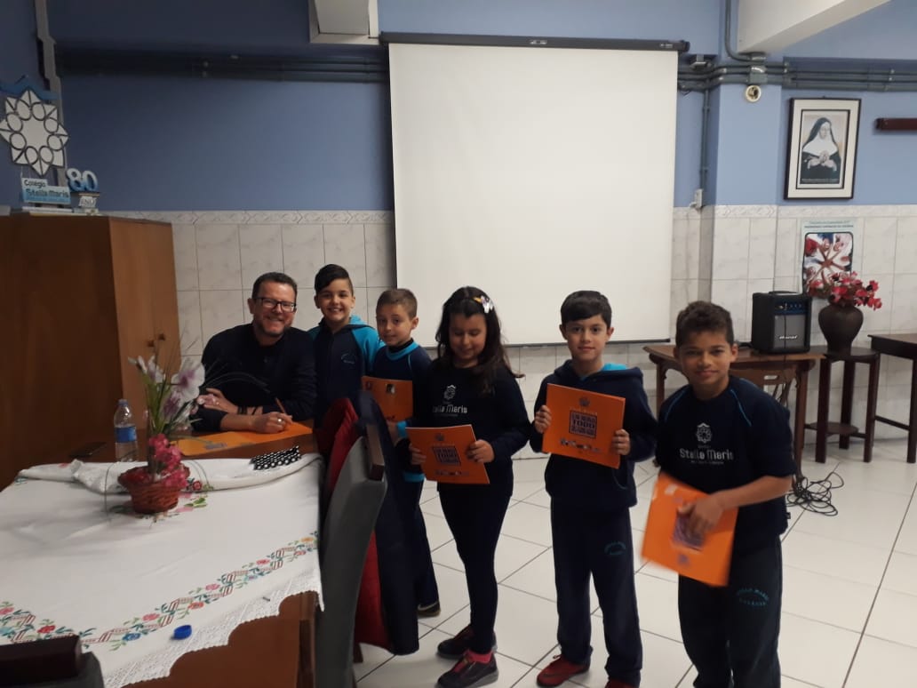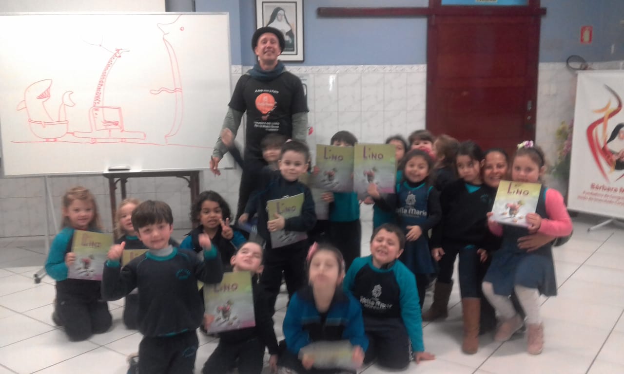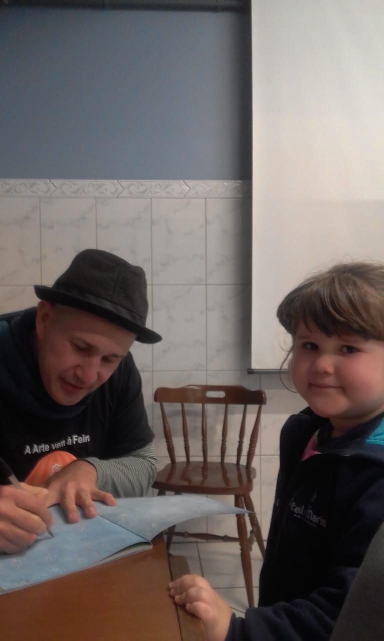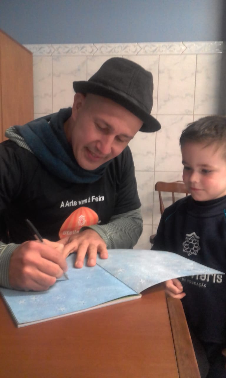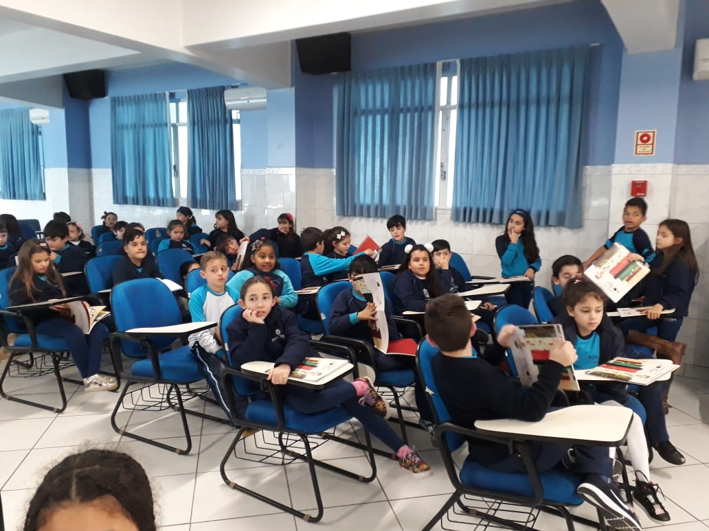 Nos dias 23 e 24 de agosto realizou-se na nossa escola a XVIII Feira do Livro, com o tema “A Arte vem à Feira”. O Patrono foi o escritor e ilustrador André Neves que na oportunidade, conversou com os alunos do Nível 2 da Educação infantil, 3º, 5º e 6º ano do Ensino fundamental que trabalharam seus livros. Com seu jeito simples e motivador, conseguiu estabelecer uma conversa agradável e interessante com todos. Contou sobre a sua vida, sua experiência como escritor e ilustrador, incentivando os alunos a escreverem e tomarem a leitura como um hábito.