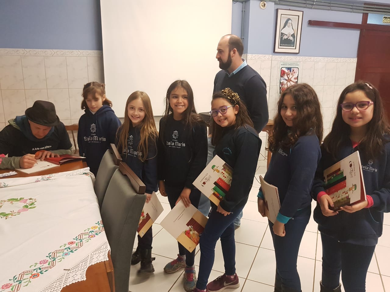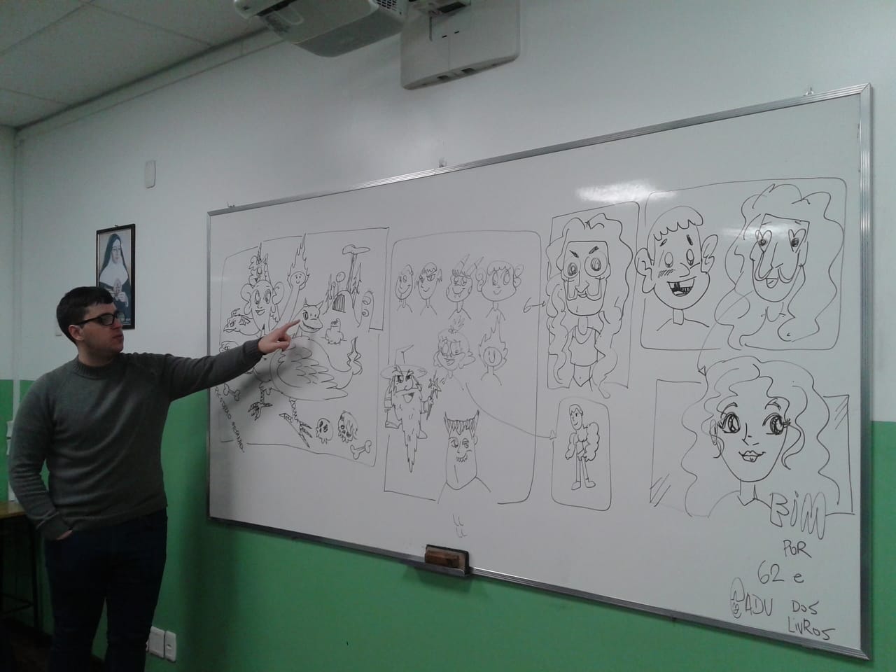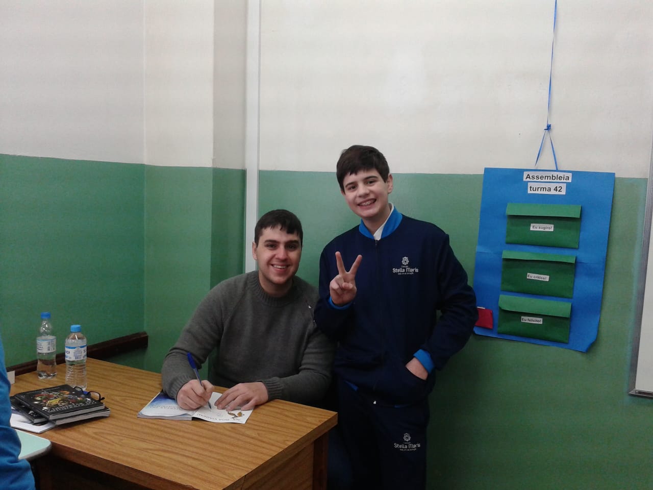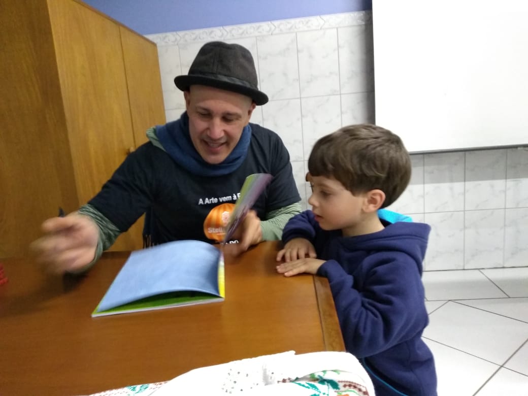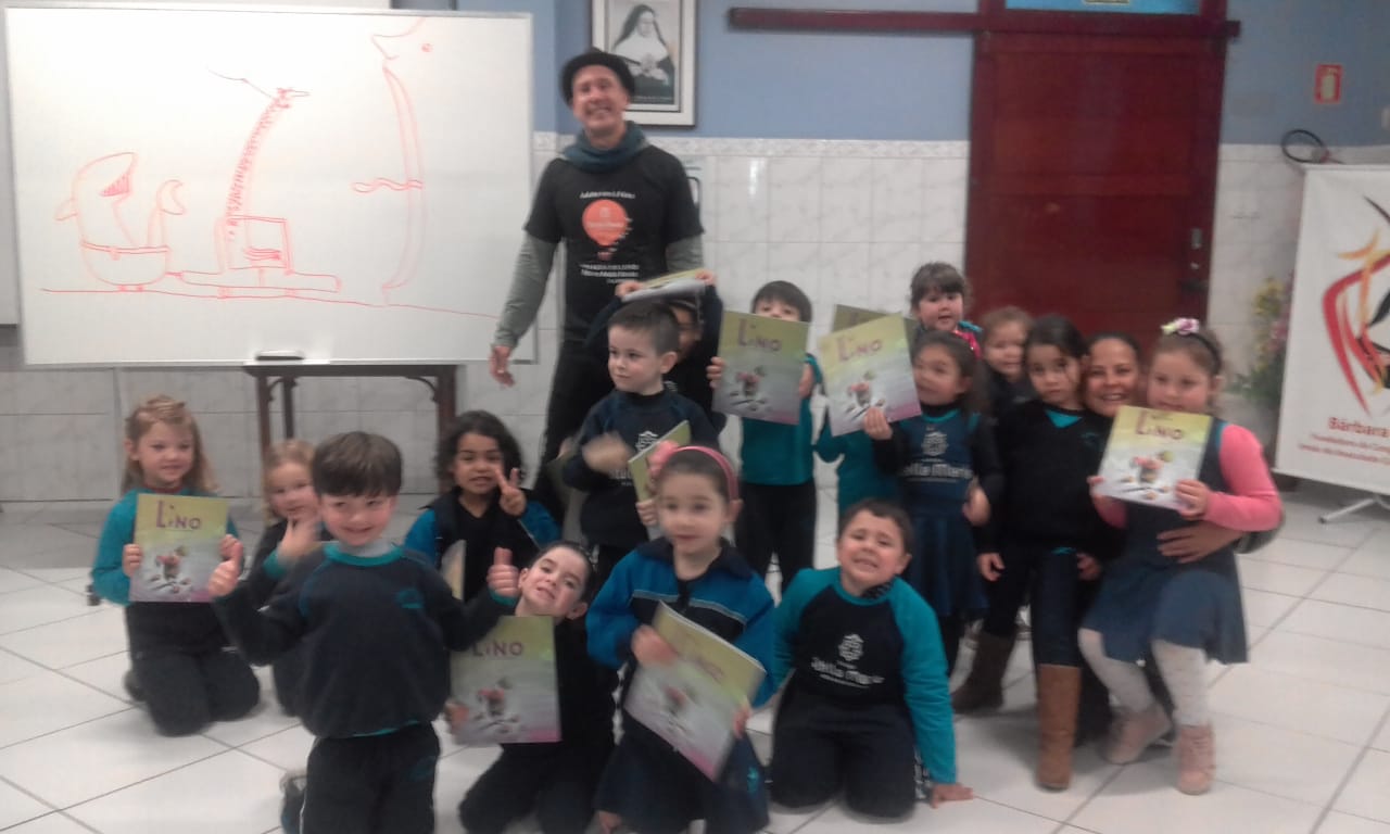 Nos dias 23 e 24 de agosto realizou-se na nossa escola a XVIII Feira do Livro, com o tema “A Arte vem à Feira”. O Patrono foi o escritor e ilustrador André Neves que na oportunidade, conversou com os alunos do Nível 2 da Educação infantil, 3º, 5º e 6º ano do Ensino fundamental que trabalharam seus livros. Com seu jeito simples e motivador, conseguiu estabelecer uma conversa agradável e interessante com todos. Contou sobre a sua vida, sua experiência como escritor e ilustrador, incentivando os alunos a escreverem e tomarem a leitura como um hábito.