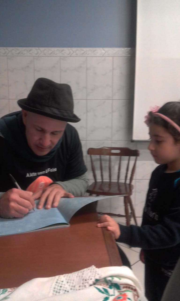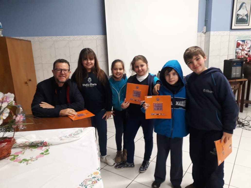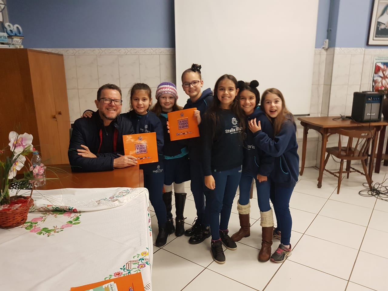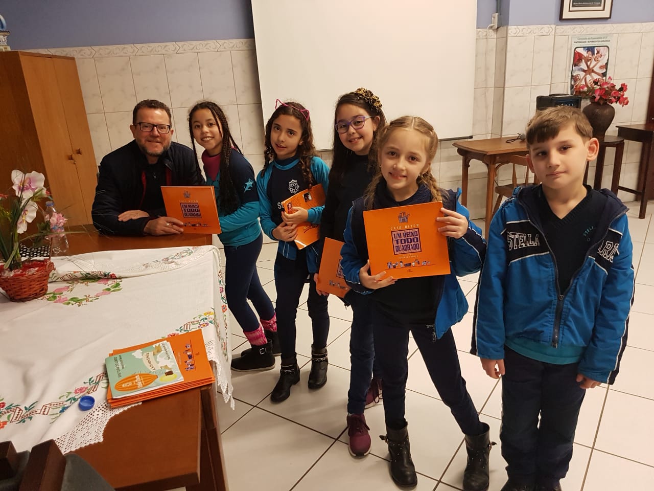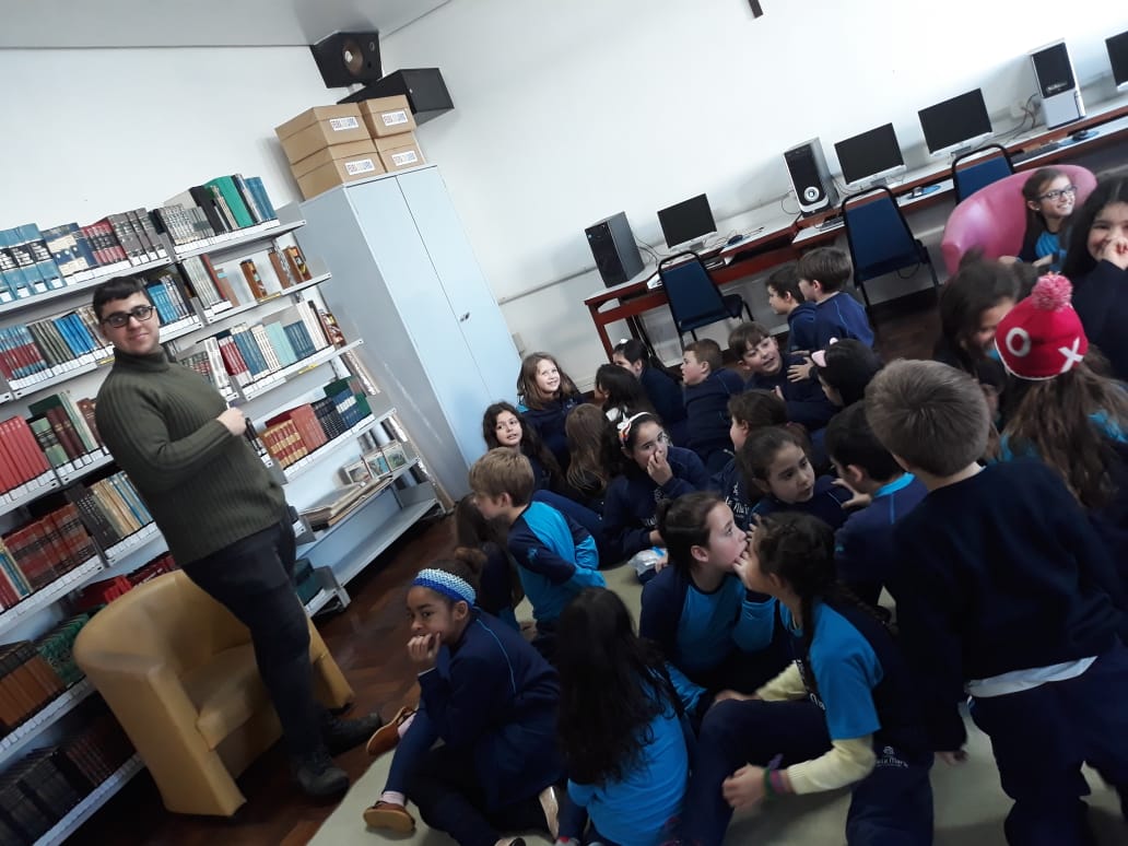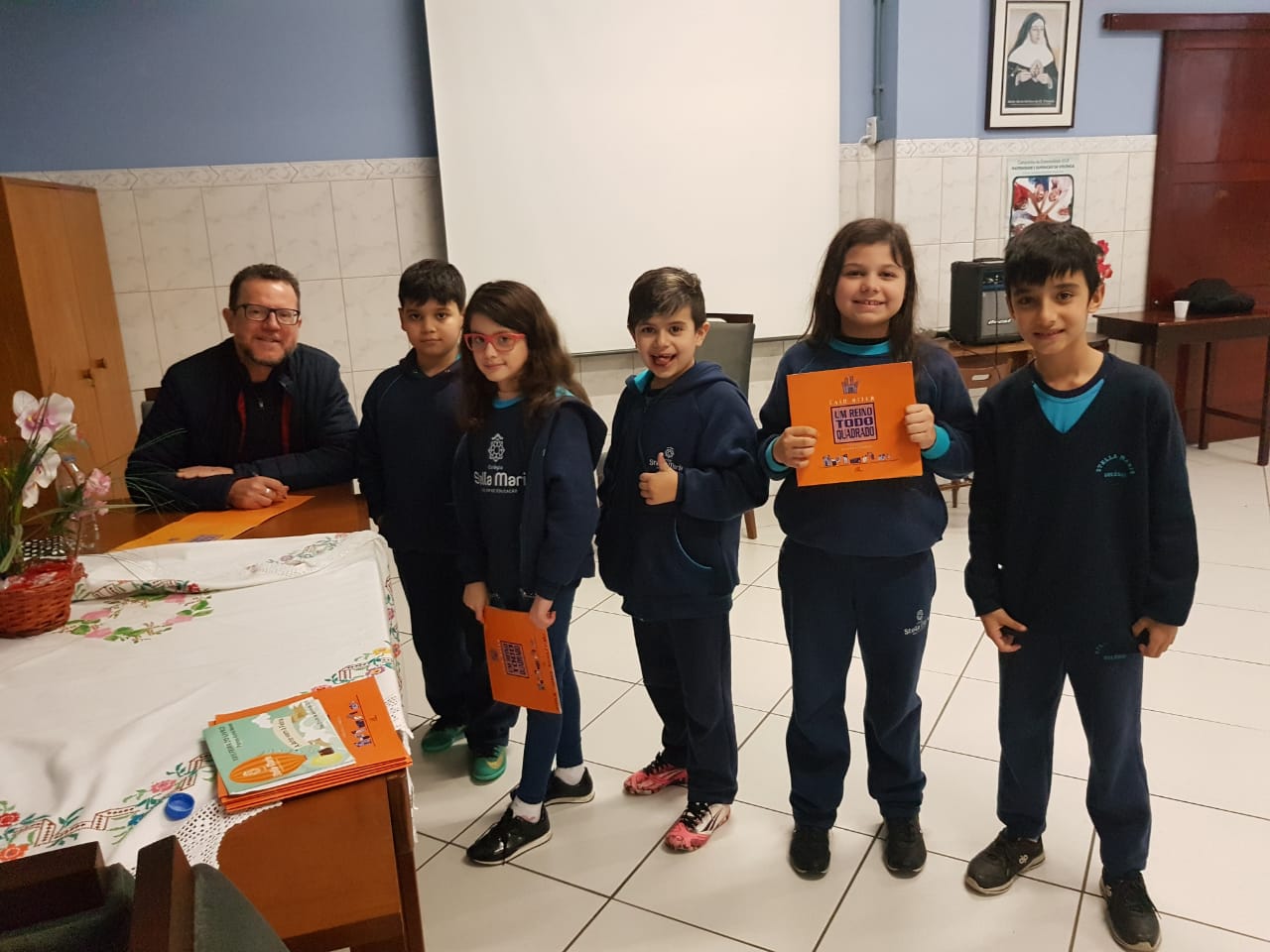 Nos dias 23 e 24 de agosto realizou-se na nossa escola a XVIII Feira do Livro, com o tema “A Arte vem à Feira”. O Patrono foi o escritor e ilustrador André Neves que na oportunidade, conversou com os alunos do Nível 2 da Educação infantil, 3º, 5º e 6º ano do Ensino fundamental que trabalharam seus livros. Com seu jeito simples e motivador, conseguiu estabelecer uma conversa agradável e interessante com todos. Contou sobre a sua vida, sua experiência como escritor e ilustrador, incentivando os alunos a escreverem e tomarem a leitura como um hábito.