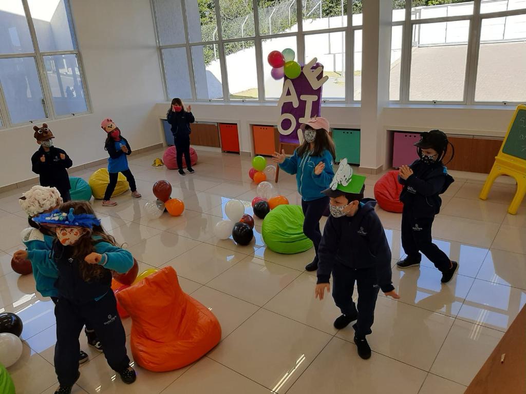 As turmas de Pré 2, com as professoras das Gabriela e Kelly, encerraram o mês de maio com uma linda e animada Festa das Vogais. Durante o mês as letrinhas amiguinhas foram exploradas de diversas formas. A partir da hora do conto com a história Meu Chapéu, de Léia Cassol, os alunos foram incentivados a criar um chapéu de bicho, que o mesmo iniciasse com uma das vogais. Vejam os lindos animais e criativos chapéus que surgiram.